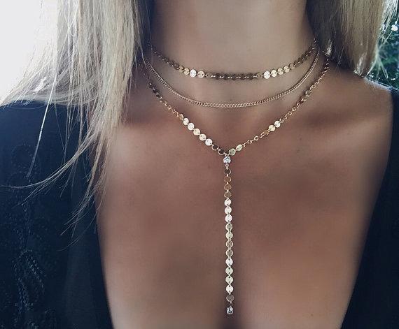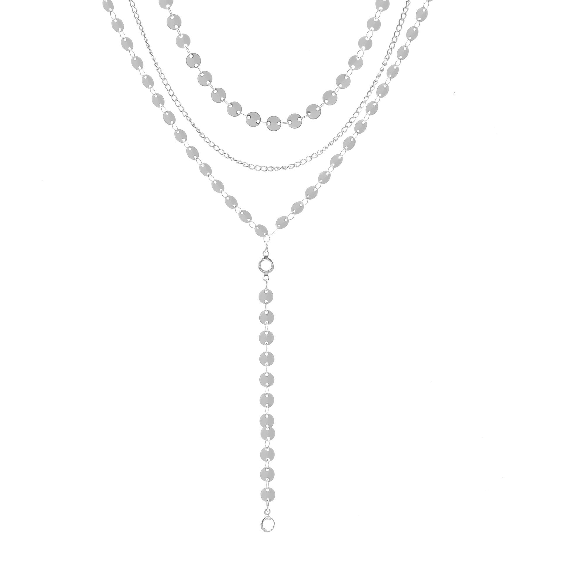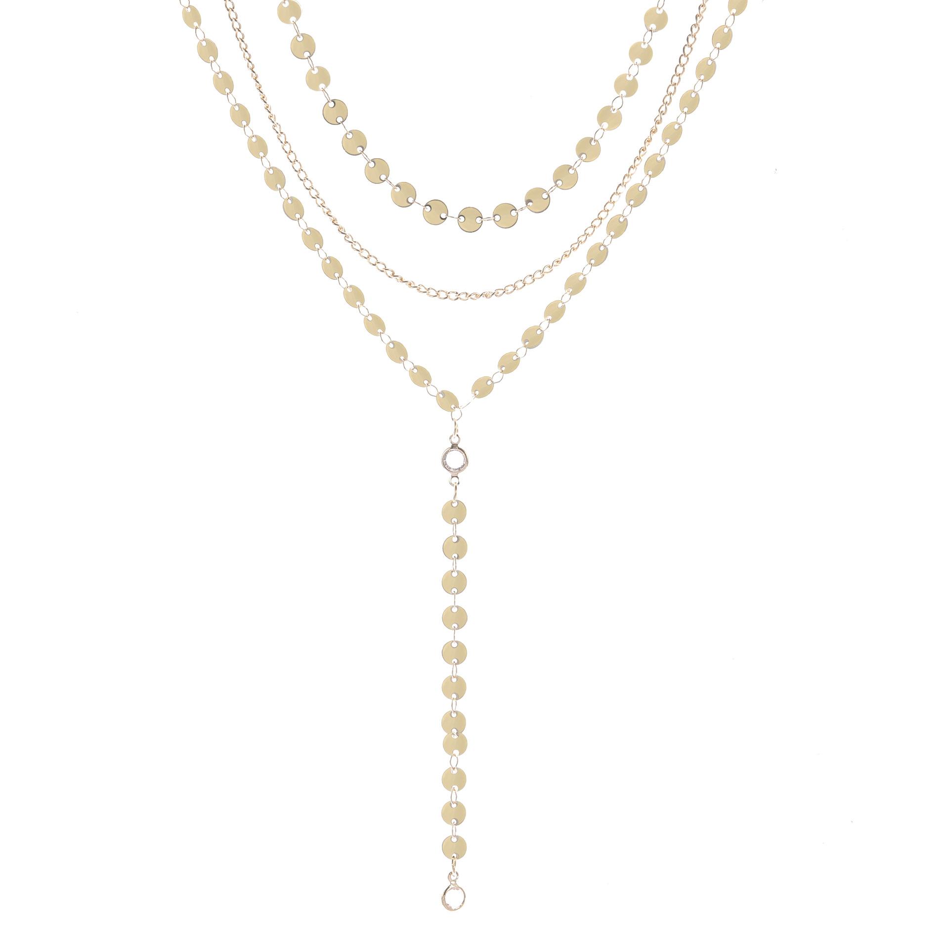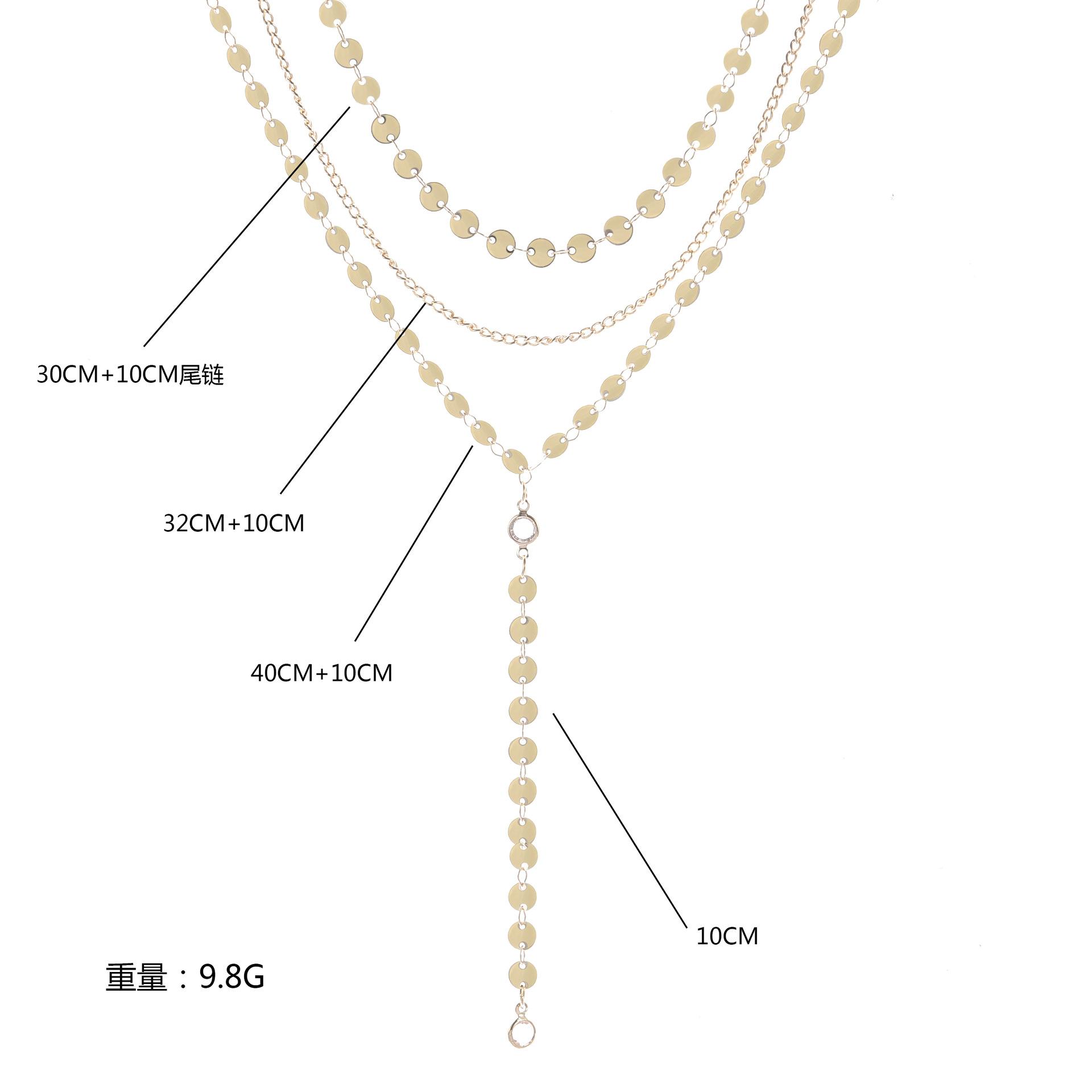Joyería Transfronteriza Europea y Americana Estilo Bohemio Collar de Cadena de Lentejuelas de Cobre con Borla de Pedrería Cadena de Cuello Multicapa para Mujer