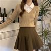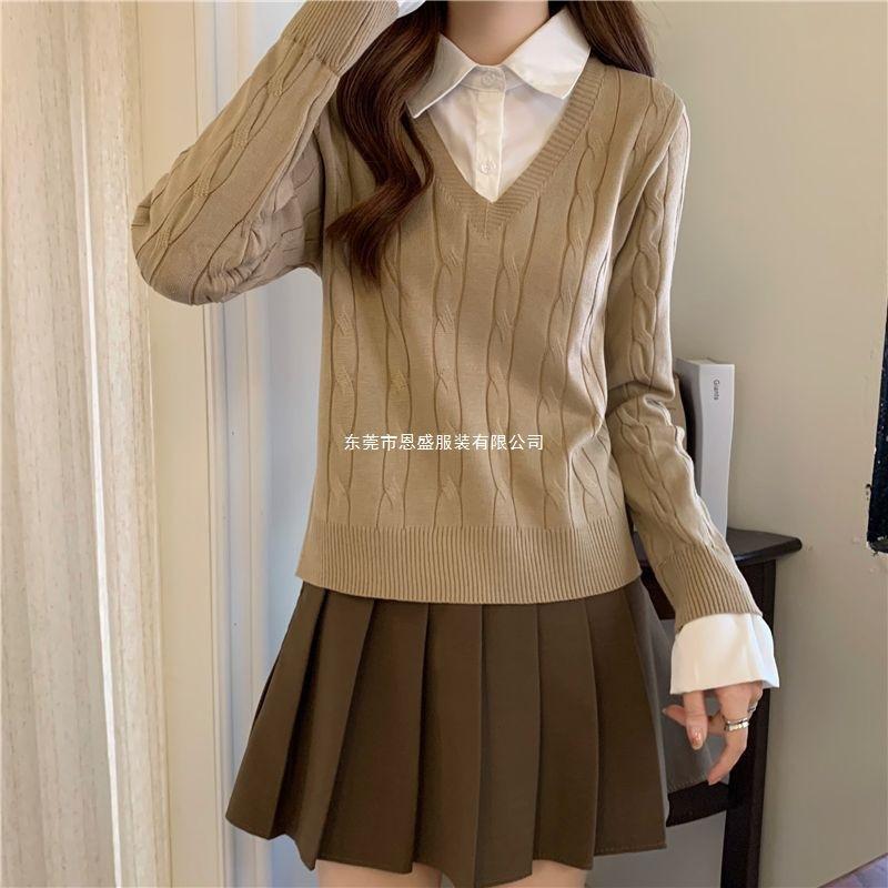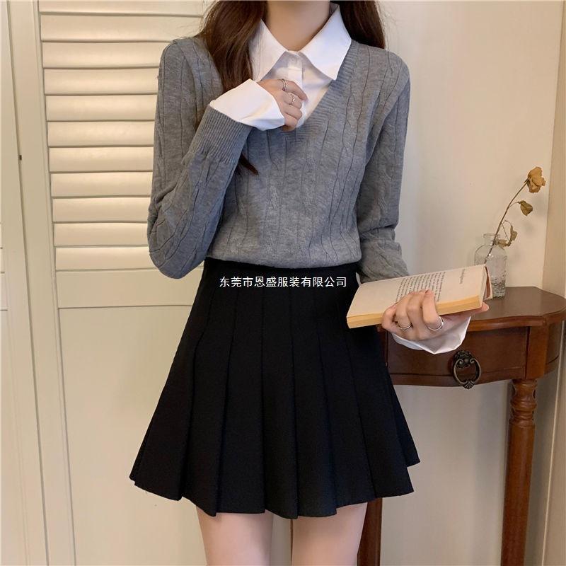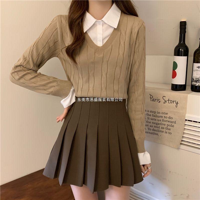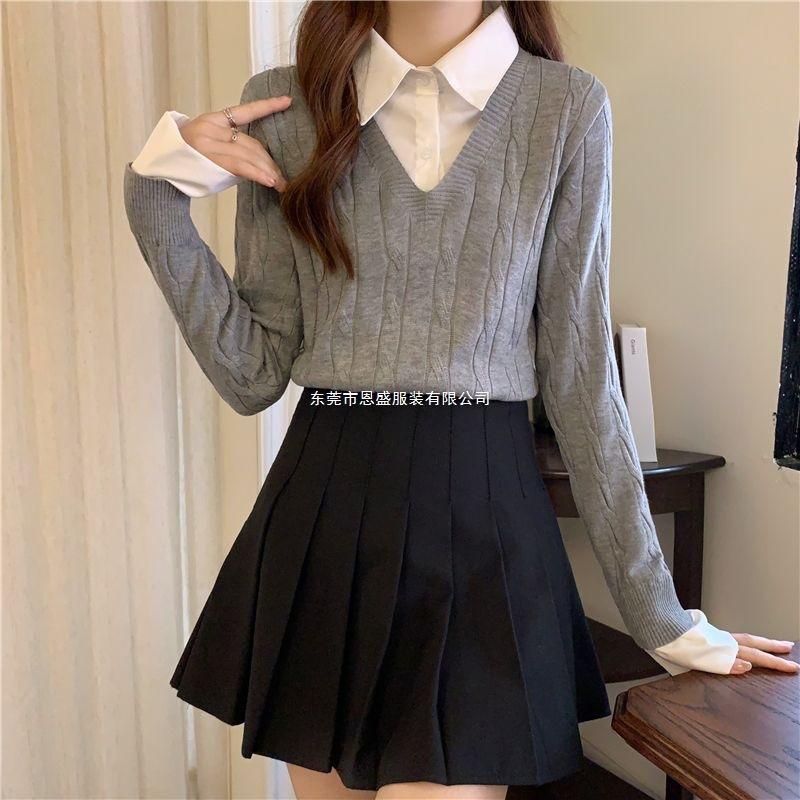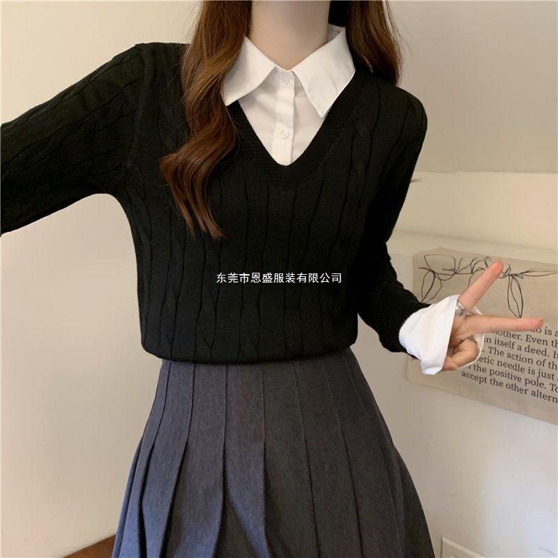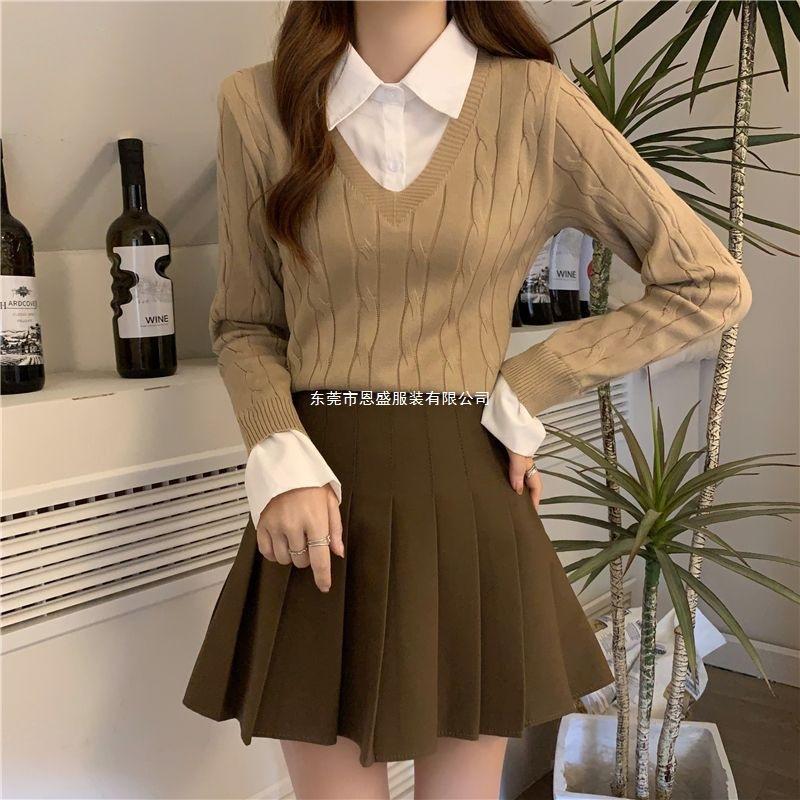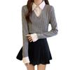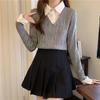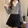 Camisa con Empalme en Solapa, Punto de Dos Piezas Falso, Nuevo Estilo de Otoño e Invierno, Capa Interior Estilo Preppy, Top Elegante y Personalizado de Manga Larga
