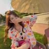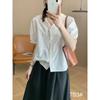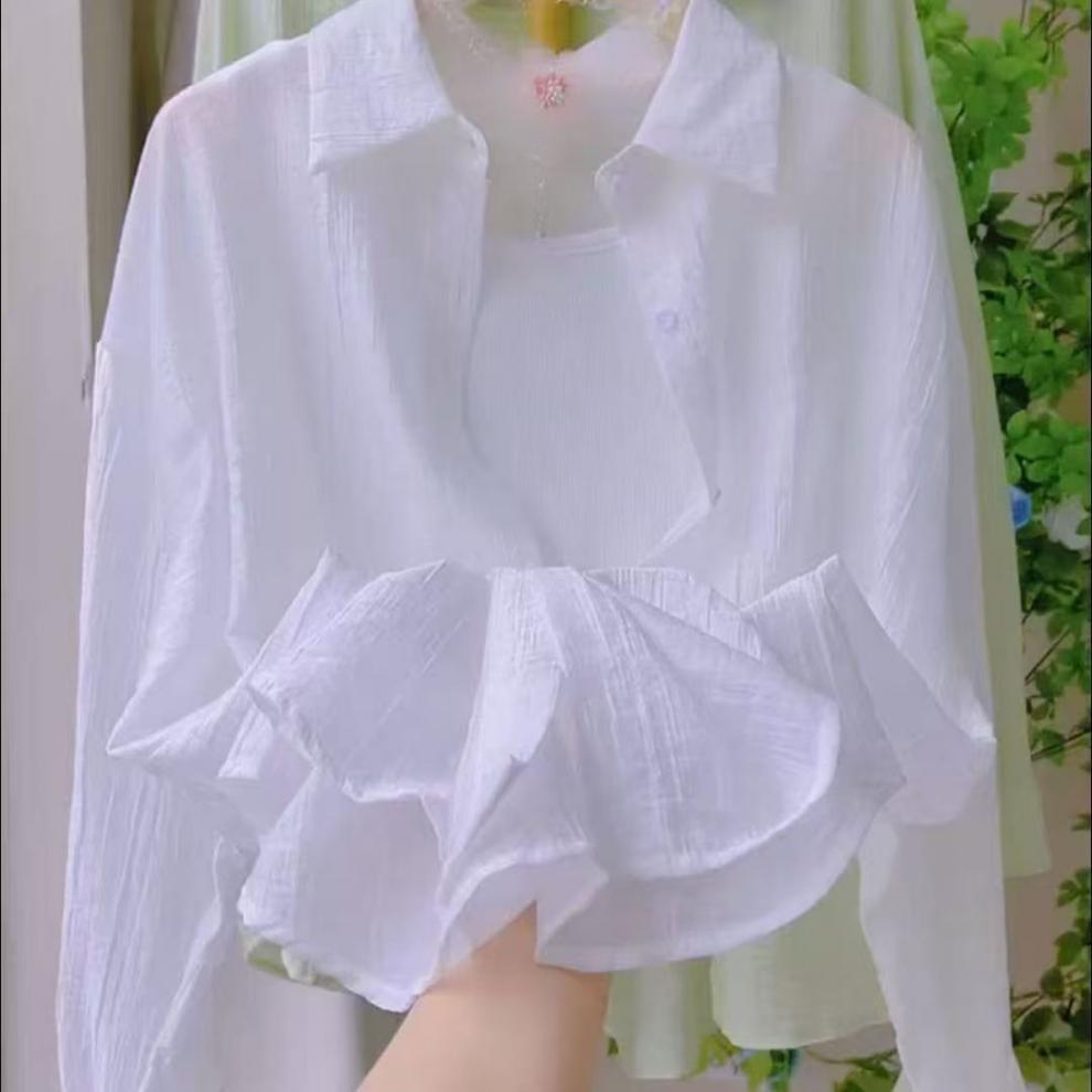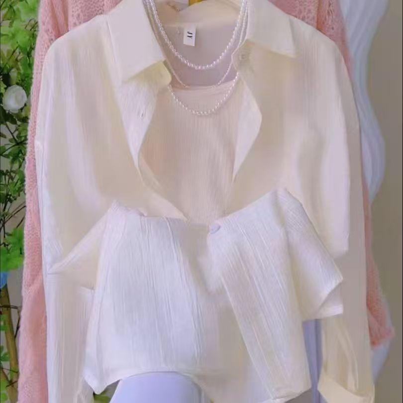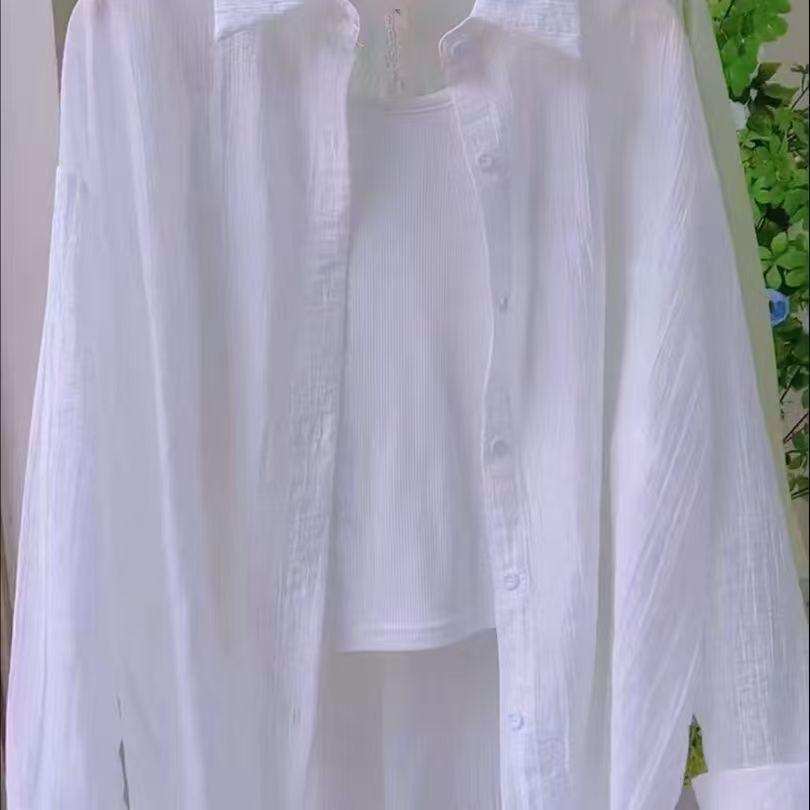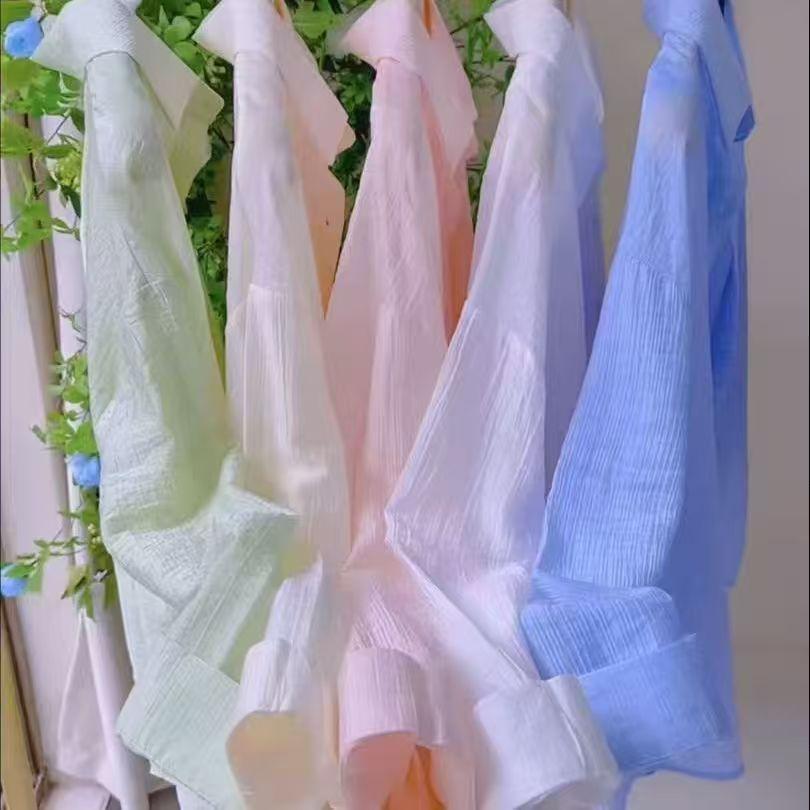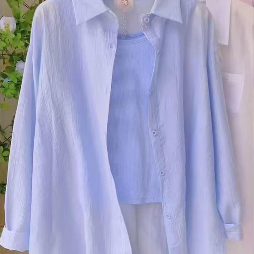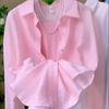 Verano Suave y Dulce Rosa Color Sólido Camisa Top para Mujer Suelta Casual Cuello Camisa Fina Protección Solar