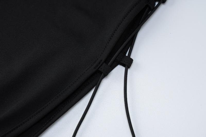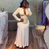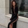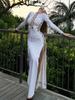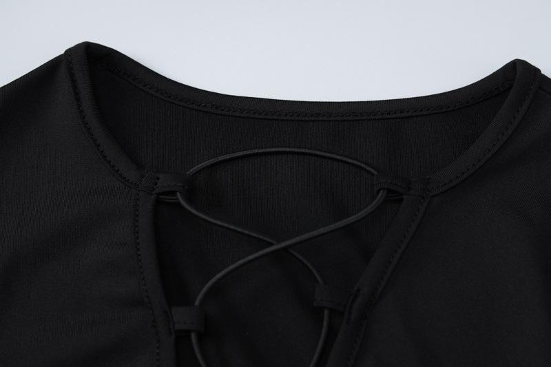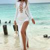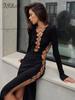 2025 Europeo y Americano Transfronterizo Primavera y Verano Nuevo Sexy Corte Encaje con Cordones Slim Abertura Manga Larga Color Puro Vestido de Mujer