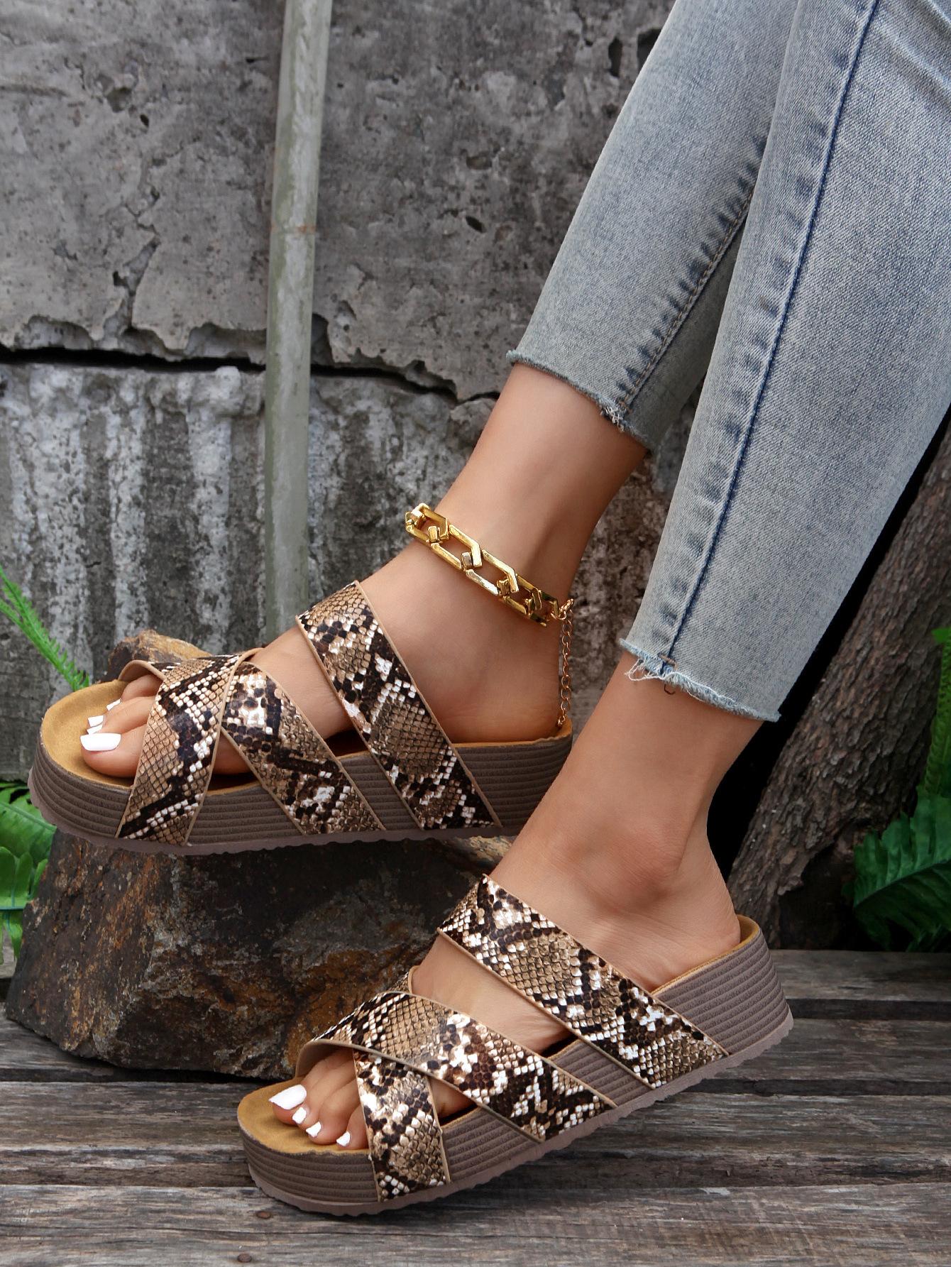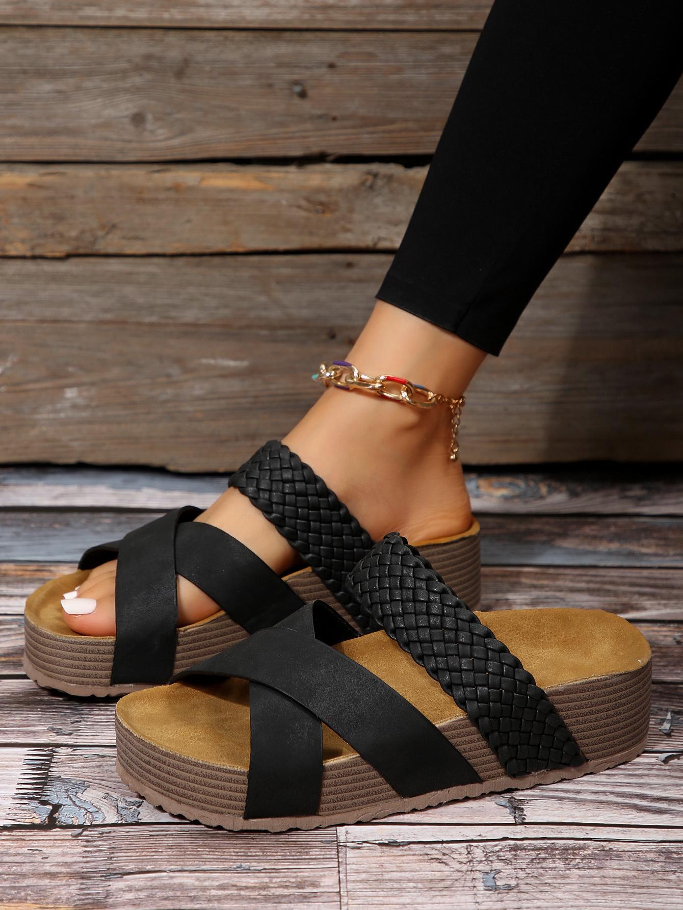 Sandalias casuales de talla grande para mujer 2025 nuevo europeo y americano zapatillas entrecruzadas sandalias de suela gruesa venta al por mayor de comercio exterior para mujer
