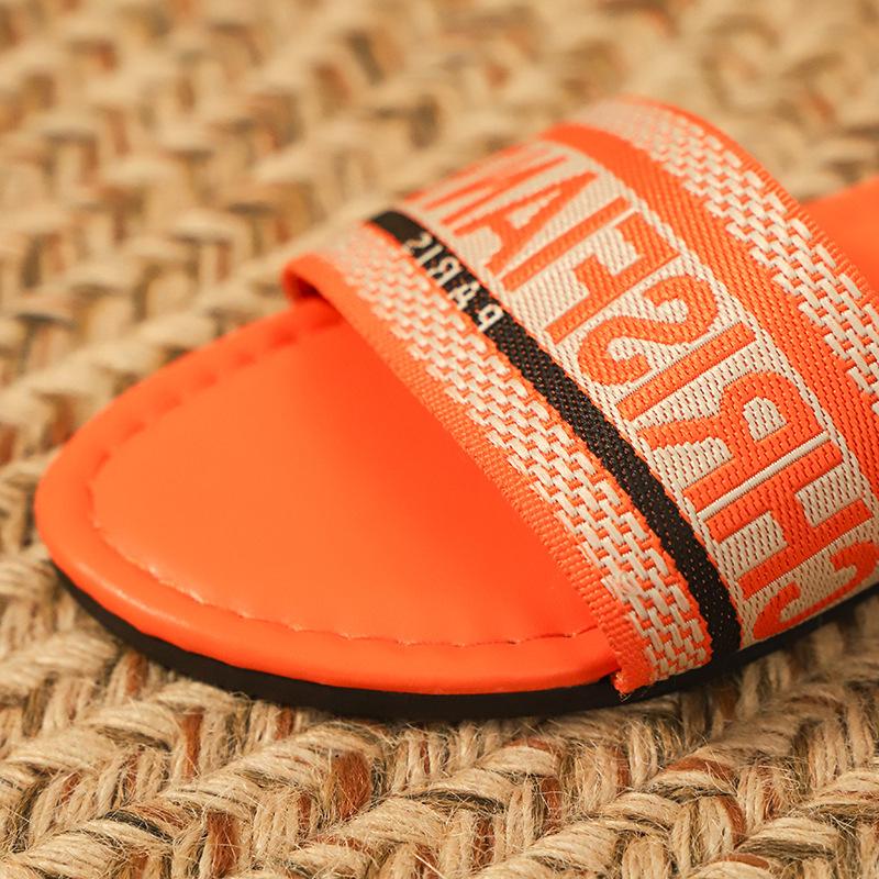 Verano Nuevo Comercio Exterior Moda Pantuflas Talla Grande para Uso Exterior, Zapatos de Playa con Letras, Sandalias, Pantuflas Planas Casuales