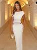 Estilo Europeo y Americano 2025 Nuevo Verano Moda Femenina Sexy Cut Out Ajustado Malla Empalmada Vestido Hombro Oblicuo Falda Larga