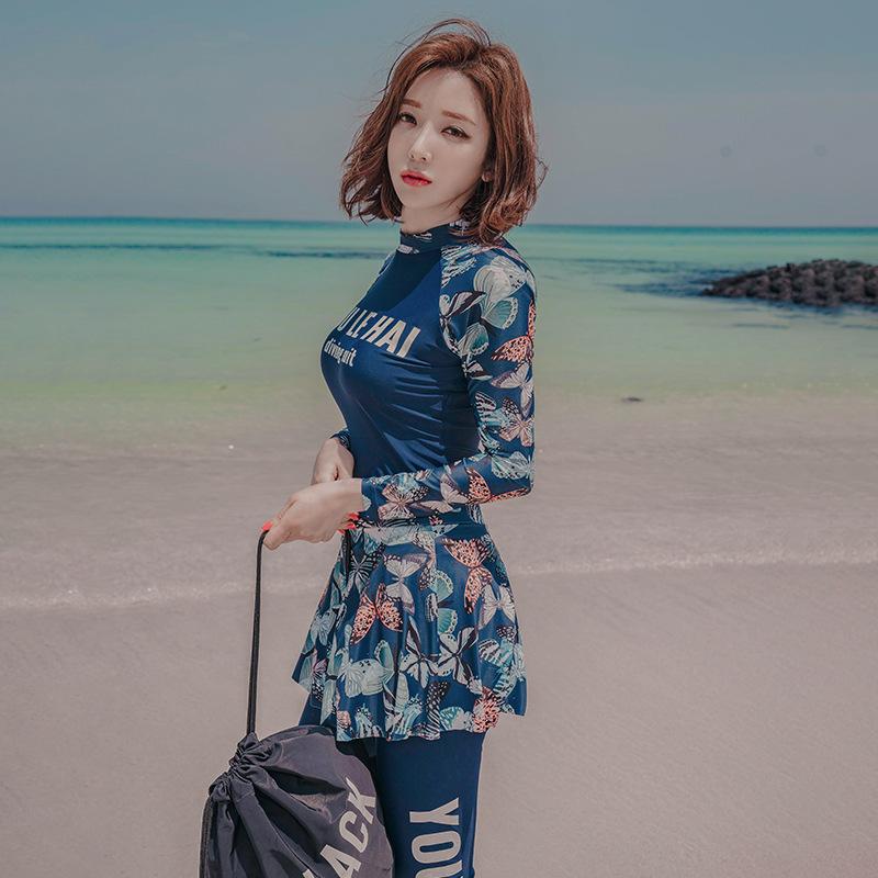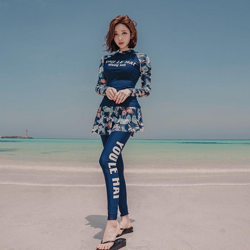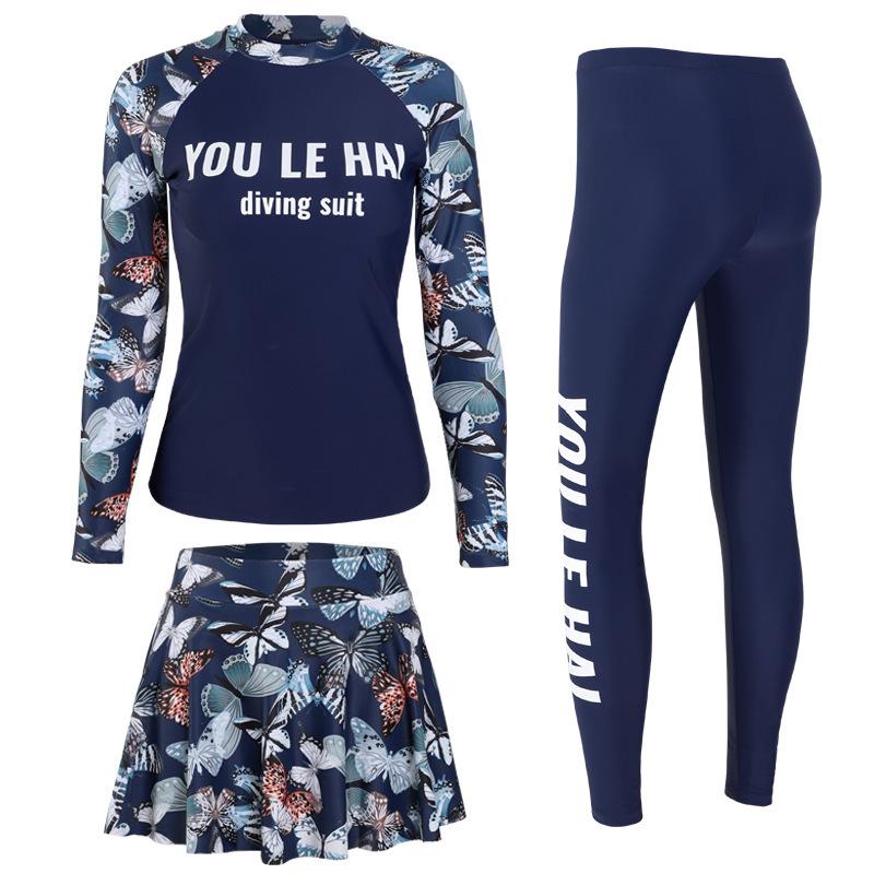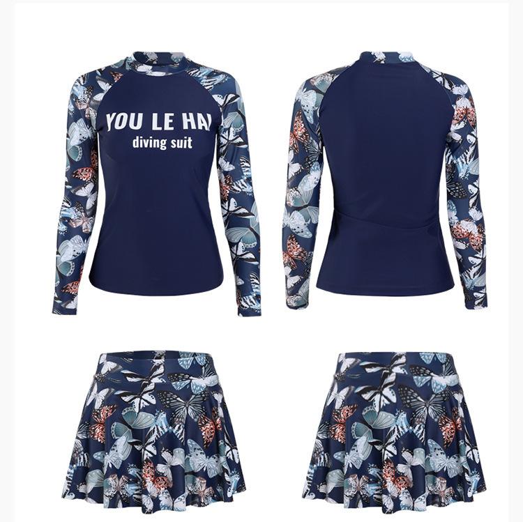 2020 Nuevo Conjunto de Tres Piezas de Falda Dividida para Mujer Traje de Buceo de Manga Larga Traje de Baño Conservador para Aguas Termales