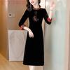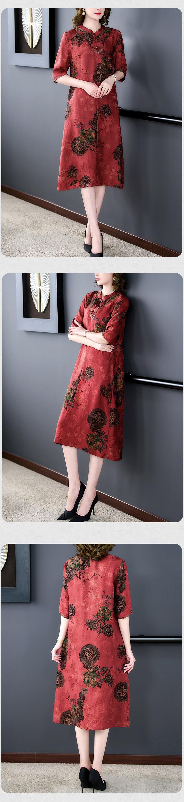 Garantía de Calidad Otoño Talla Grande Vestido Cubre Vientre para Madre Joven Vestido de Hilo Xiangyun Vestido Midi de Seda de Seda