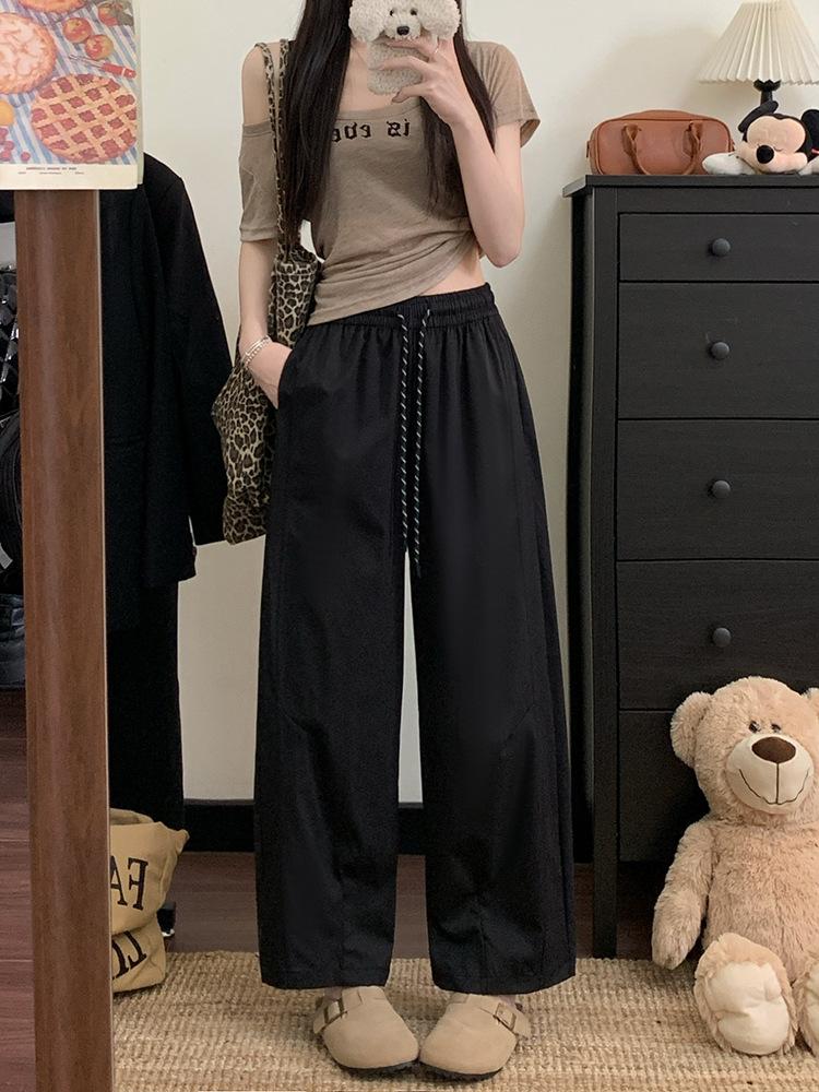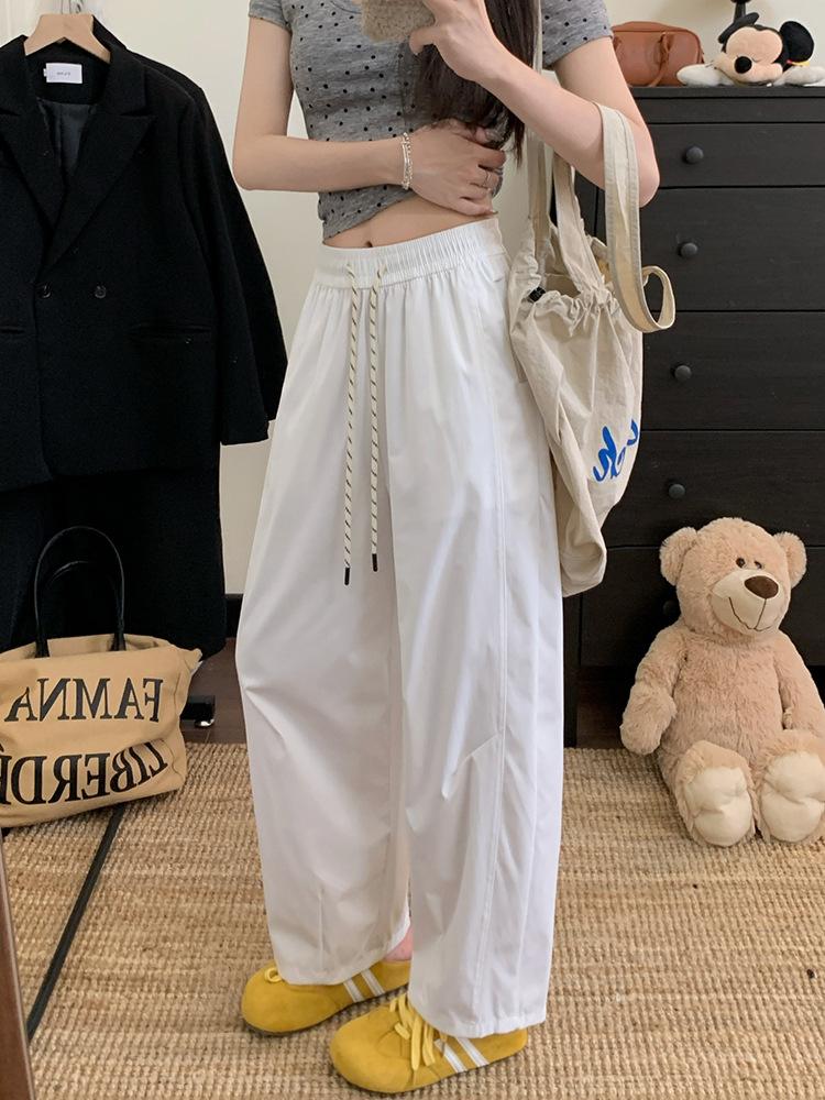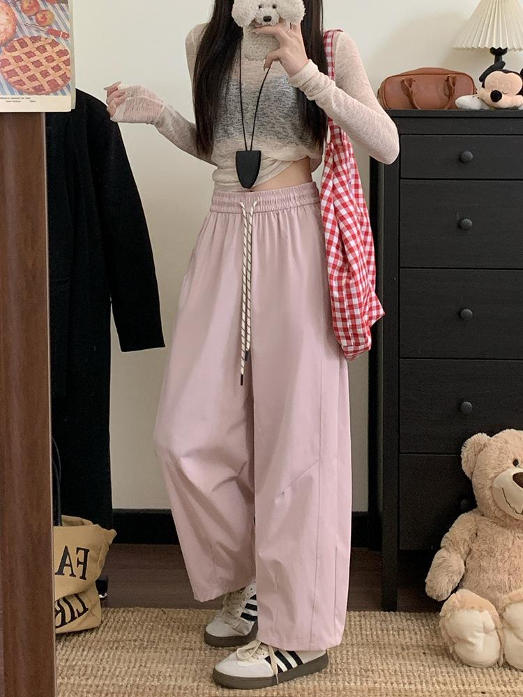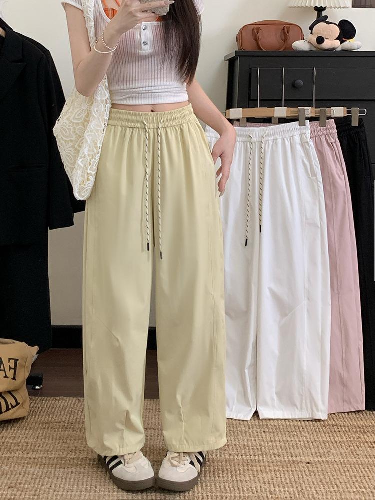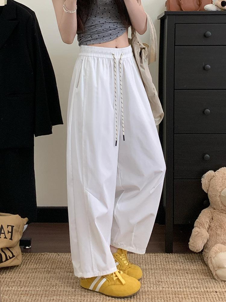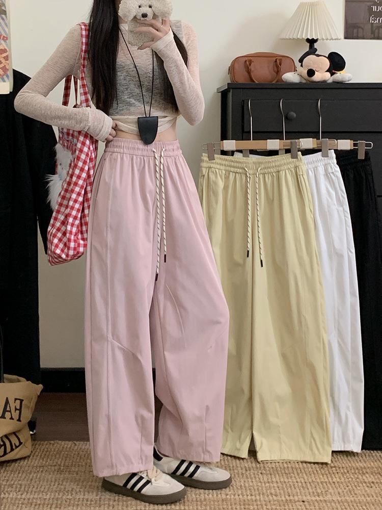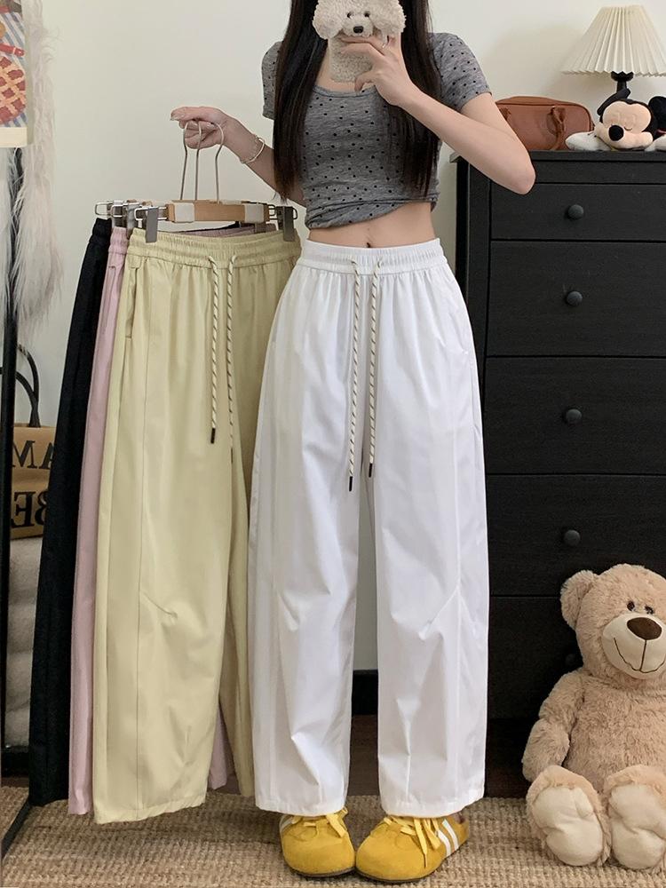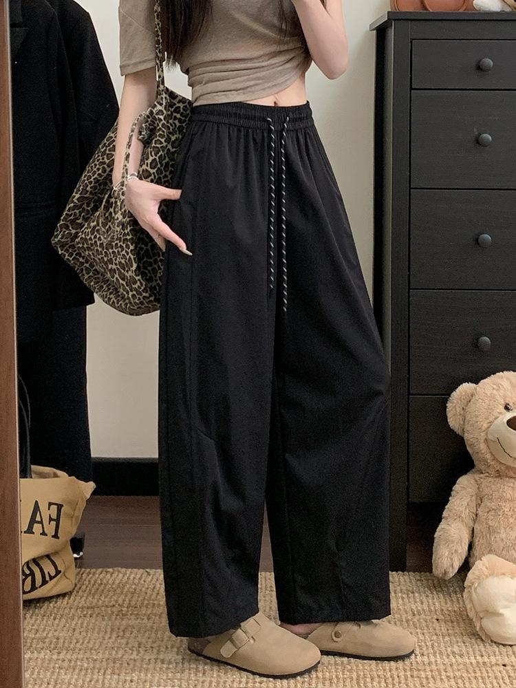 Pantalones Casuales con Cordón en la Cintura Elástica para Niñas Verano 2025 Nueva Tendencia Deportivos Sueltos Adelgazantes Pierna Ancha Rectos