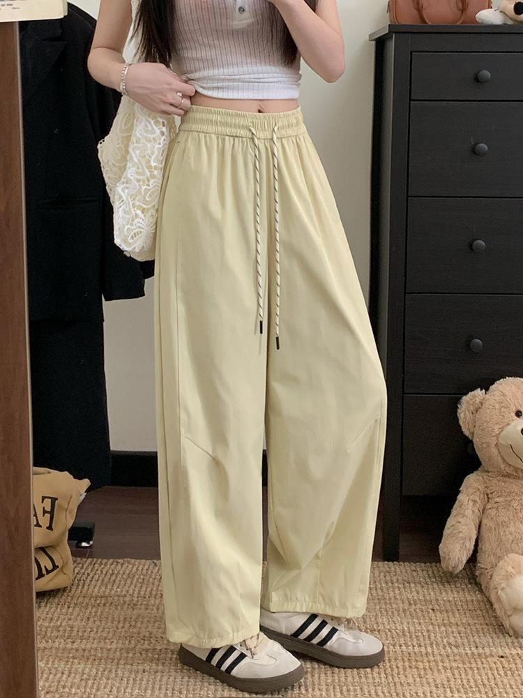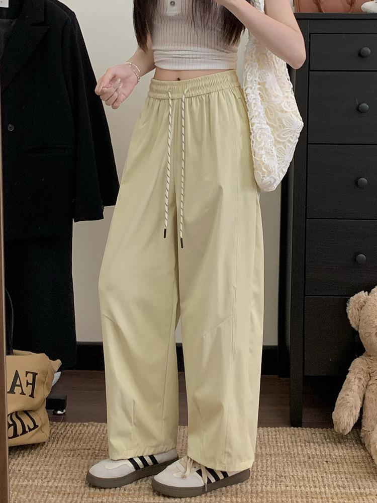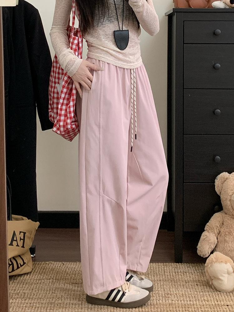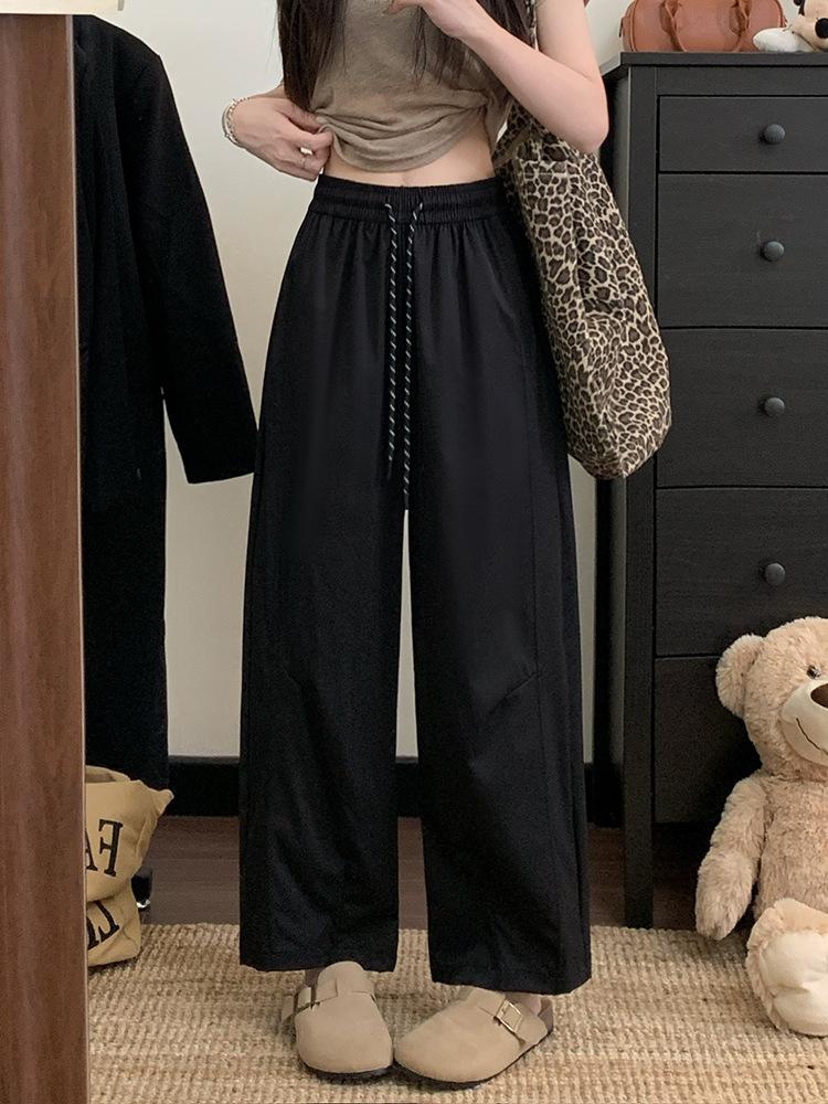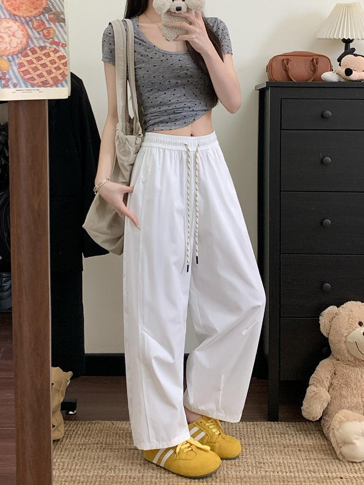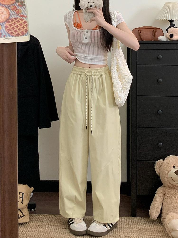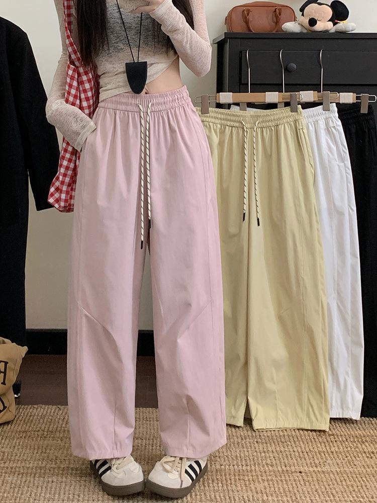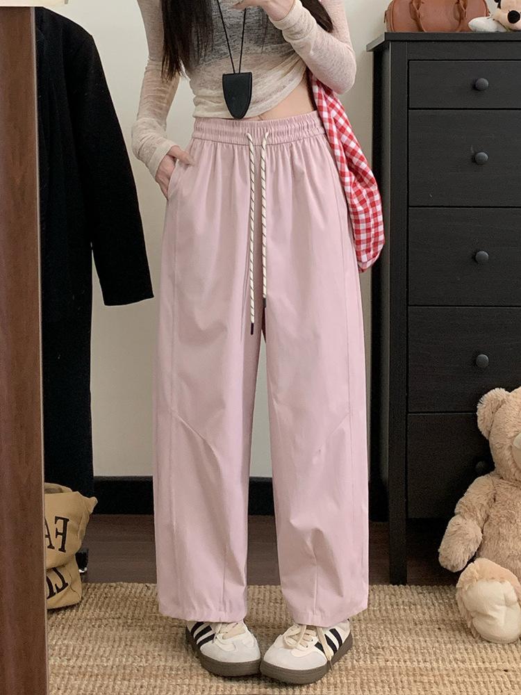 Pantalones Casuales con Cordón en la Cintura Elástica para Niñas Verano 2025 Nueva Tendencia Deportivos Sueltos Adelgazantes Pierna Ancha Rectos