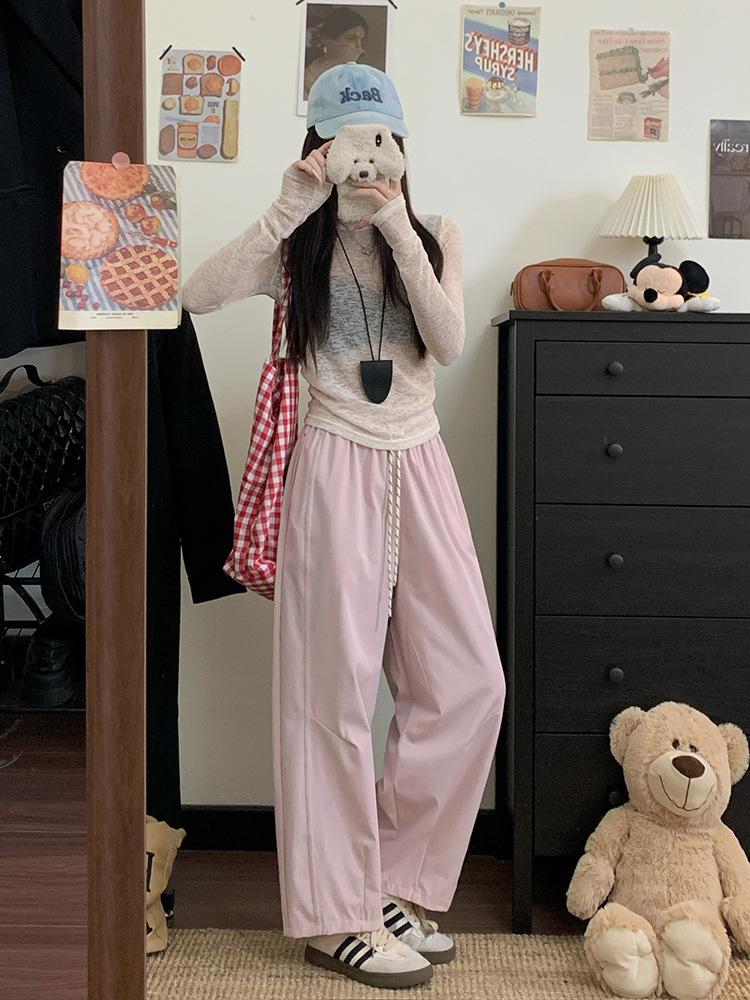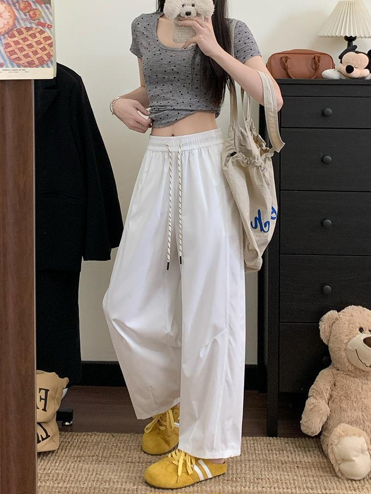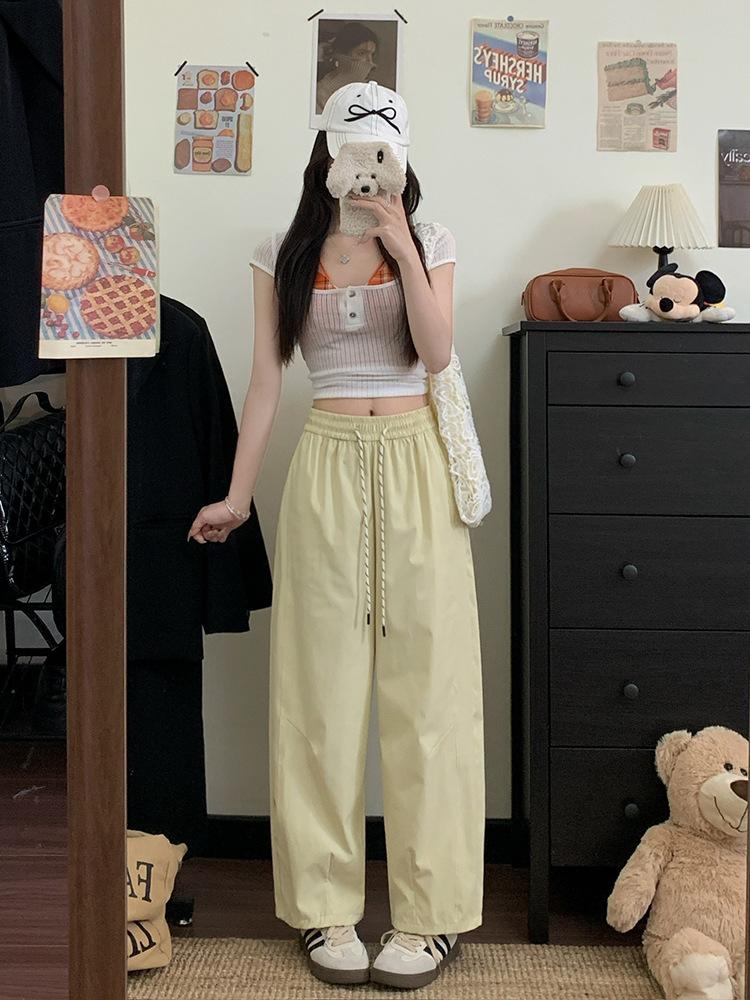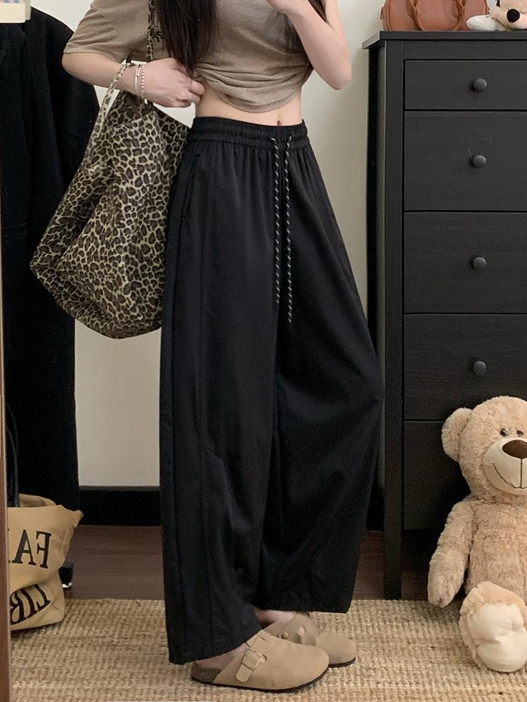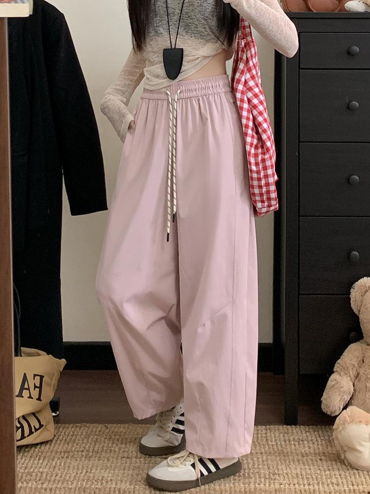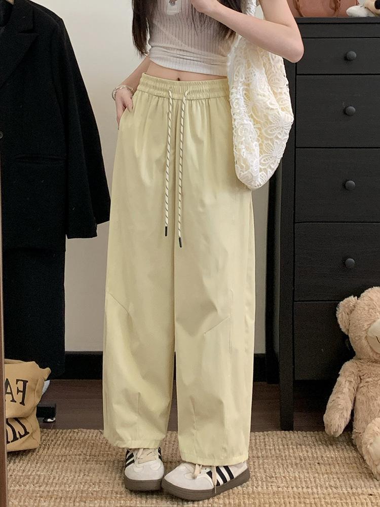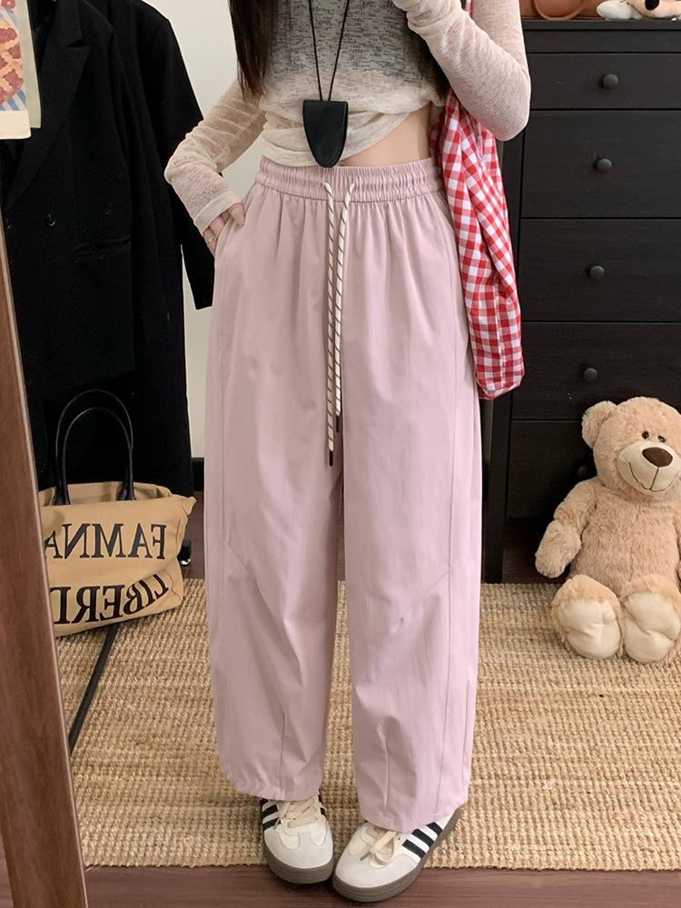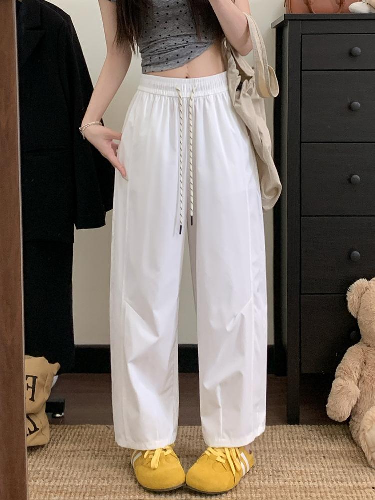 Pantalones Casuales con Cordón en la Cintura Elástica para Niñas Verano 2025 Nueva Tendencia Deportivos Sueltos Adelgazantes Pierna Ancha Rectos