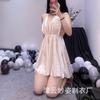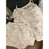 Pijama Sexy de Shorts con Tirantes para Mujer Verano Traje de Algodón Jacquard Estilo Princesa Lindo Francés Ropa para el Hogar con Almohadillas para el Busto
