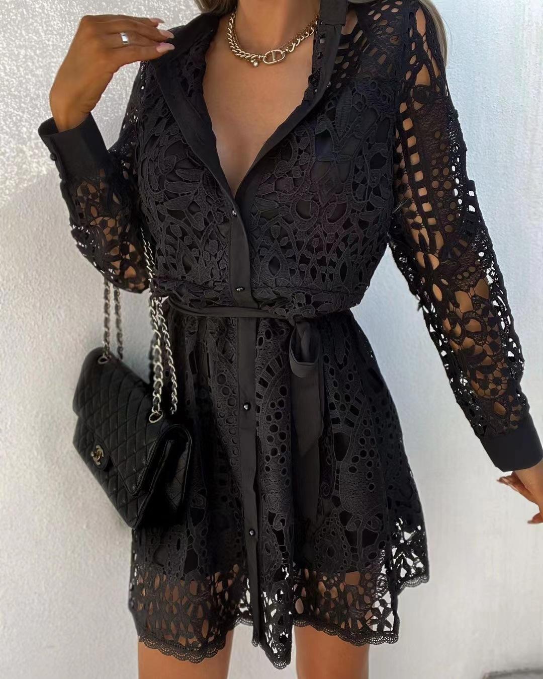 Nuevos Productos Transfronterizos Europeos y Americanos Amazon Aliexpress Vestido Mini de Encaje de Moda con Cordones para Mujer