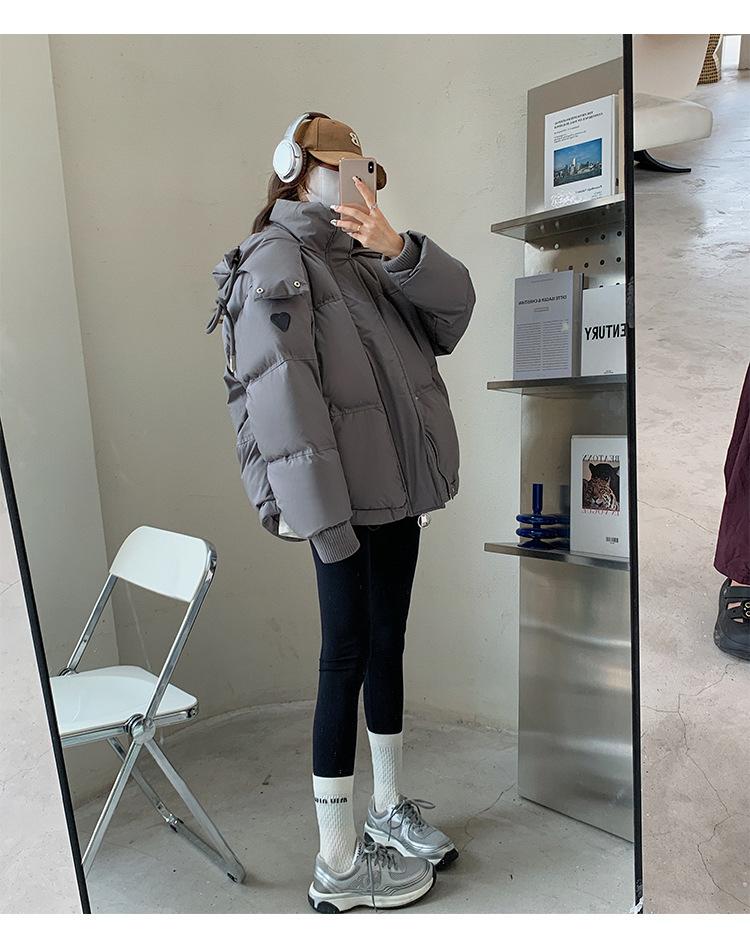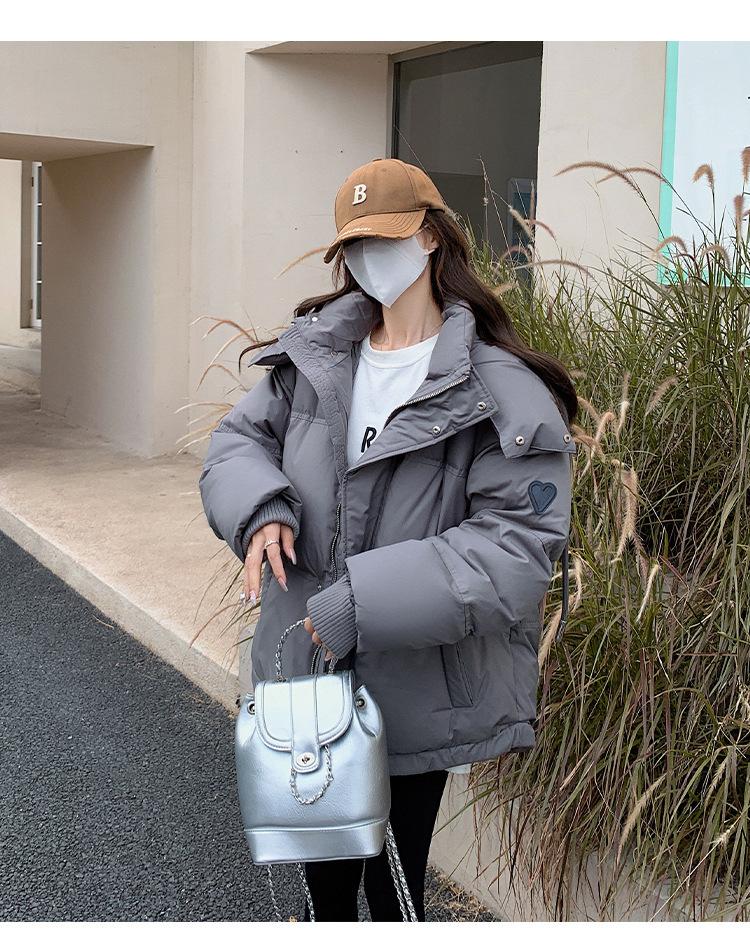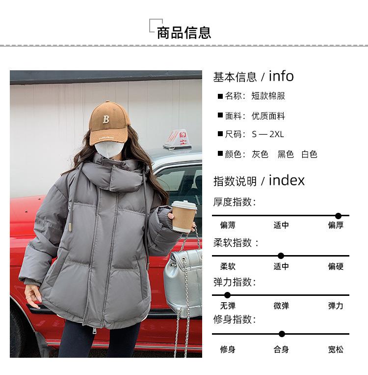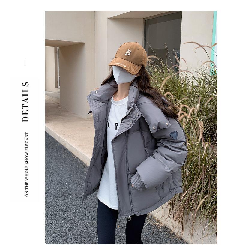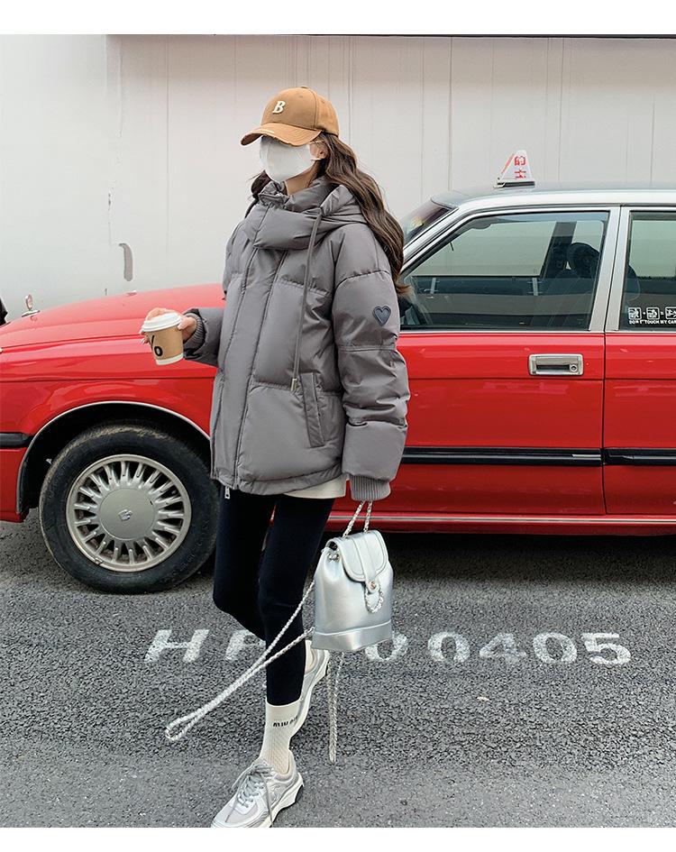 Ropa de Algodón Acolchada para Comercio Exterior para Mujer Invierno Nuevo Estilo Coreano Gris Amor Corto Abrigo Acolchado de Algodón Estudiante Talla Grande Pareja Traje Pan