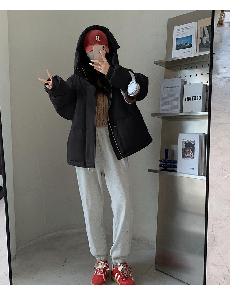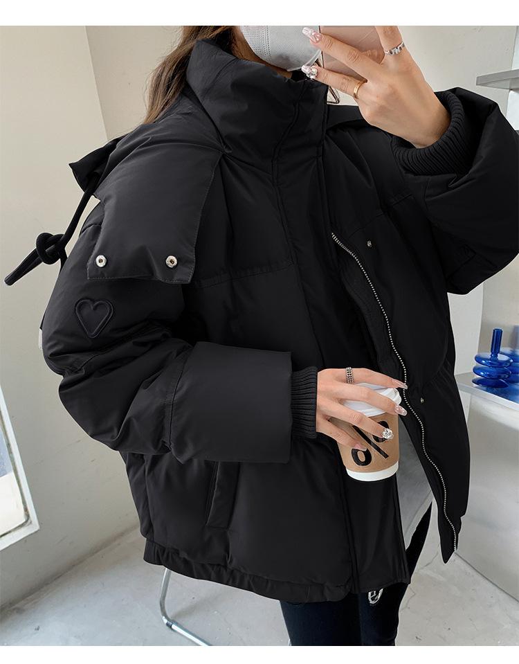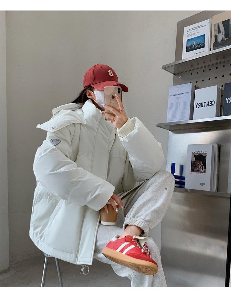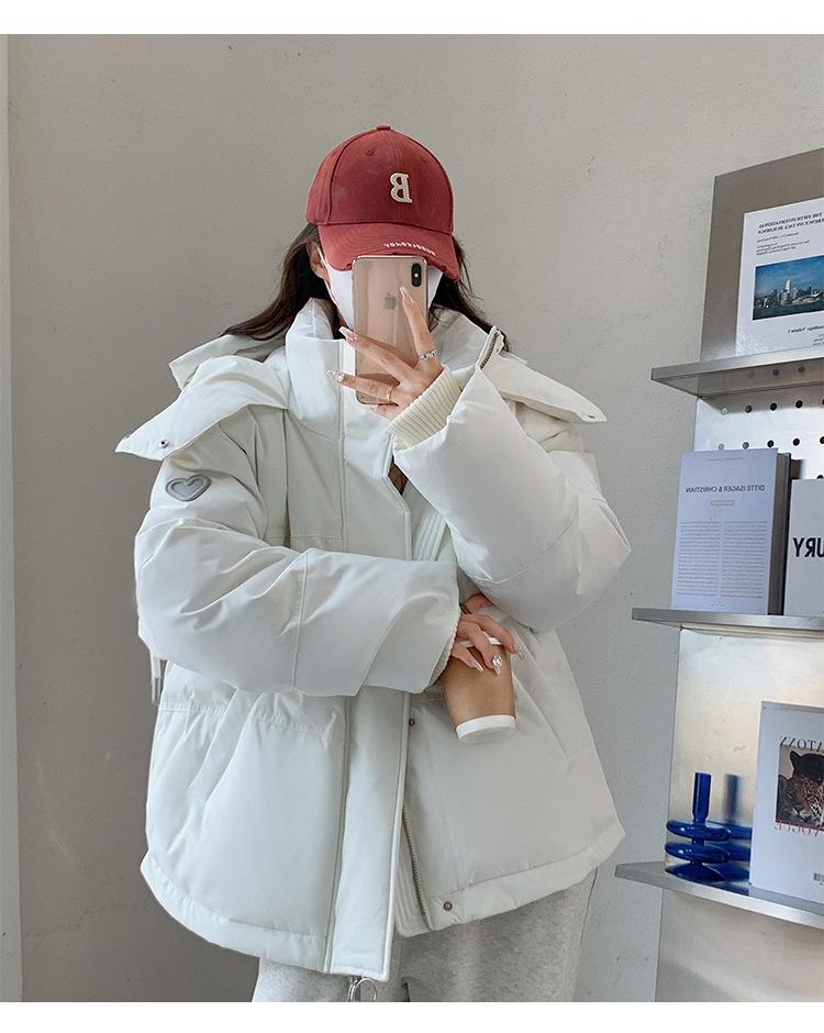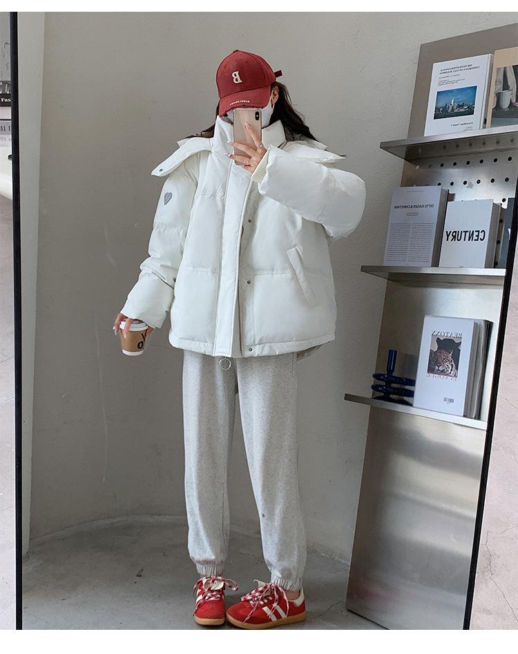 Ropa de Algodón Acolchada para Comercio Exterior para Mujer Invierno Nuevo Estilo Coreano Gris Amor Corto Abrigo Acolchado de Algodón Estudiante Talla Grande Pareja Traje Pan