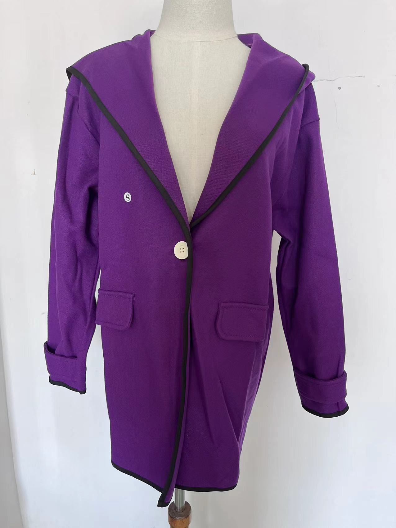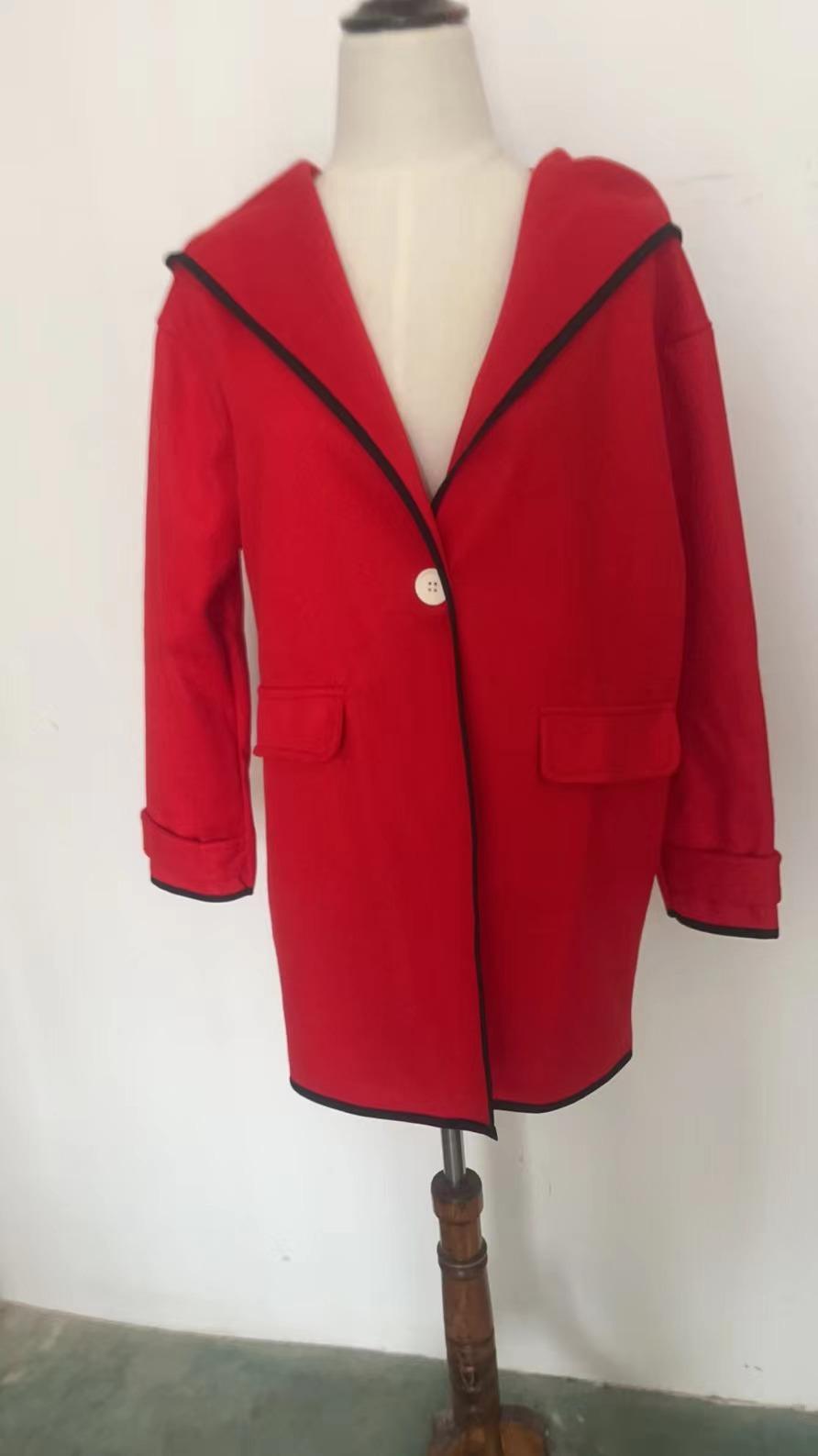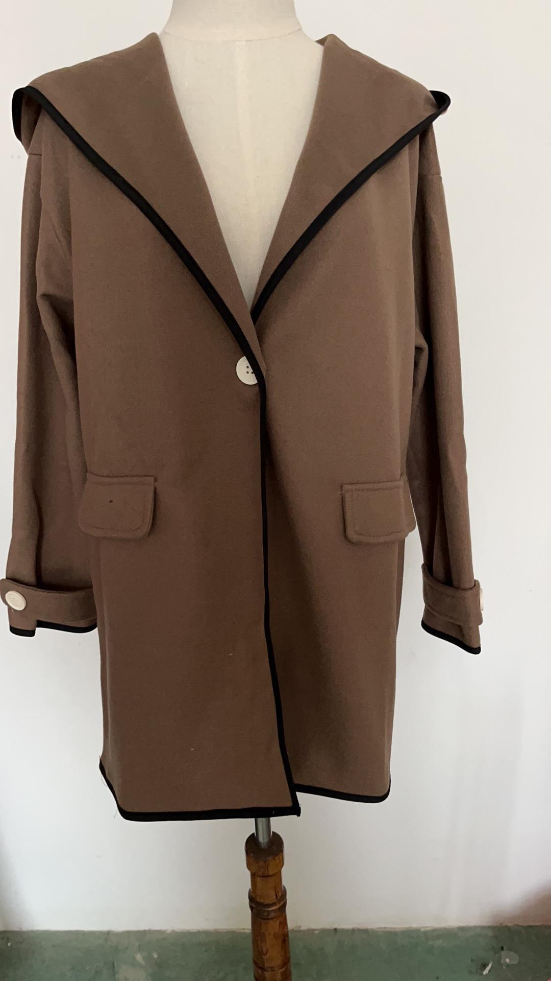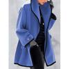 Moda Femenina Europea y Americana Otoño e Invierno Multicolor Cuello Redondo Suelto Abrigo de Lana con Capucha Amazon Color Empalmado