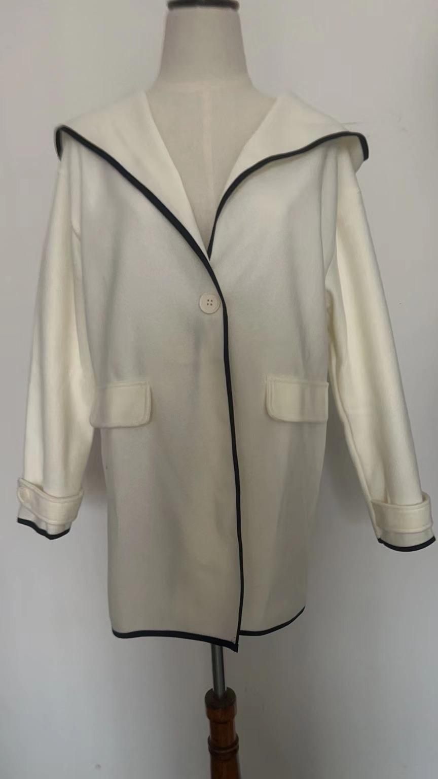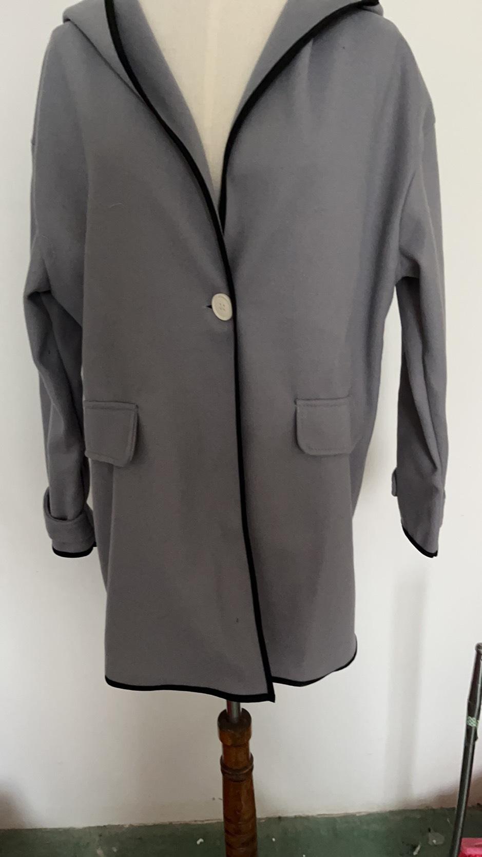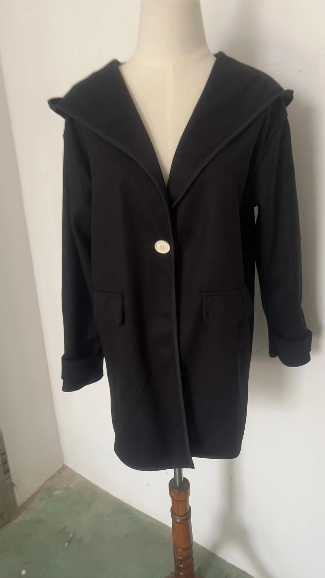 Moda Femenina Europea y Americana Otoño e Invierno Multicolor Cuello Redondo Suelto Abrigo de Lana con Capucha Amazon Color Empalmado
