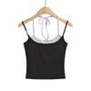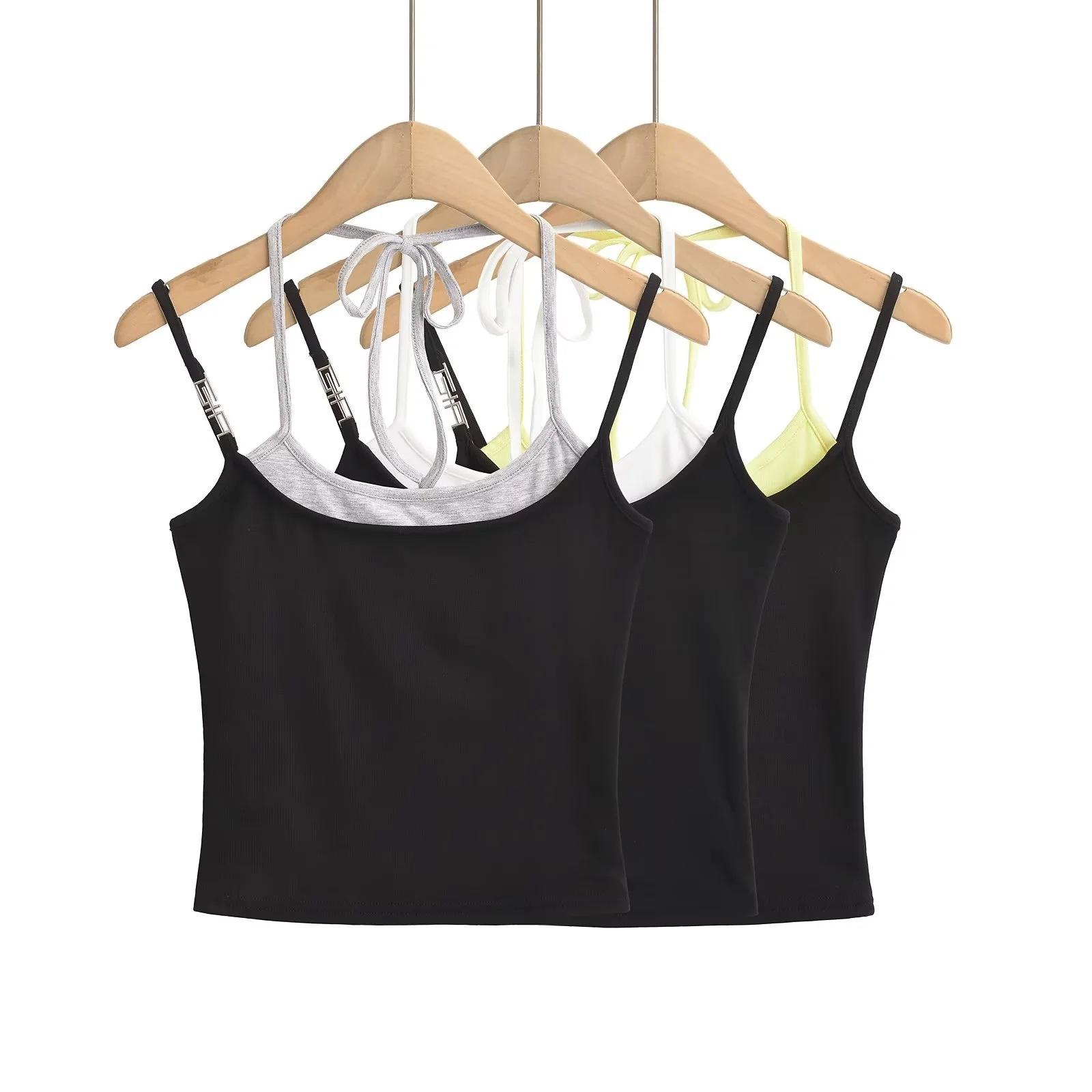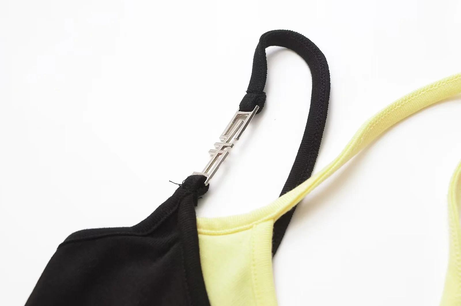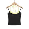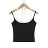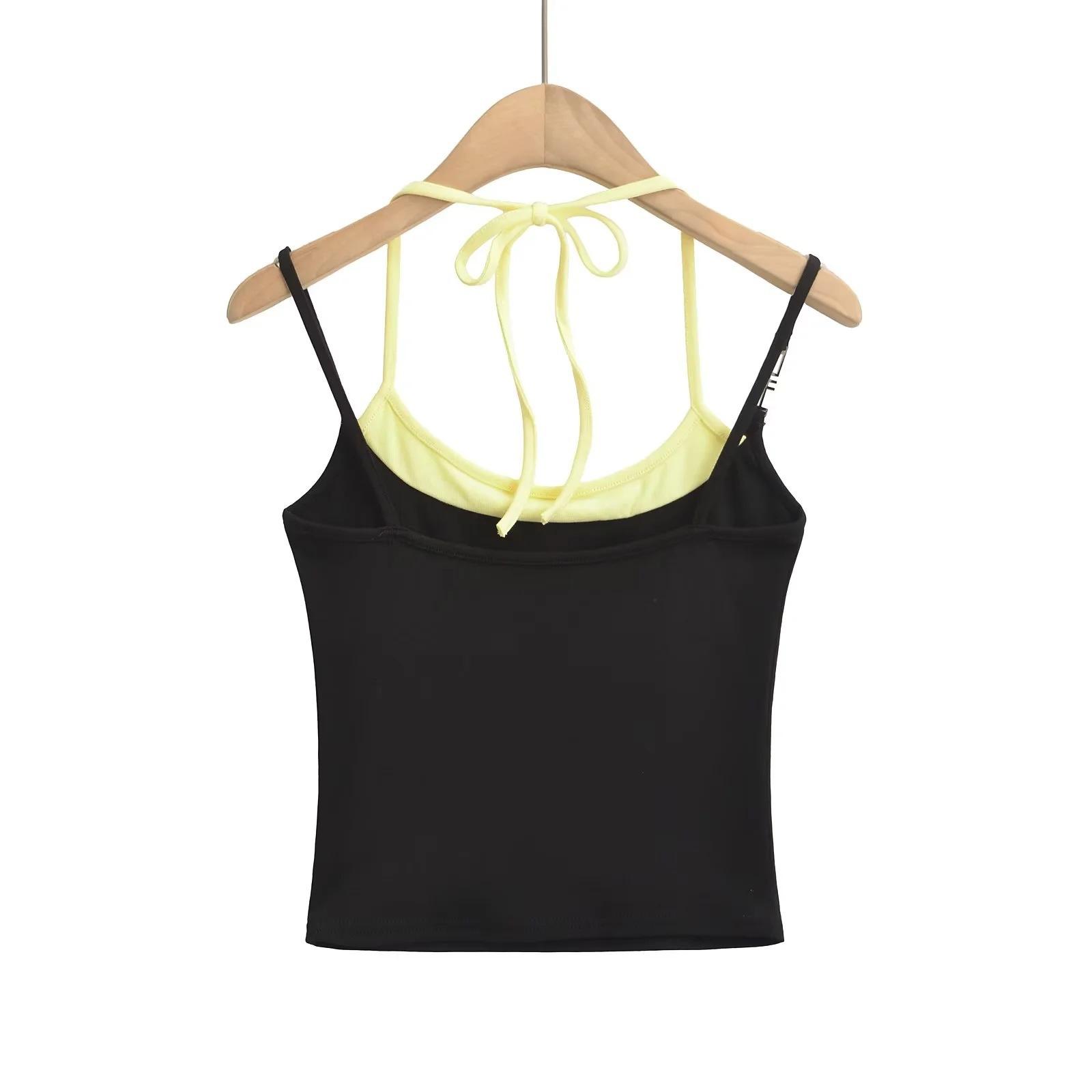 Verano para Mujer Color Combinado Tirantes Cuello Halter Falso Dos Piezas Ajustado Chaleco para Exterior Top de Mujer Estilo Europeo y Americano