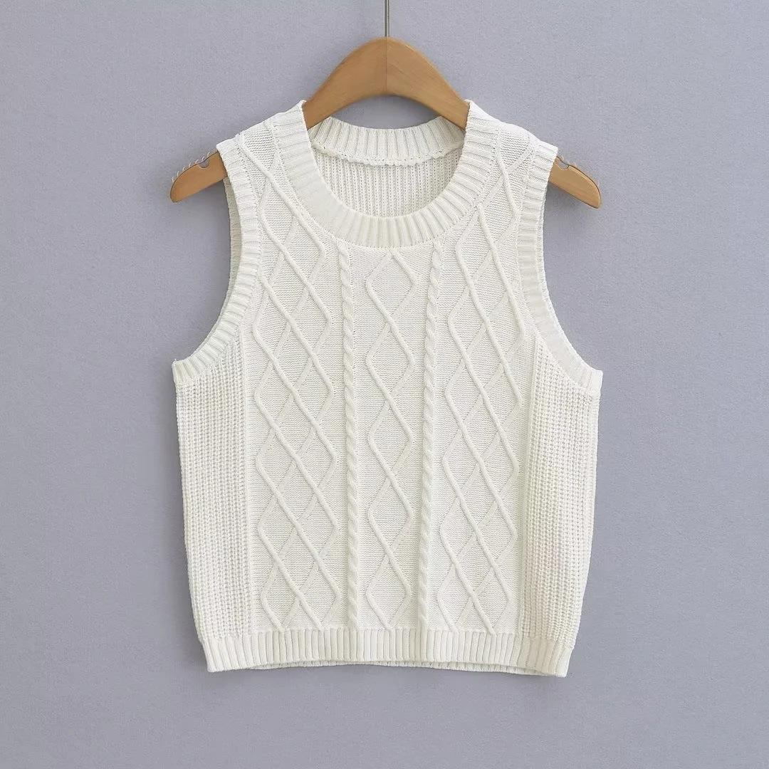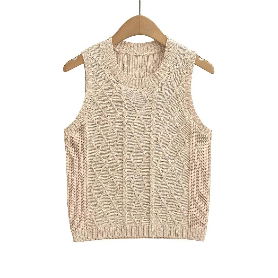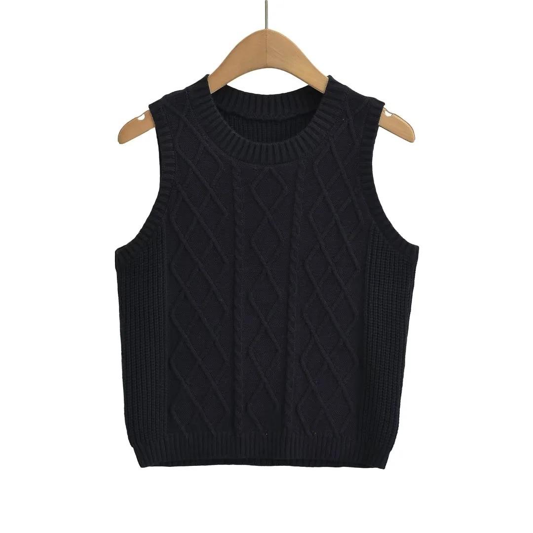 Otoño e Invierno Nuevo Cuello Redondo Suelto Trenzado Aguja Diamante Cuadrado Chaleco Tejido Estilo Universitario Chaleco de Lana para Mujer
