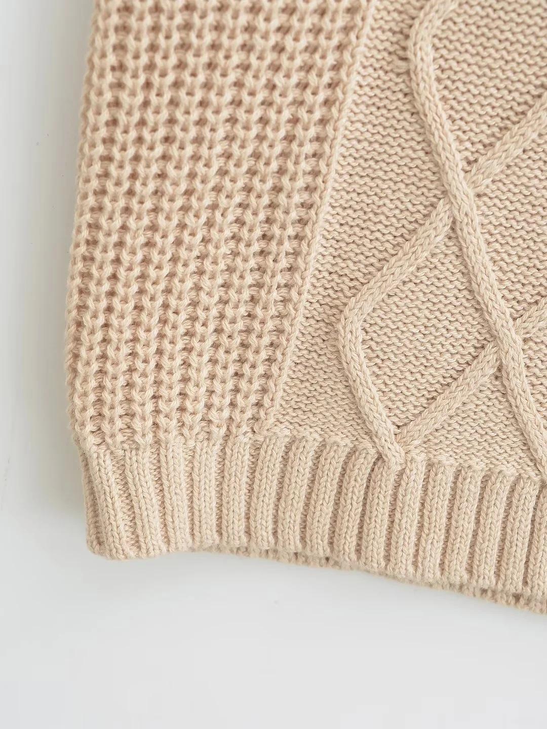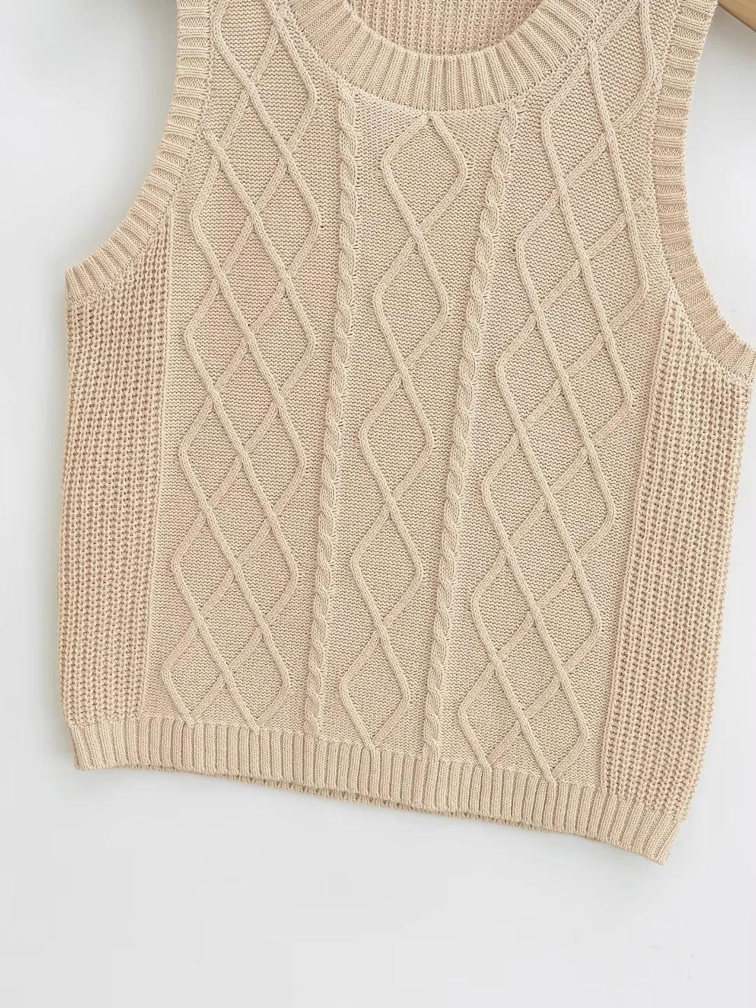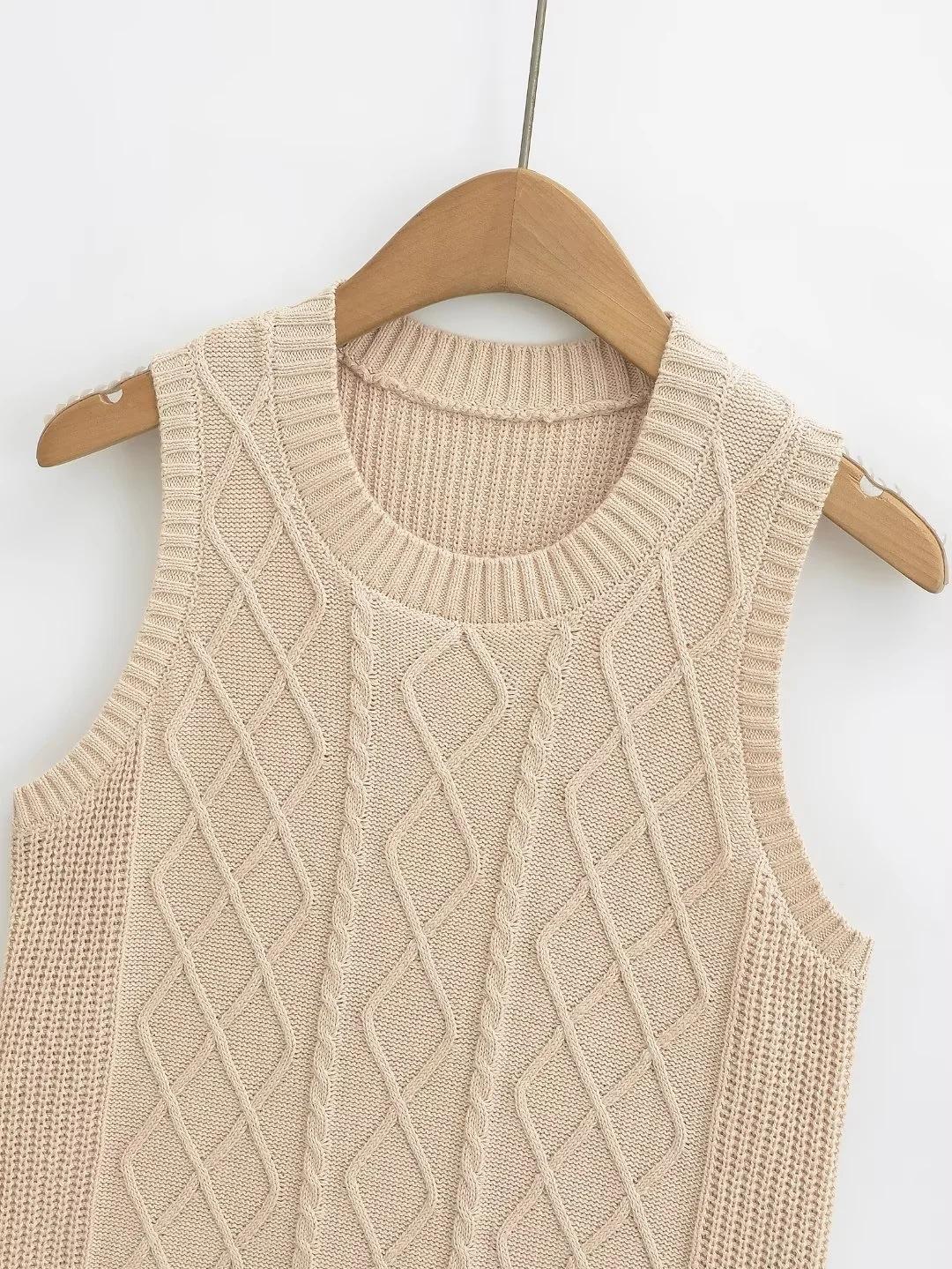 Otoño e Invierno Nuevo Cuello Redondo Suelto Trenzado Aguja Diamante Cuadrado Chaleco Tejido Estilo Universitario Chaleco de Lana para Mujer