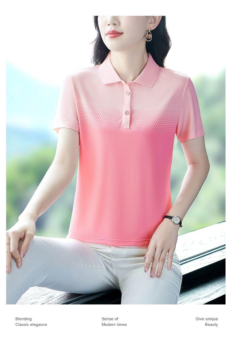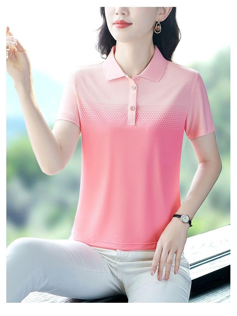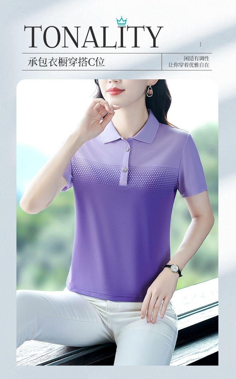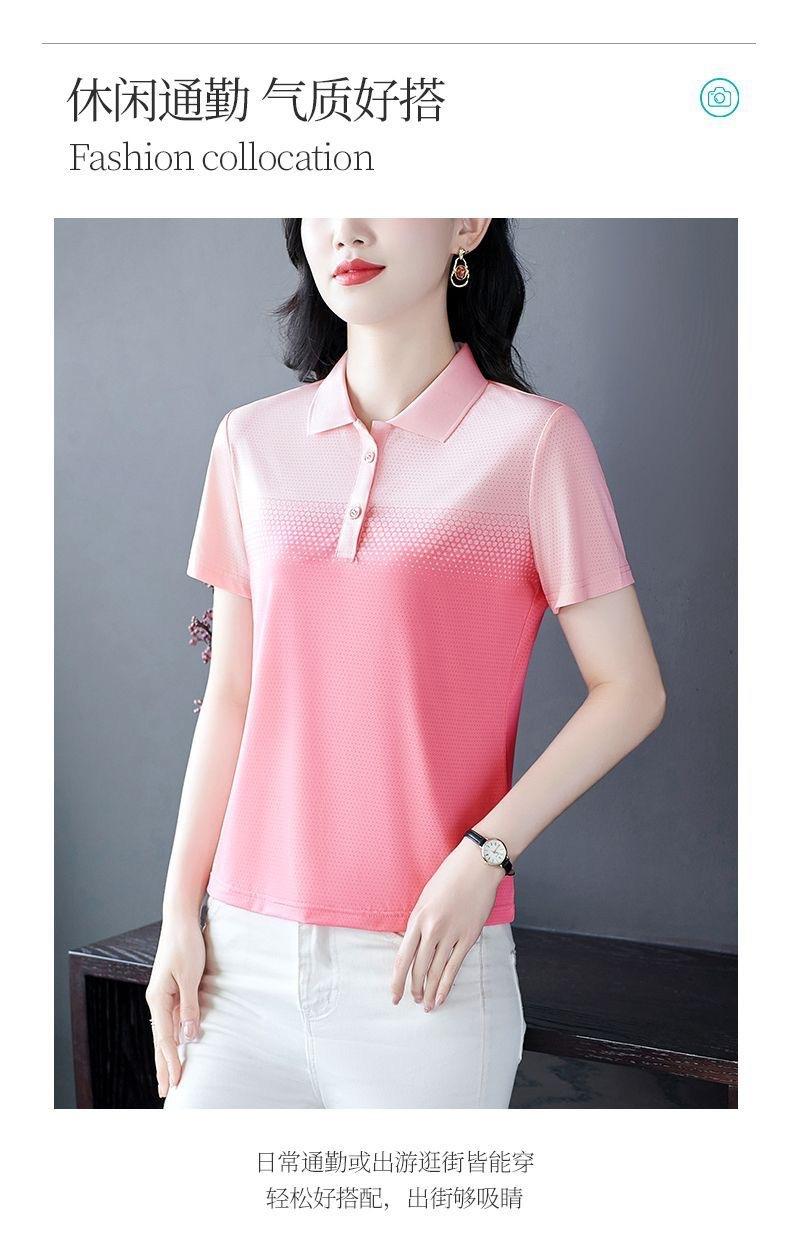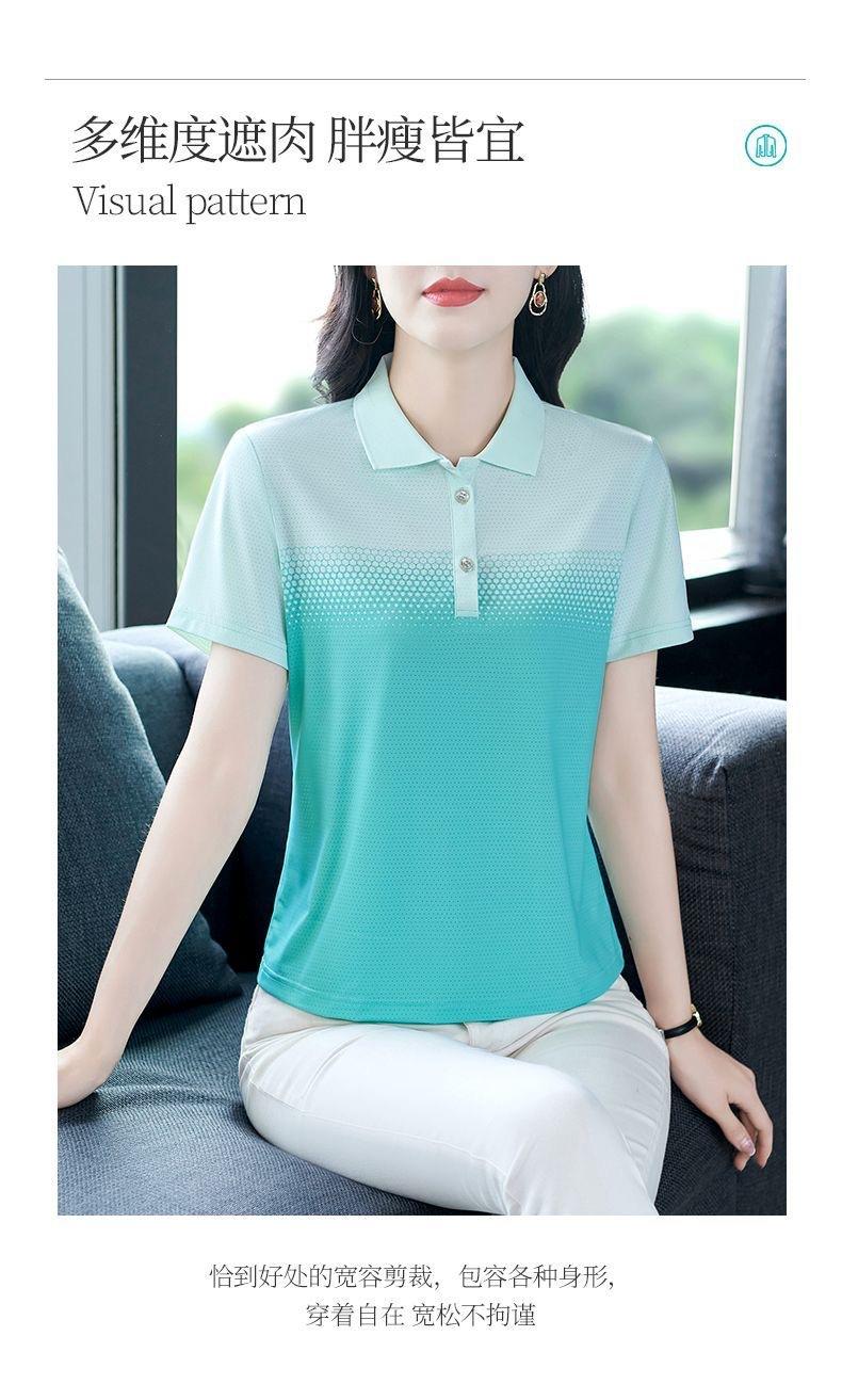 Camiseta de manga corta fresca de seda de hielo para mujer verano 2024 nueva camisa polo para madre camisa solapa abrigo una generación de cabello