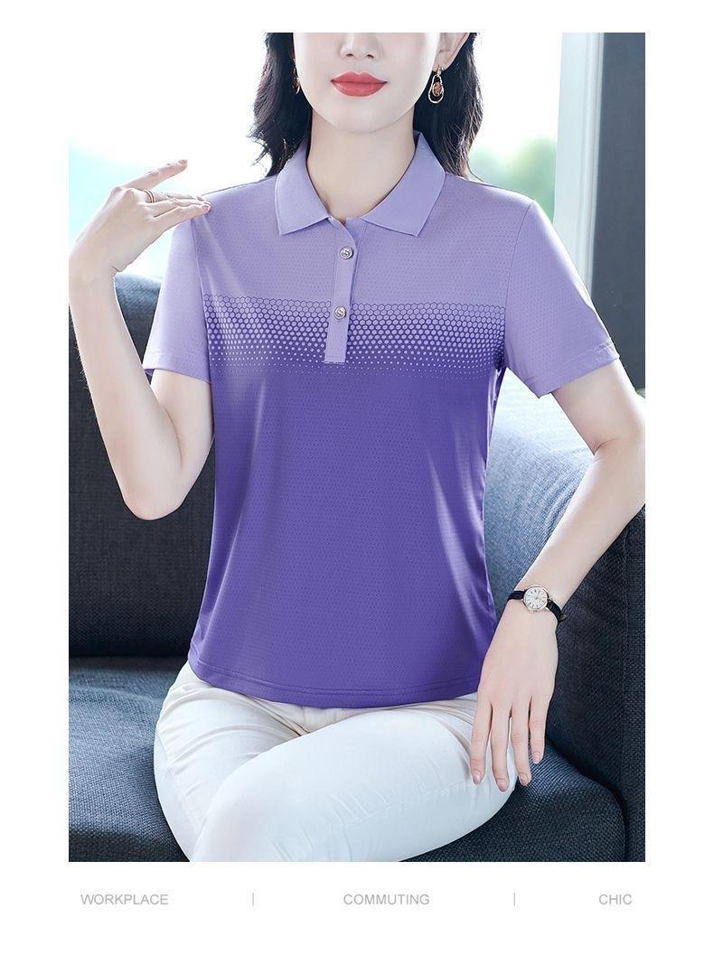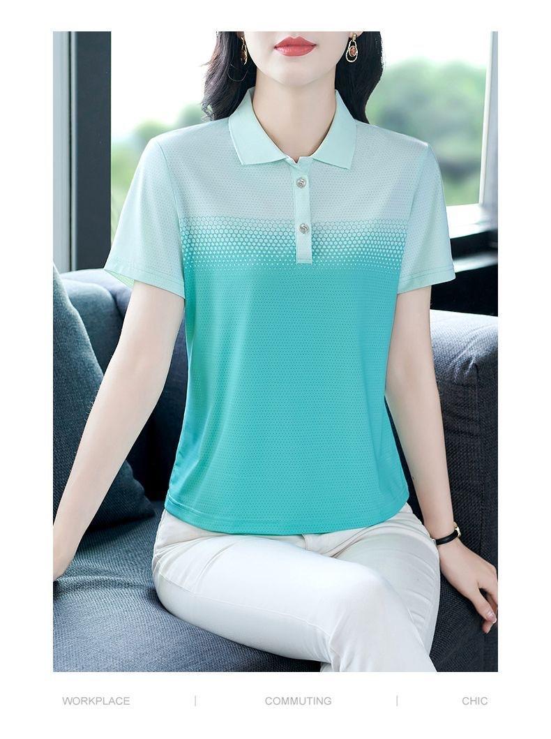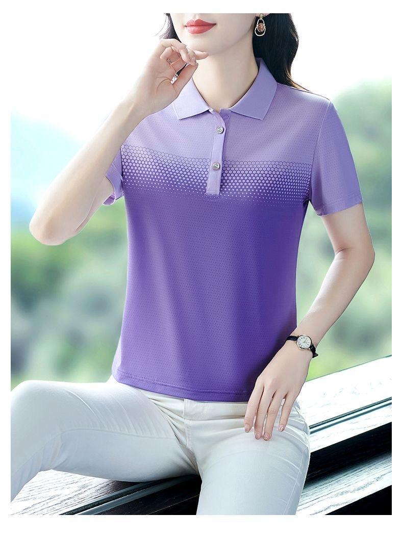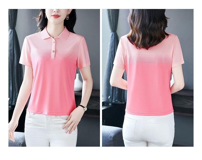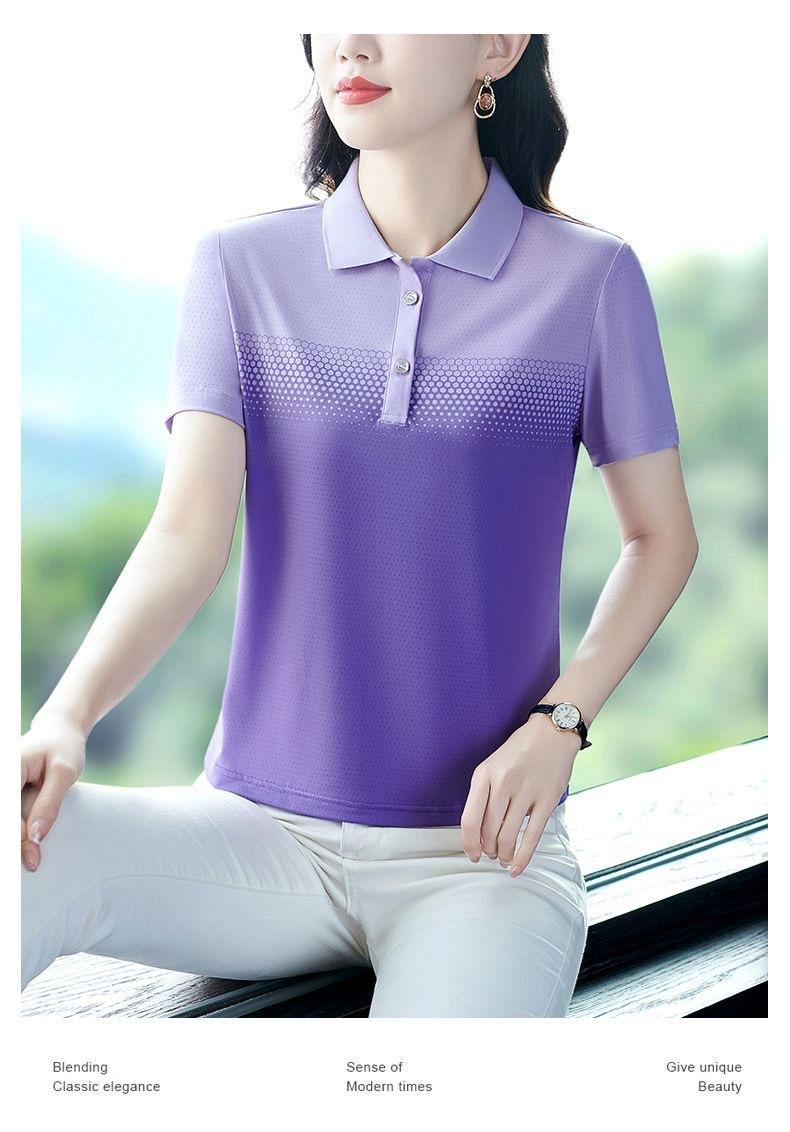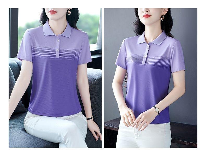 Camiseta de manga corta fresca de seda de hielo para mujer verano 2024 nueva camisa polo para madre camisa solapa abrigo una generación de cabello