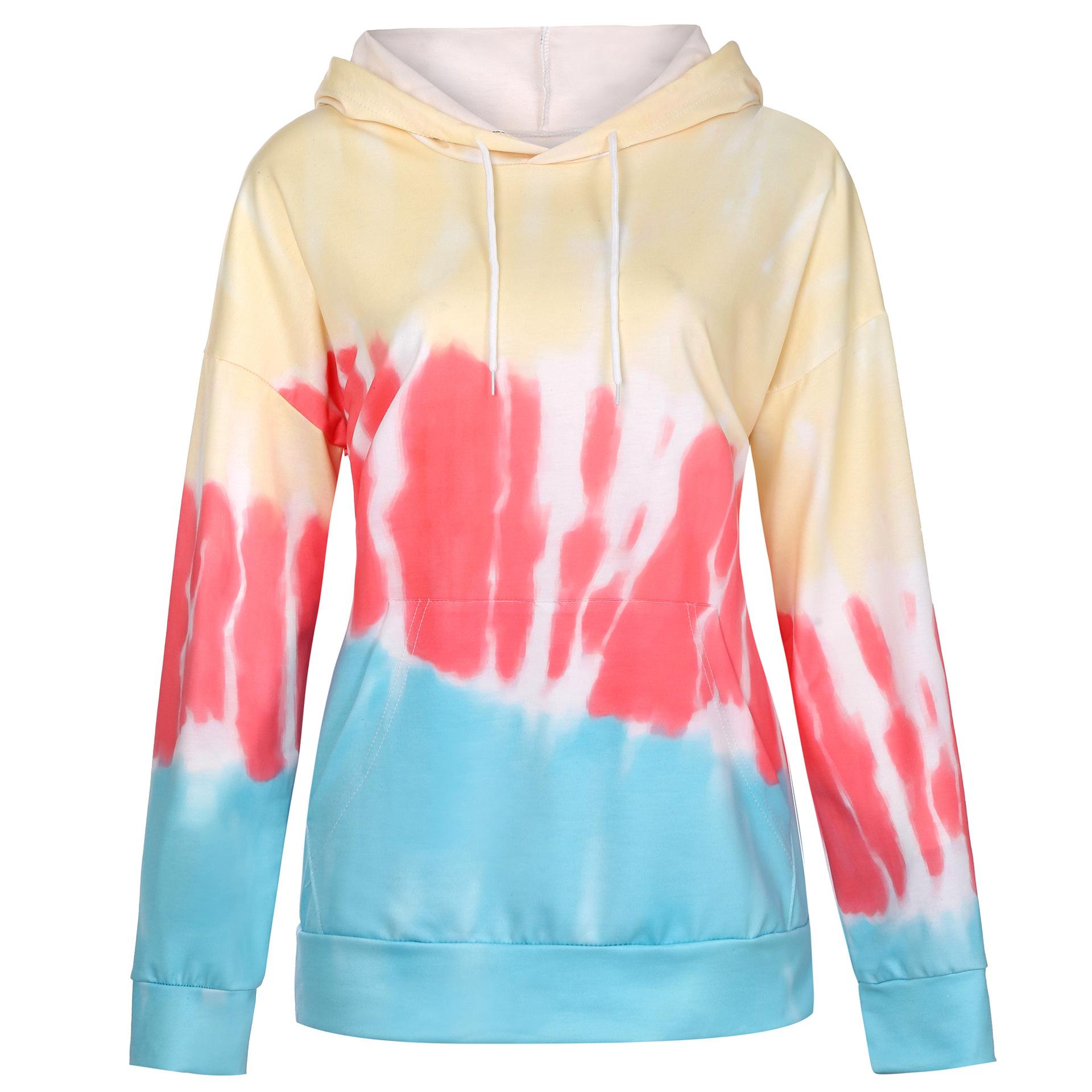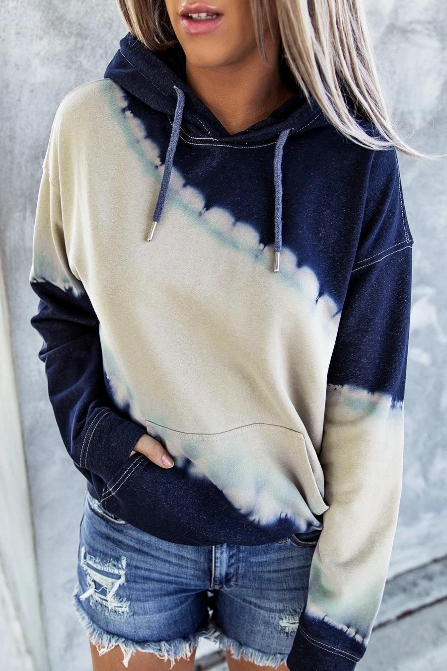 Otoño e Invierno Amazon ebay Comercio Exterior Transfronterizo Europeo y Americano Sudadera de Manga Larga con Capucha Estampada Tie-dye Holgada para Mujer