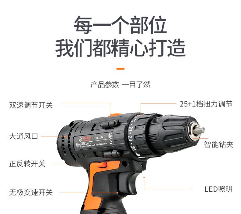 Taladro de mano para uso doméstico, herramienta recargable con batería de litio, pistola de impacto multifuncional, taladro, destornillador eléctrico.