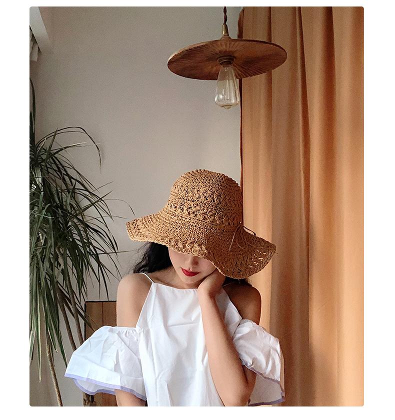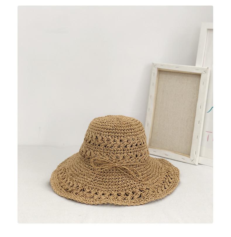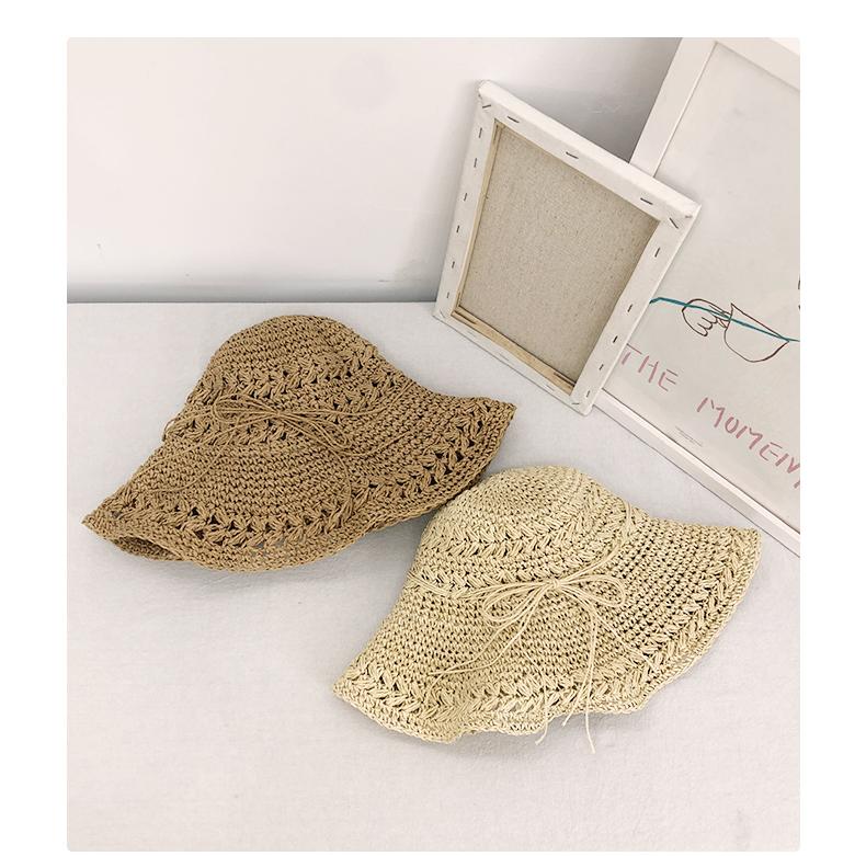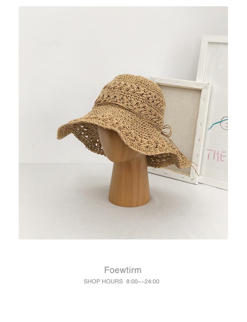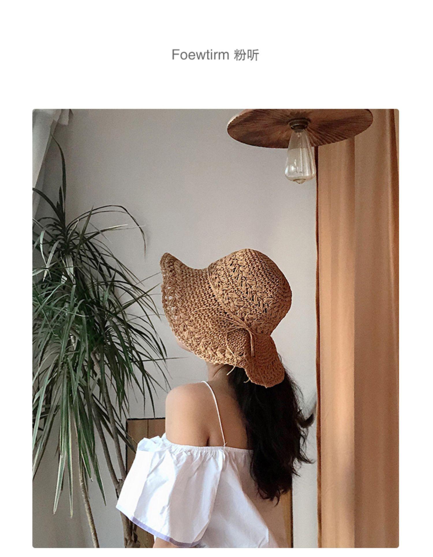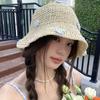 Sombrero de Paja Plegable Hecho a Mano Coreano para Mujer Verano Lazo Calado Protección Solar Combinable Playa Pescador Cubeta