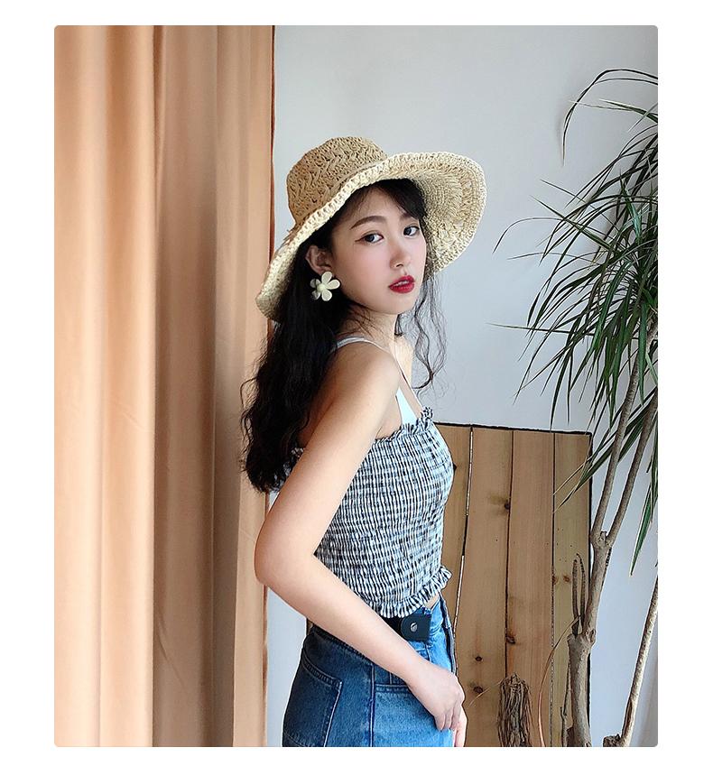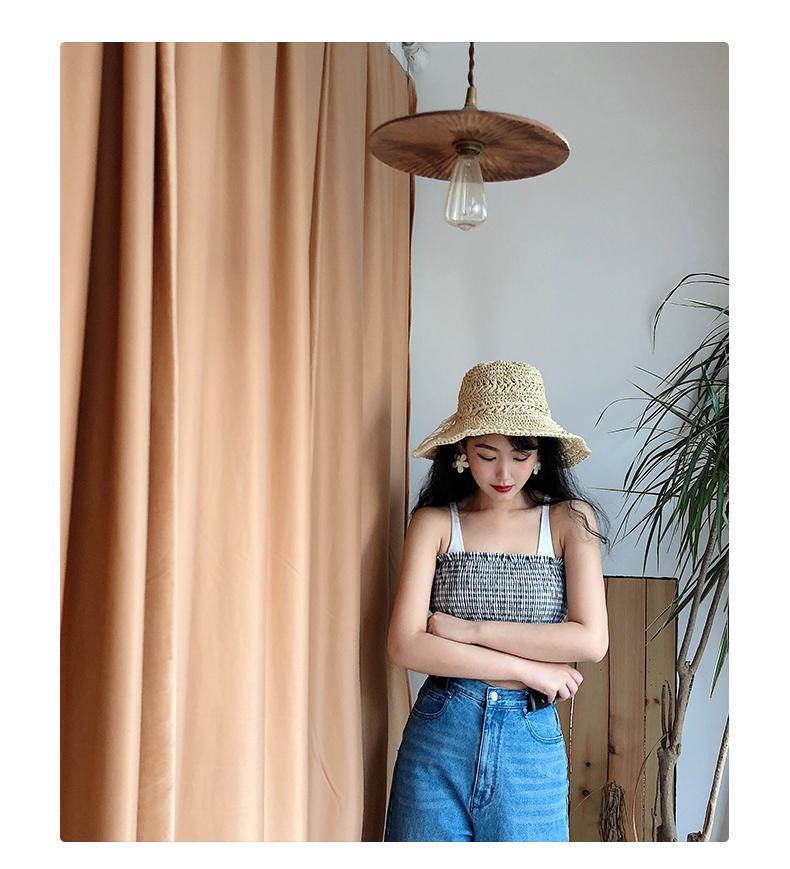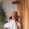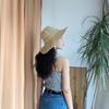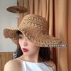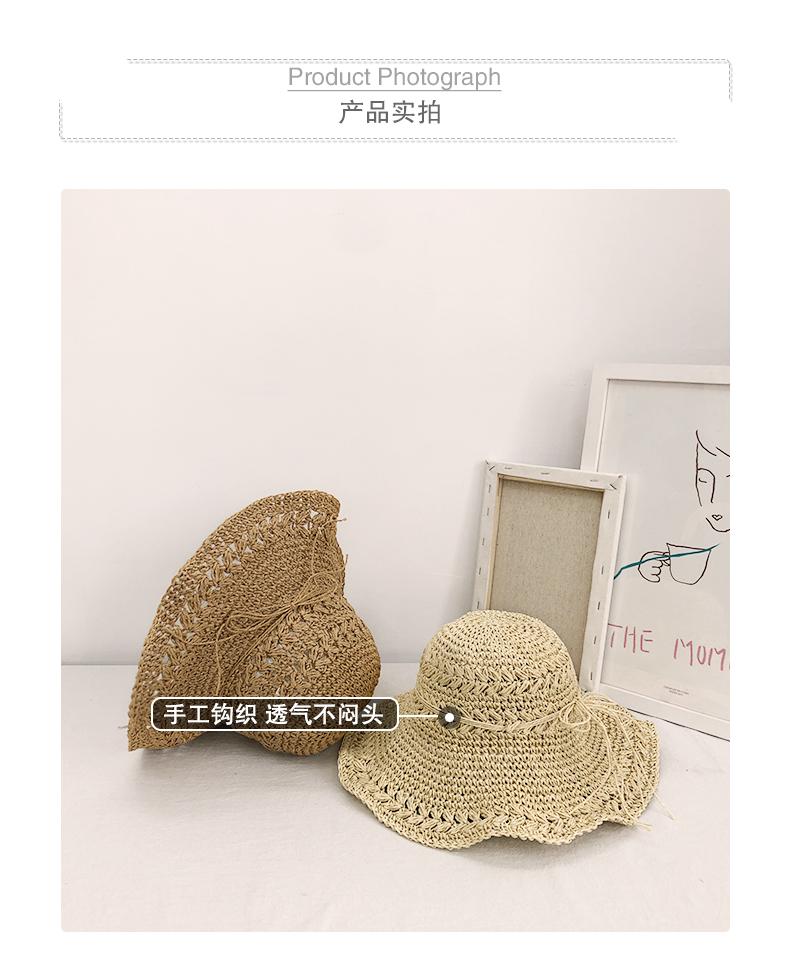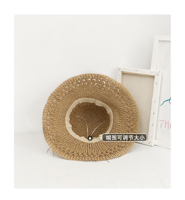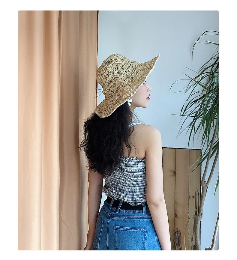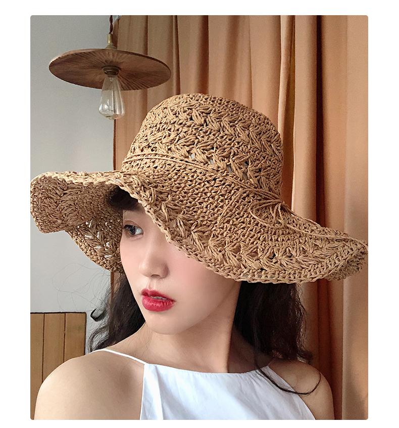Sombrero de Paja Plegable Hecho a Mano Coreano para Mujer Verano Lazo Calado Protección Solar Combinable Playa Pescador Cubeta
