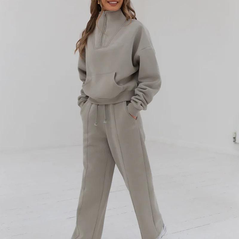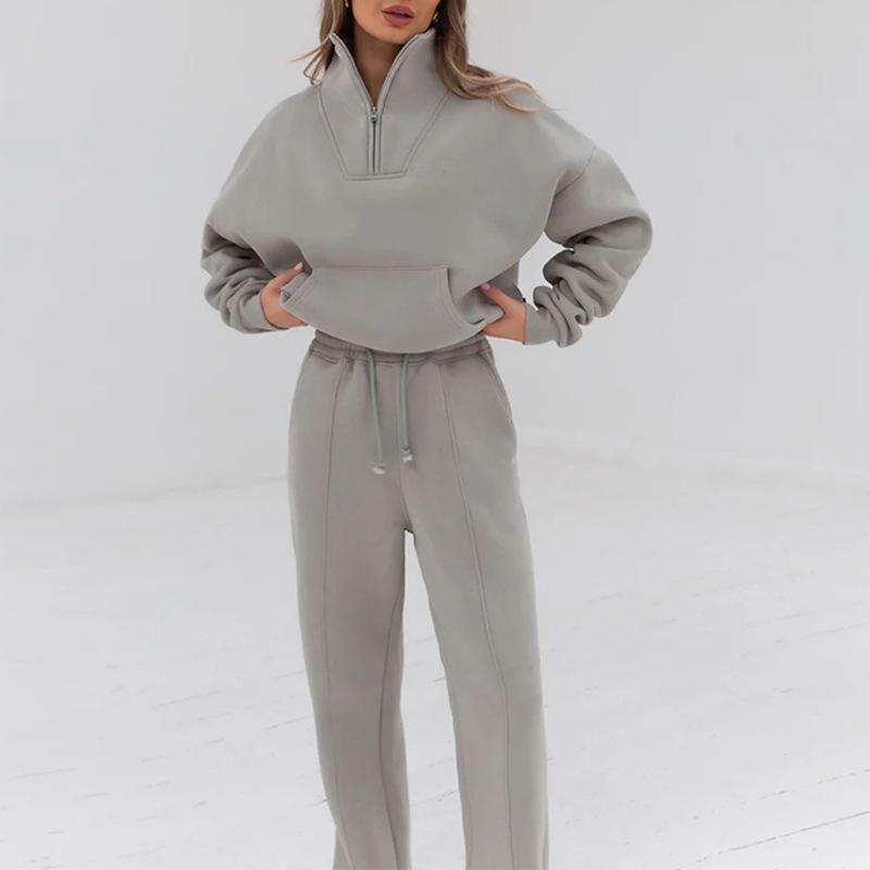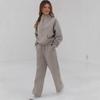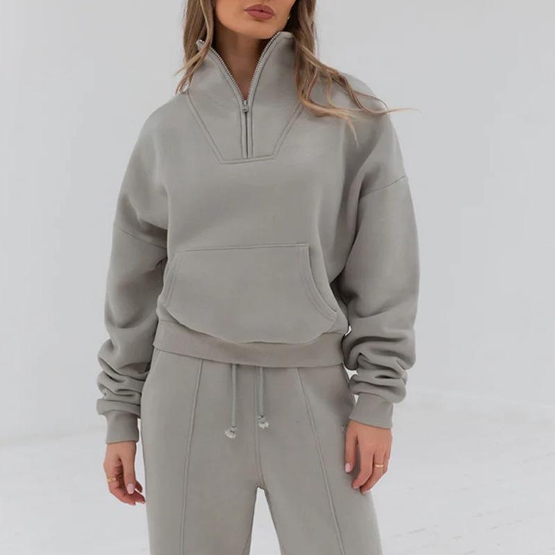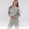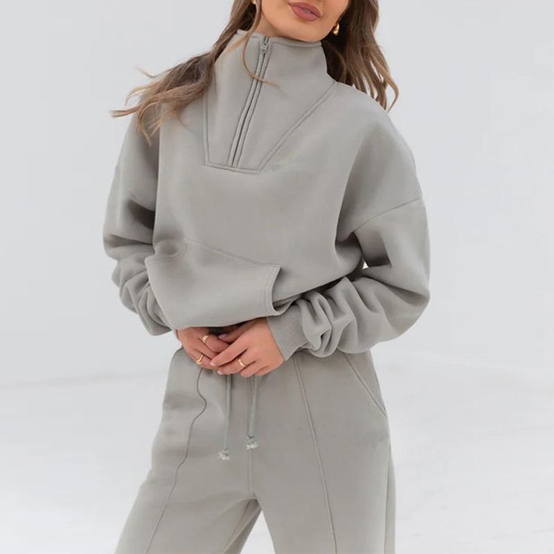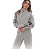 Ropa de Mujer Europea y Americana Transfronteriza 2025 Otoño e Invierno Sudadera de Color Puro con Cuello Alto, Pantalones con Bolsillo de Solapa y Cremallera, Sudadera Casual Holgada para Mujer