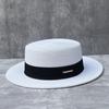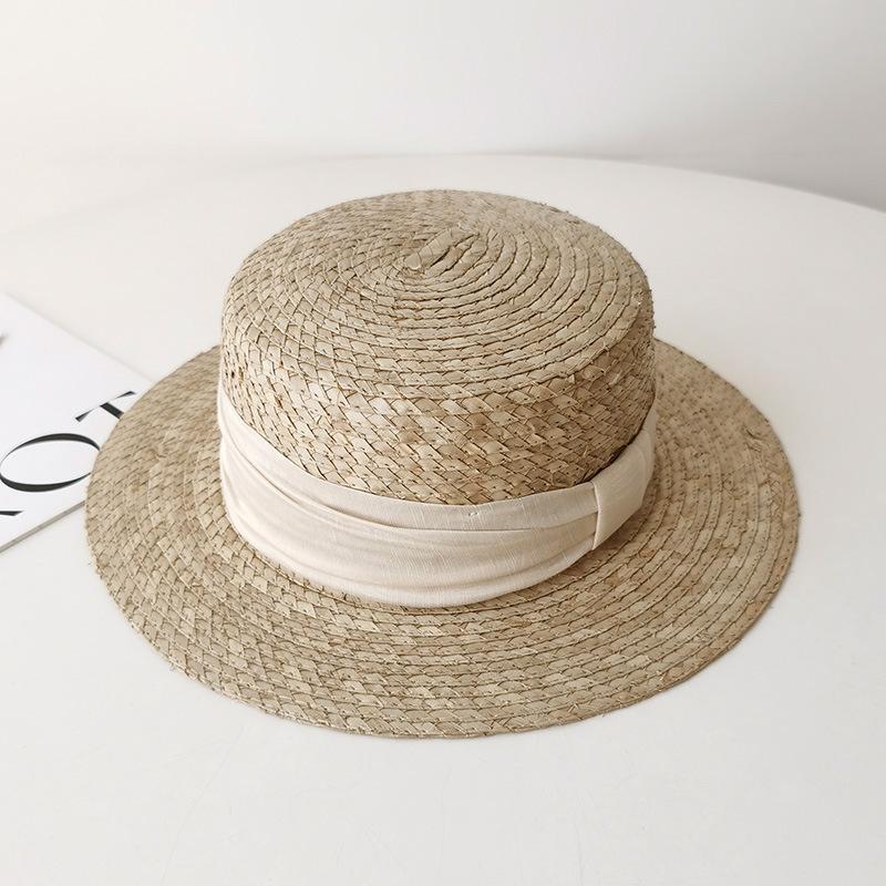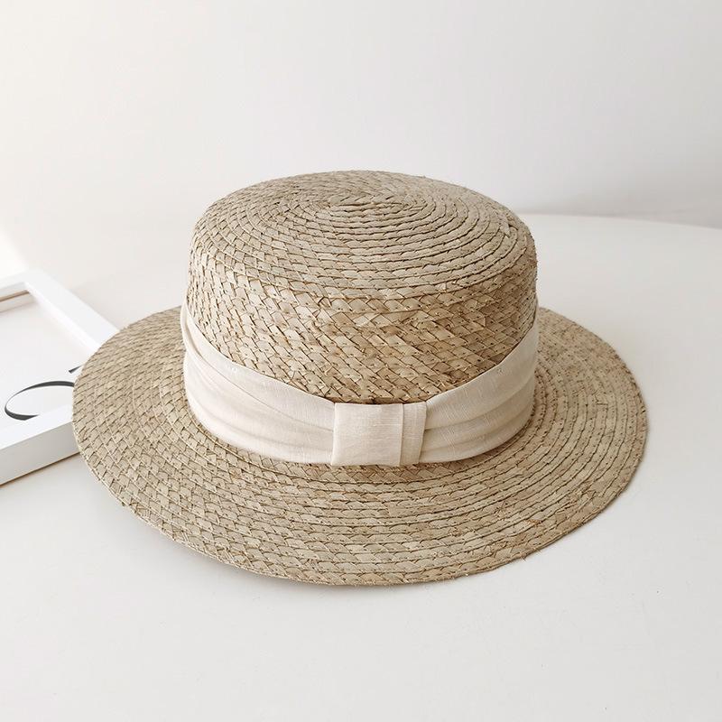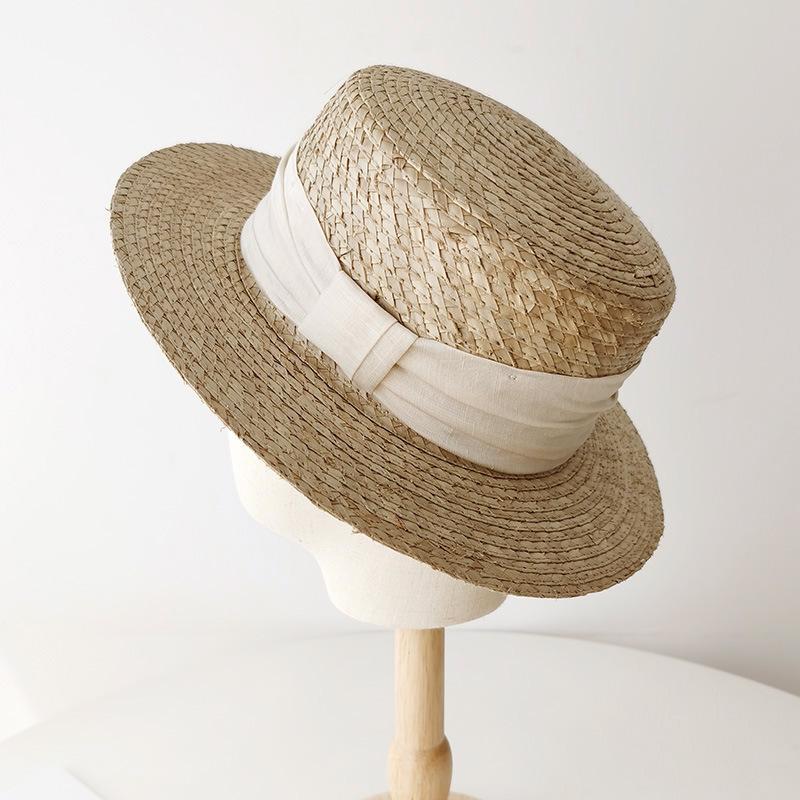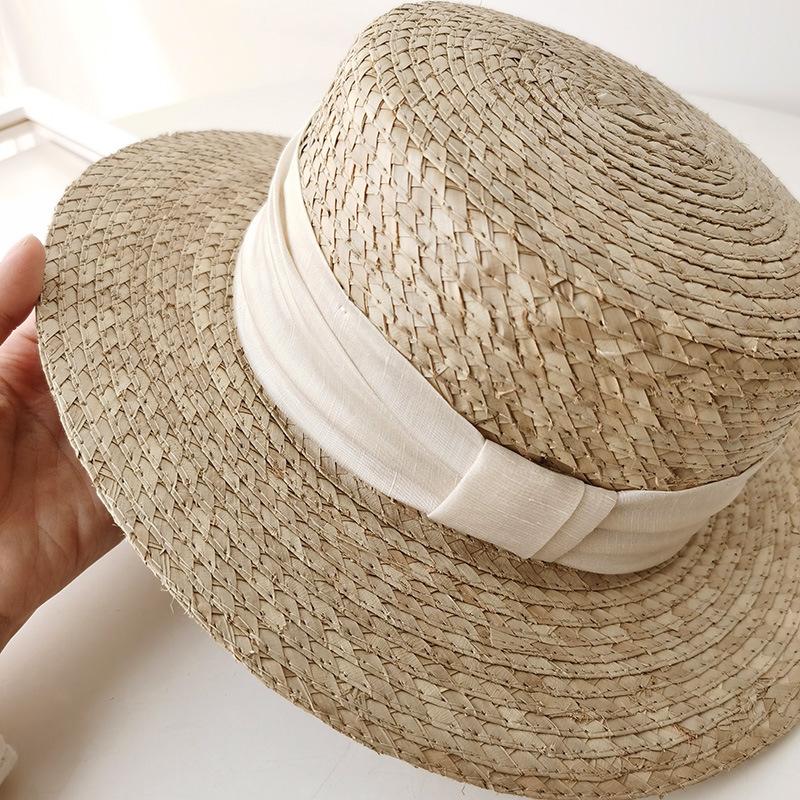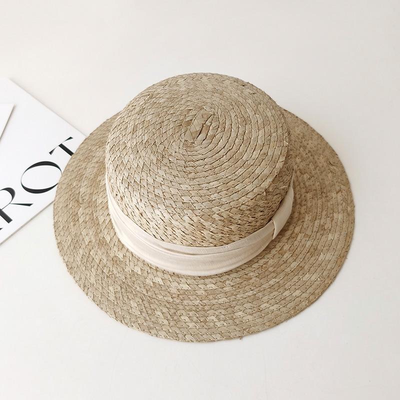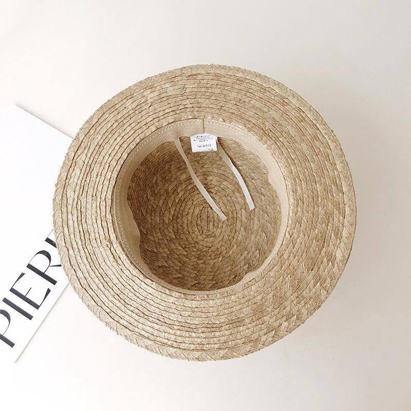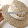 Sombrero de Copa Plano Panamá Infantil Vacaciones Marinas Sombrero Plano de Paja Francés Que Muestra la Cara Sombrero de Playa Pequeño Parasol Protector Solar Sombrero de Copa