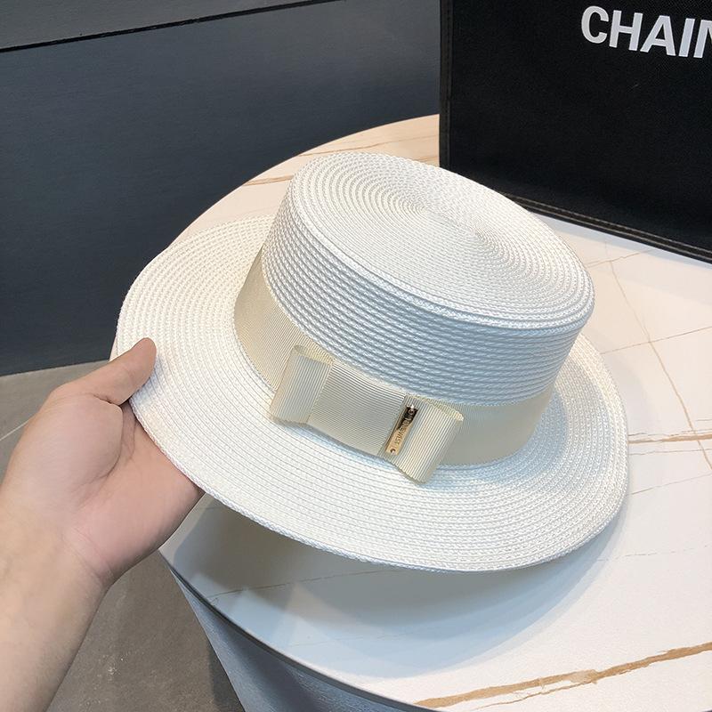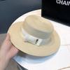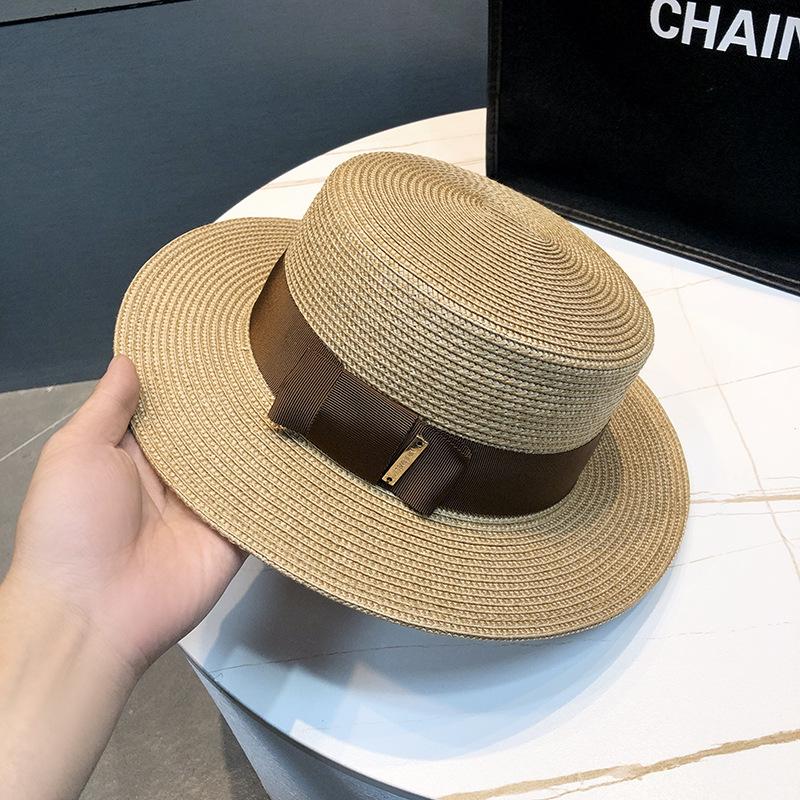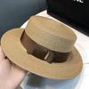 Sombrero de Paja de Verano Francés de Copa Plana para Mujer, Sombrero de Viaje para la Playa, Sombrero de Paja con Visera y Protección Solar para Dama, Sombrero de Sol para la Playa