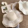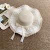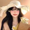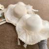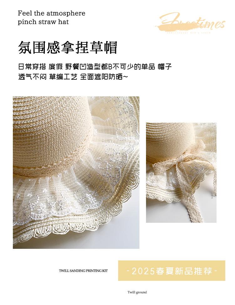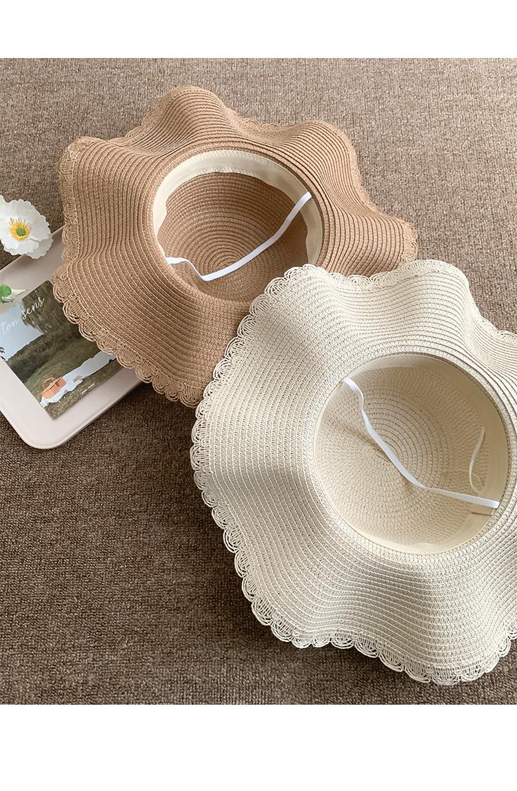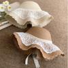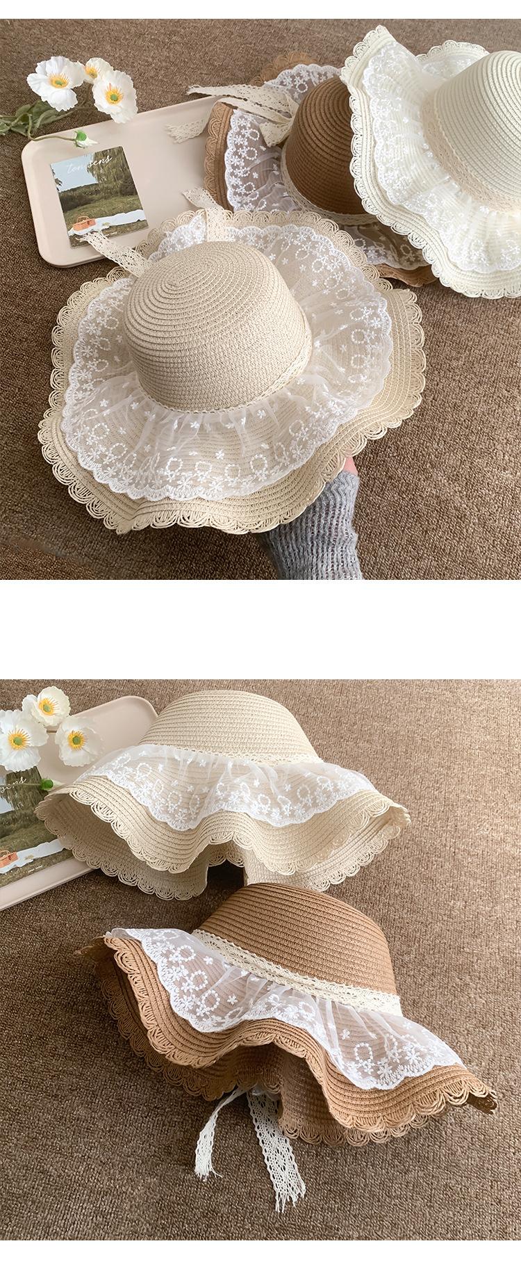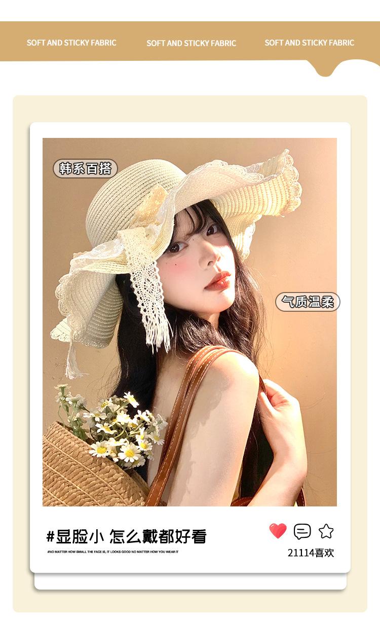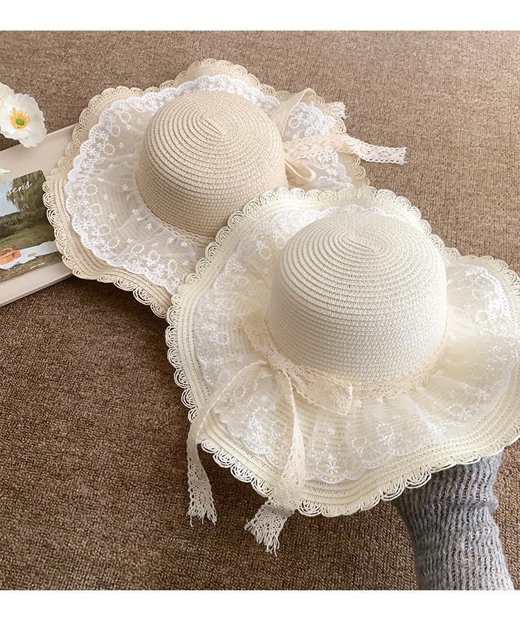 Sombrero de Paja con Lazo de Encaje para Mujer Verano Vacaciones en la Playa Mar Sombrero para el Sol Sombrero Francés de Ala Ancha Protección Solar