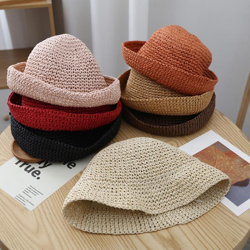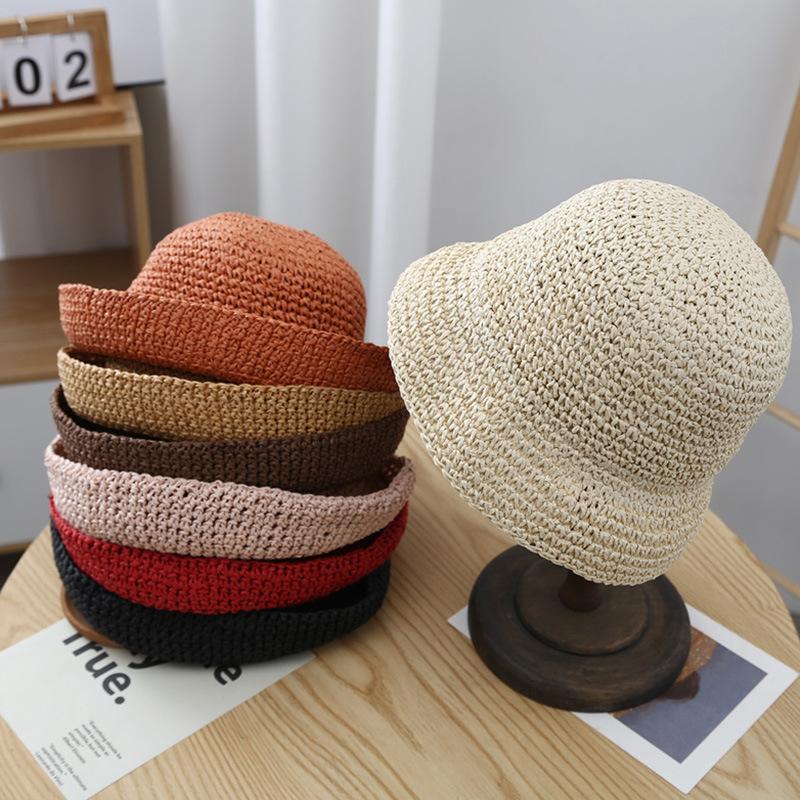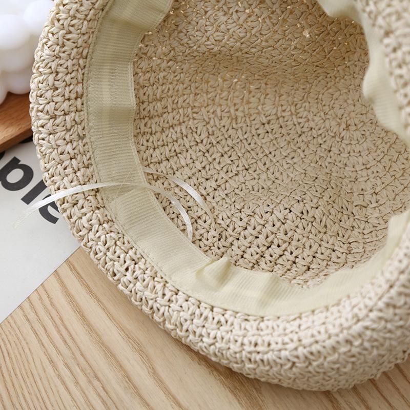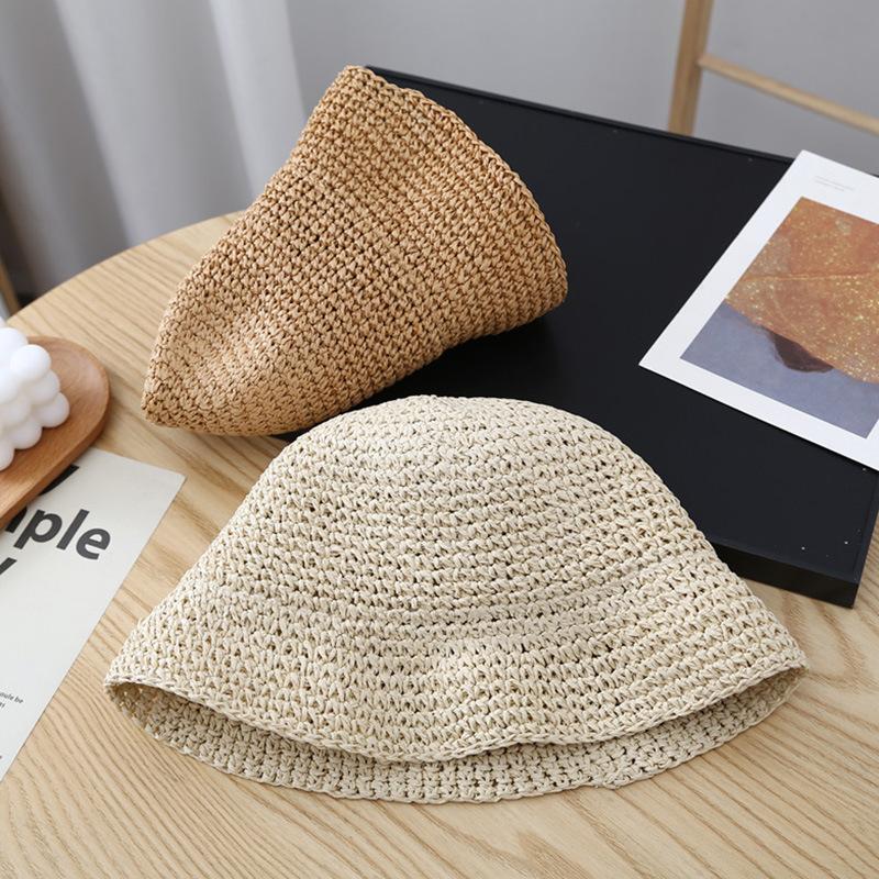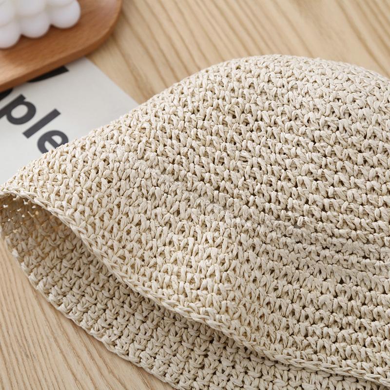 Sombrero de Paja de Moda para Mujer, Sombrero de Verano para Playa con Protección Solar, Sombrero de Pescador de Ala Pequeña Transpirable Estilo Japonés y Coreano