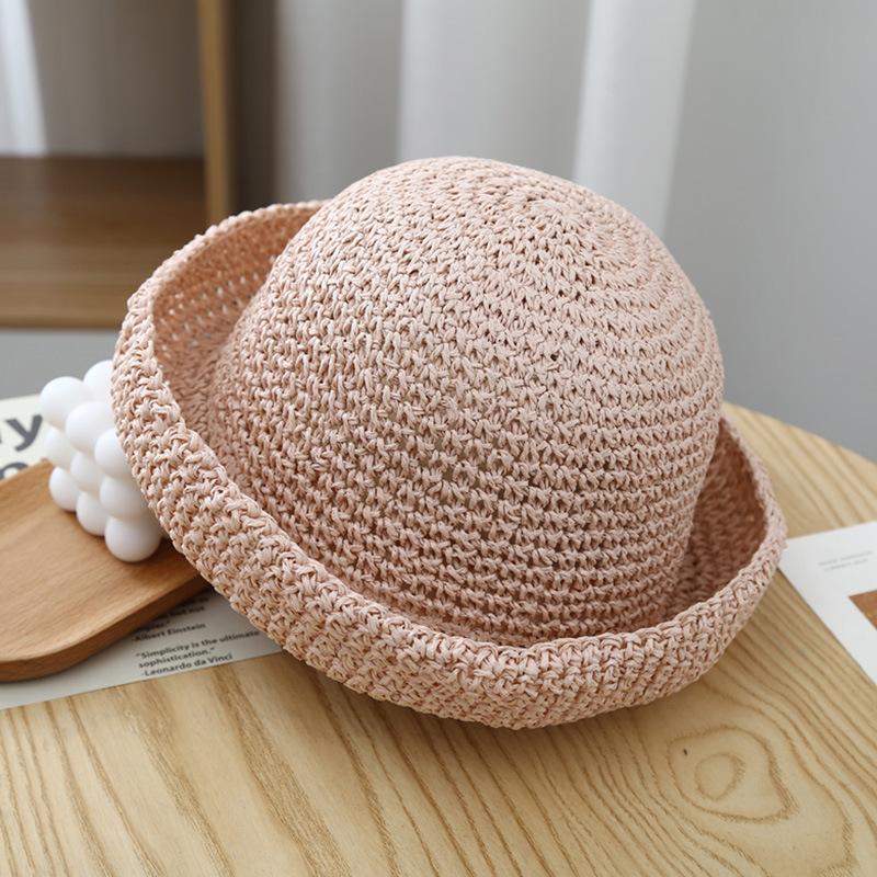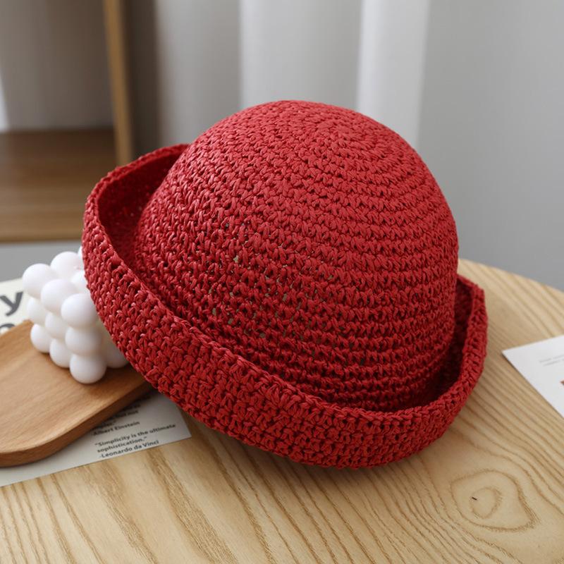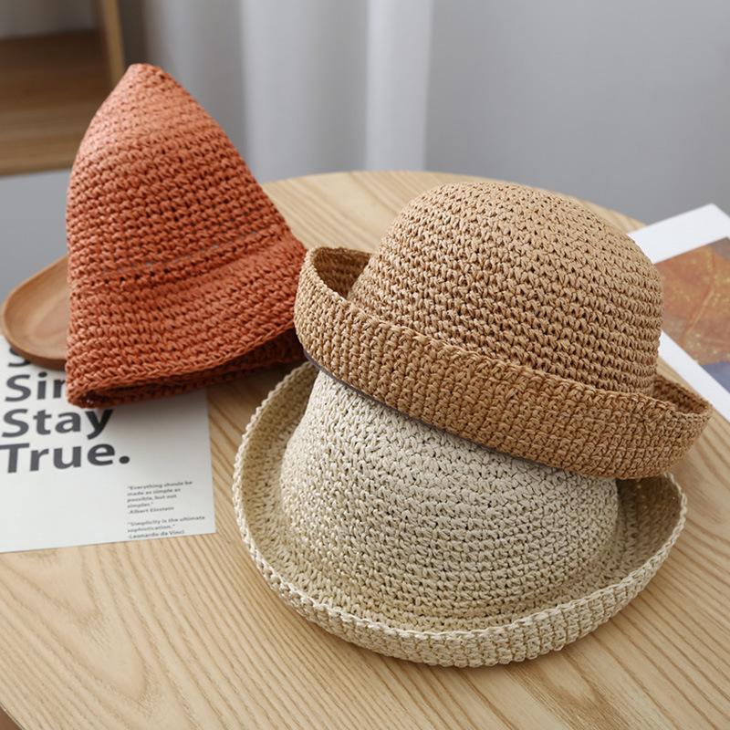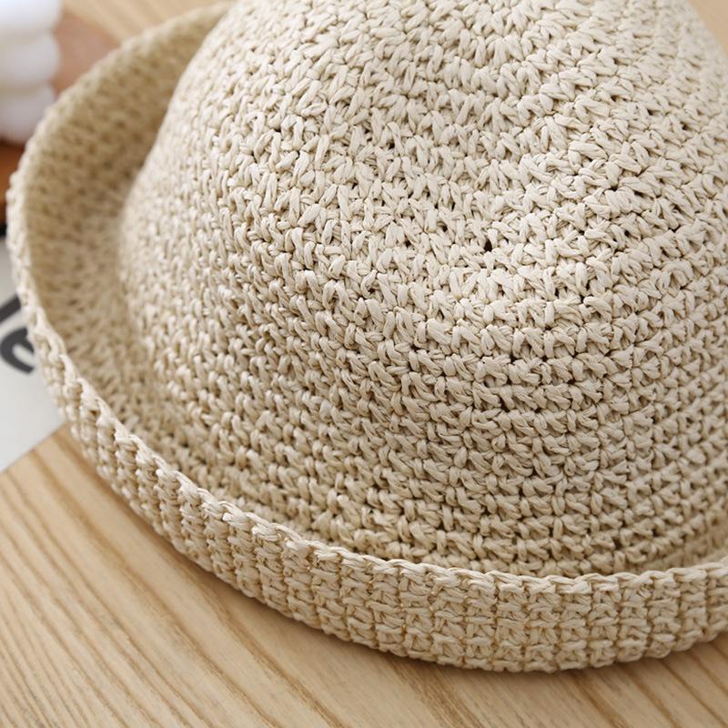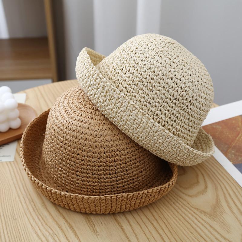 Sombrero de Paja de Moda para Mujer, Sombrero de Verano para Playa con Protección Solar, Sombrero de Pescador de Ala Pequeña Transpirable Estilo Japonés y Coreano