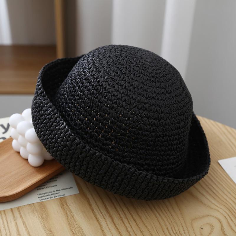 Black/curled handmade straw hat, Off-white/rolled edge handmade straw hat, Khaki/rolled edge handmade straw ha...