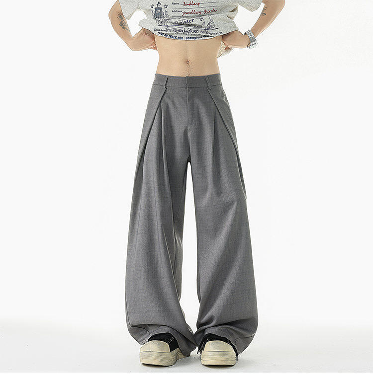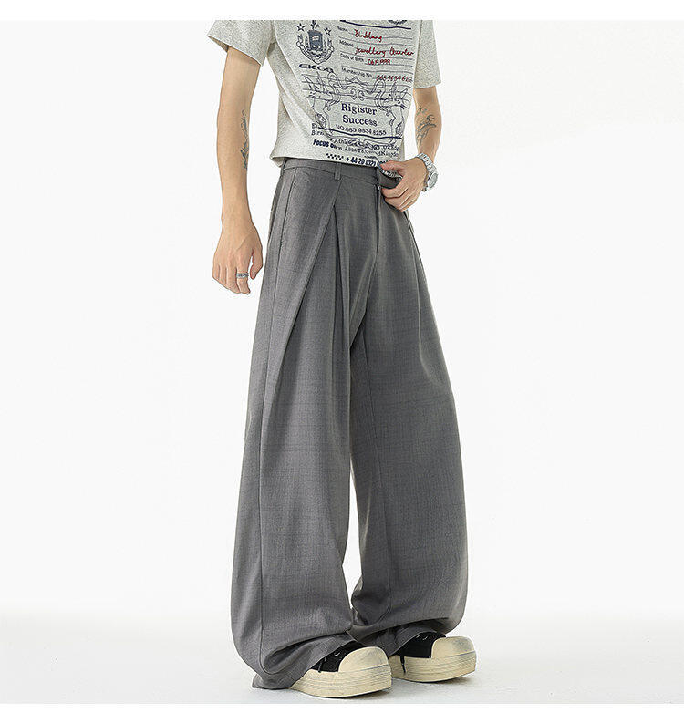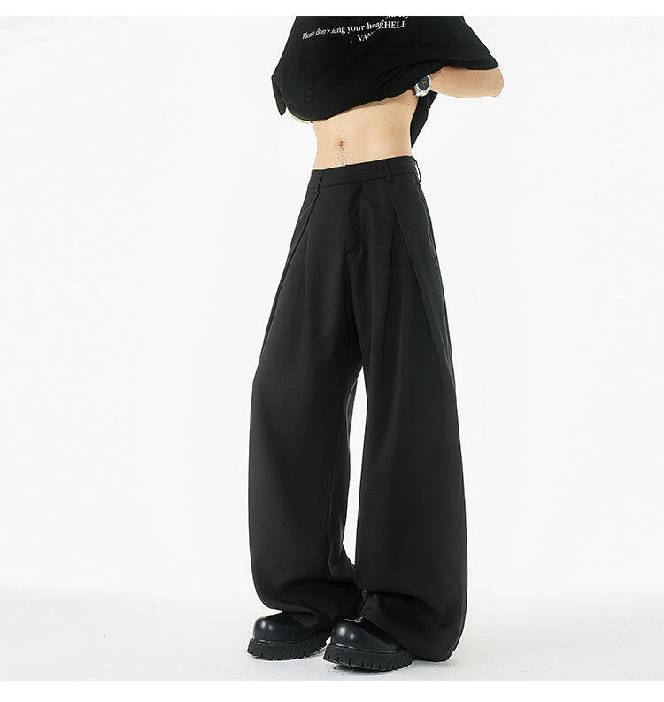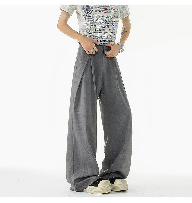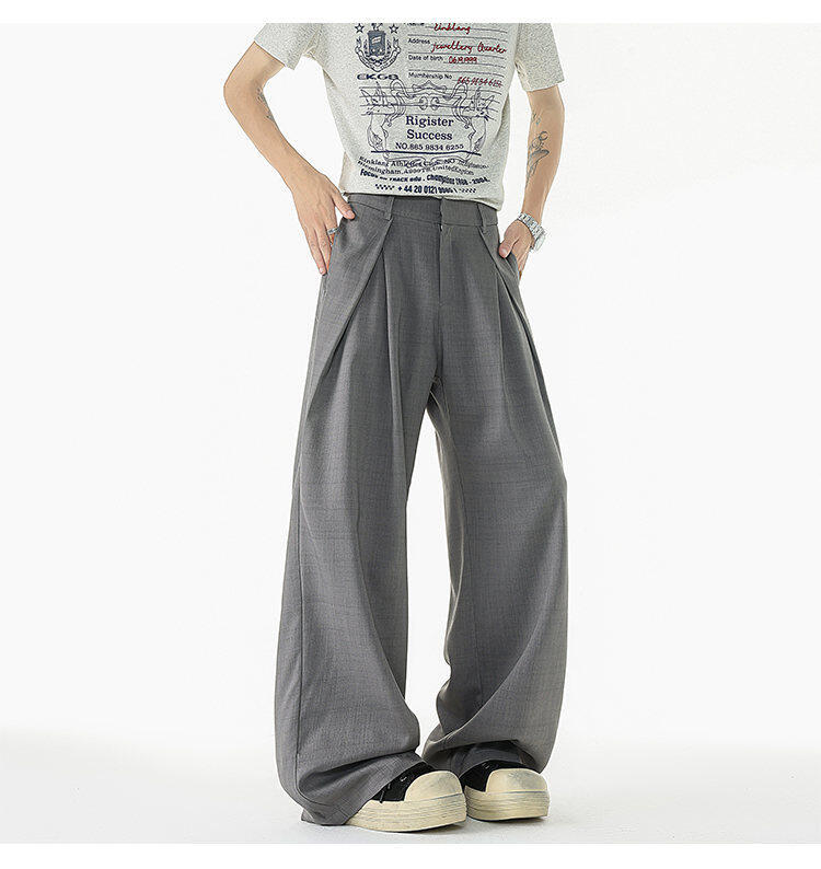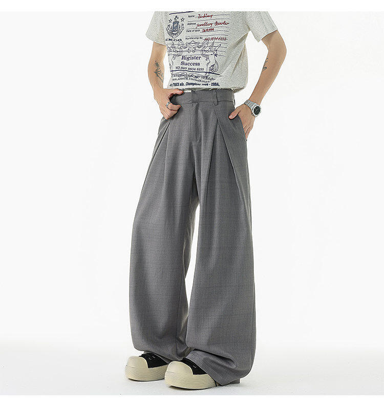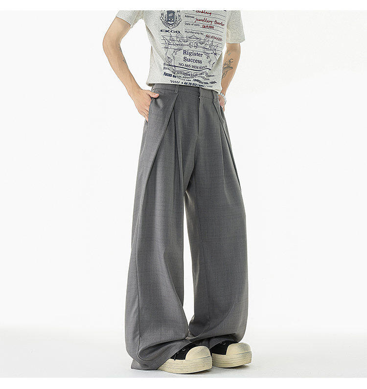 2025 Verano Nuevo Estilo Pantalones Plisados en A con Forma de I Rectos de Pierna Ancha Drapeados Casuales Largos Pantalones Juveniles a la Moda