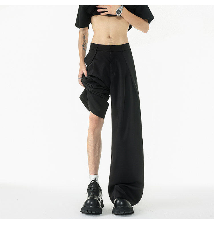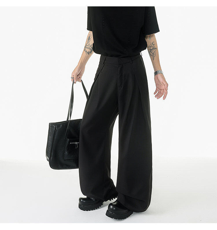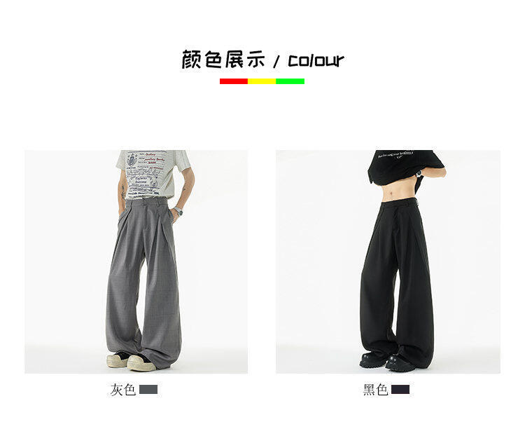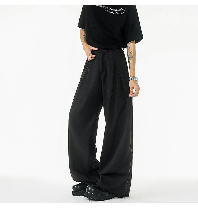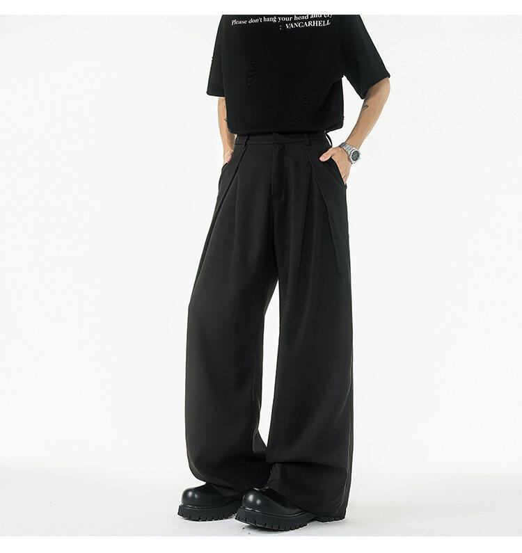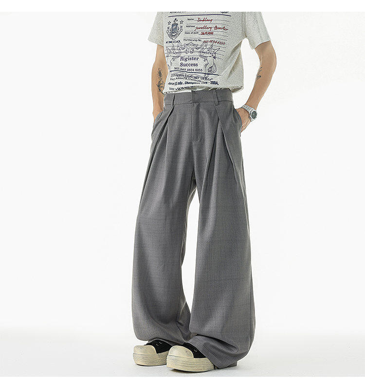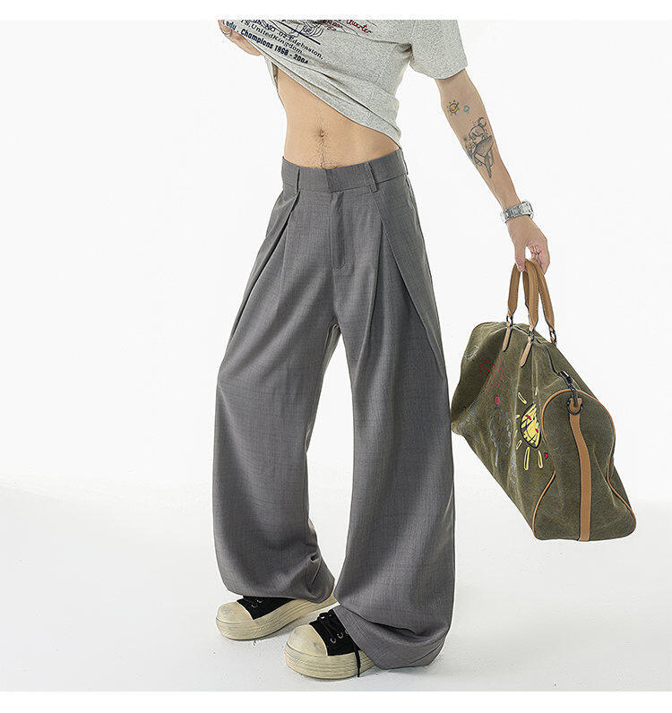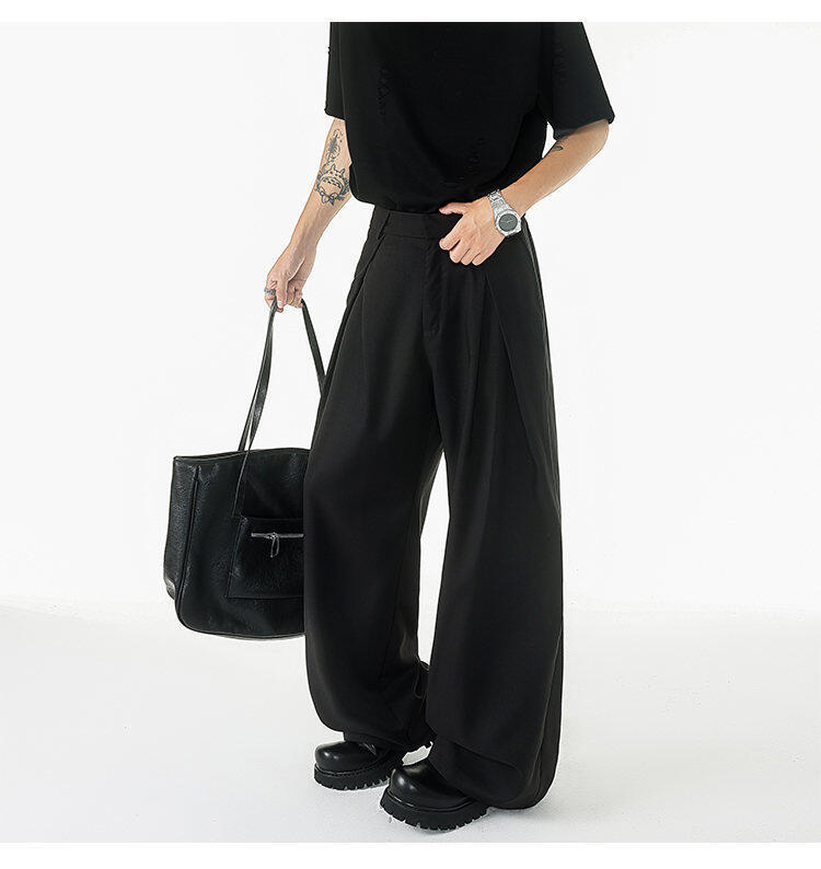2025 Verano Nuevo Estilo Pantalones Plisados en A con Forma de I Rectos de Pierna Ancha Drapeados Casuales Largos Pantalones Juveniles a la Moda