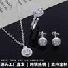 Elegante Juego de Joyería de Cristal Plateado - Collar, Aretes, Anillo Ajustable | Uso Diario y Formal