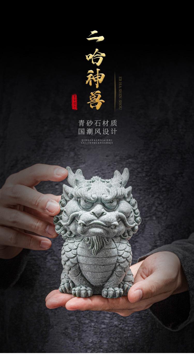 Blue sandstone ornaments_erha mythical beast 15*10*11.5cm, Blue sandstone ornaments_erha mythical beast 4.4*4....