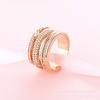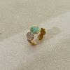 Elegante anillo chapado en oro presenta llamativo diseño en espiral azul y blanco Construcción de metal de alta calidad asegura durabilidad y comodidad Patrón único llamativo adecuado para uso diario u ocasiones especiales Regalo perfecto para entusiastas de la moda que aprecian diseños de joyería artística