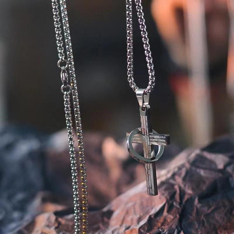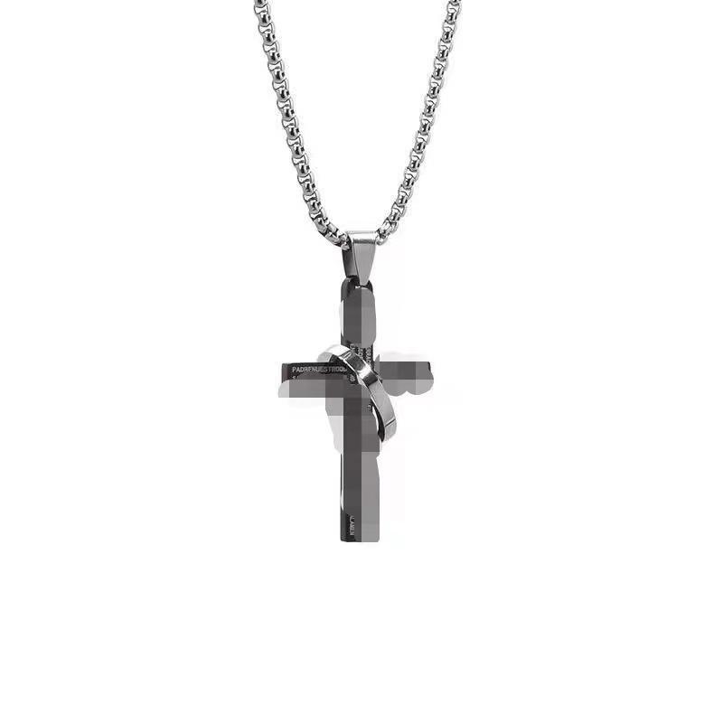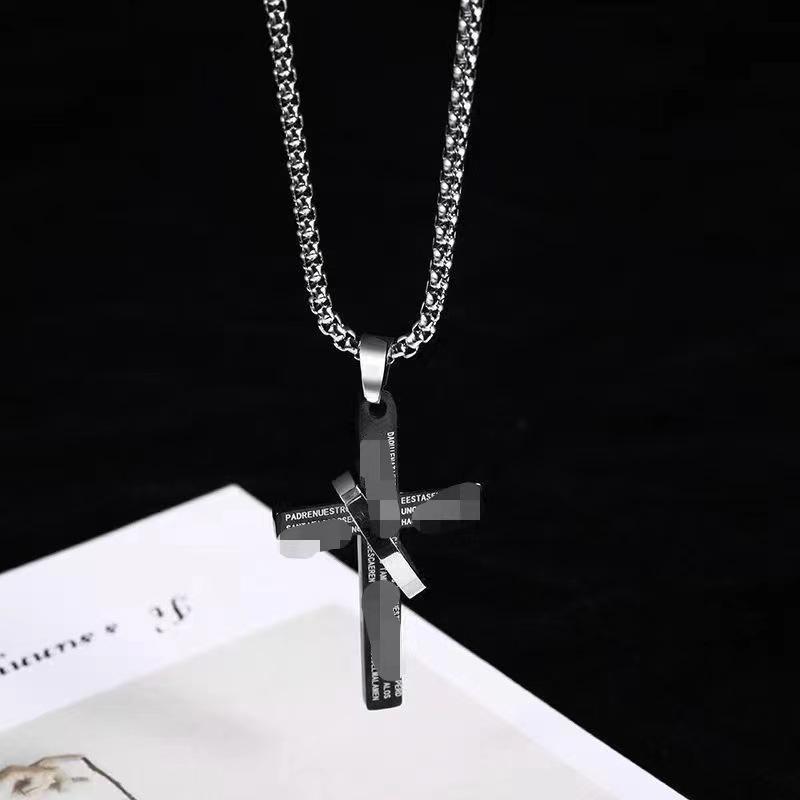 English cross necklace - full body stainless steel [steel color 70cm], English cross necklace - stainless steel [black 70cm]