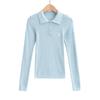 Suéter de Punto de Manga Larga con Cuello Polo Francés para Mujer Ropa de Otoño Diseño Suéter Bordado Camisa Base Top de Estilo Europeo Ins a la Moda