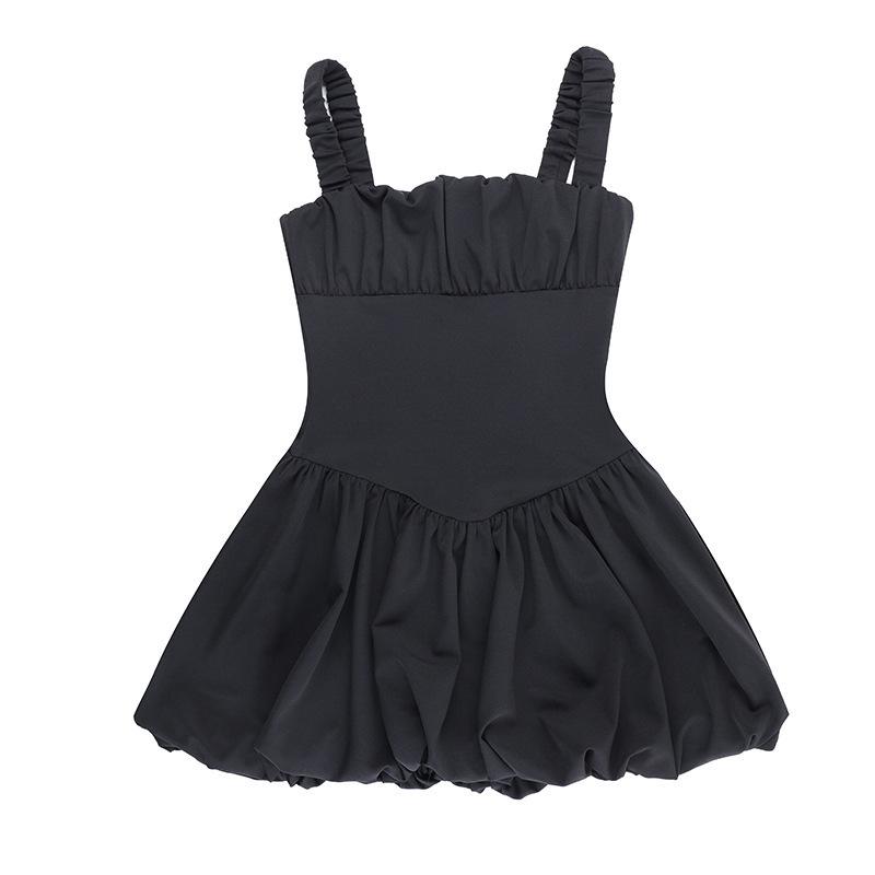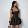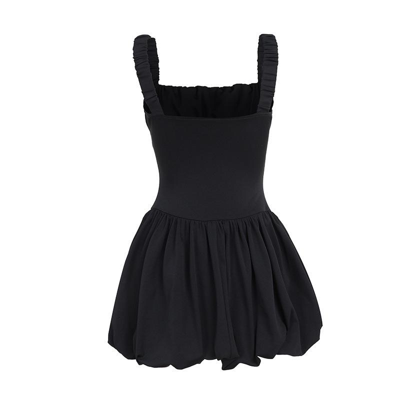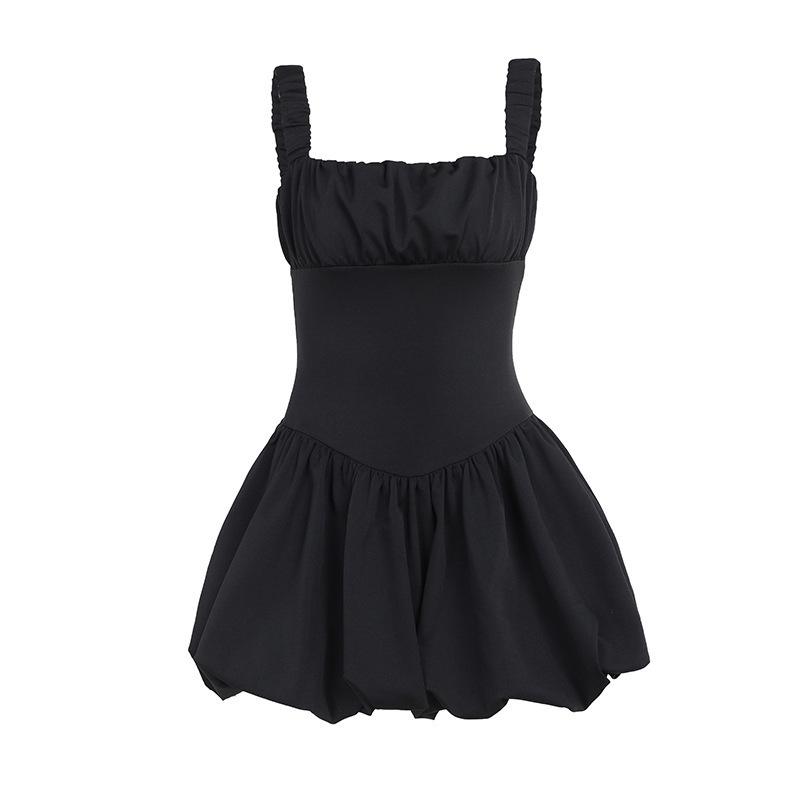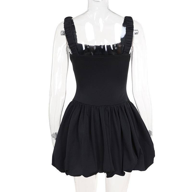 Estilo Europeo y Americano Transfronterizo Verano Temperamento Nuevo Vestido de Tirantes Falda Abullonada Color Sólido Espalda Descubierta Moda Plisado Listo para la Venta
