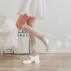 Calcetines Largos de Encaje Jk Media Pierna Calcetines Lolita Lazo Encaje Blanco Calcetines Lolita de Pantorrilla Calcetines de Media Pantorrilla para Mujer