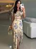 Verano 2025 Exportación Nuevo Europeo y Americano Amazon Elegante Estampado Sexy Top de Tubo + Falda Falda Larga Conjunto de Dos Piezas
