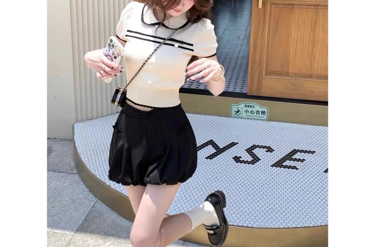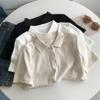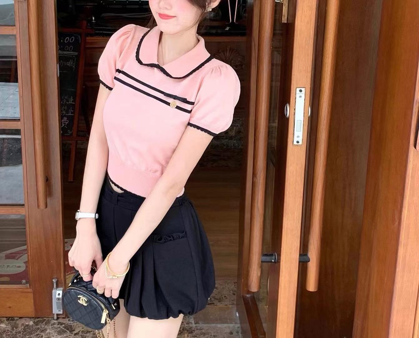 Nuevo 2024 Estilo Coreano Retro Moda Combinable Nicho Ajustado Adelgazante Elegante Suéter Top de Manga Corta con Cuello Polo