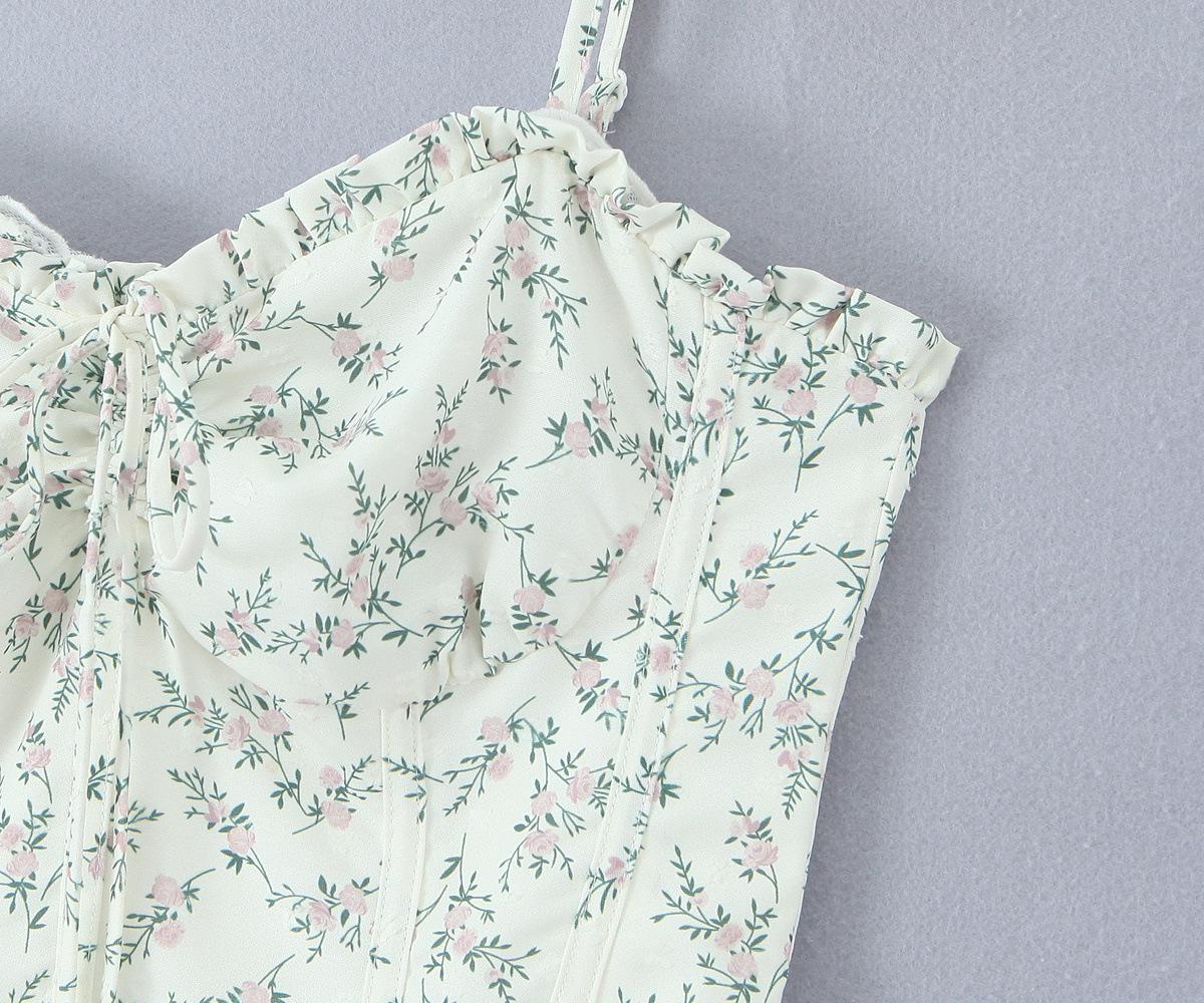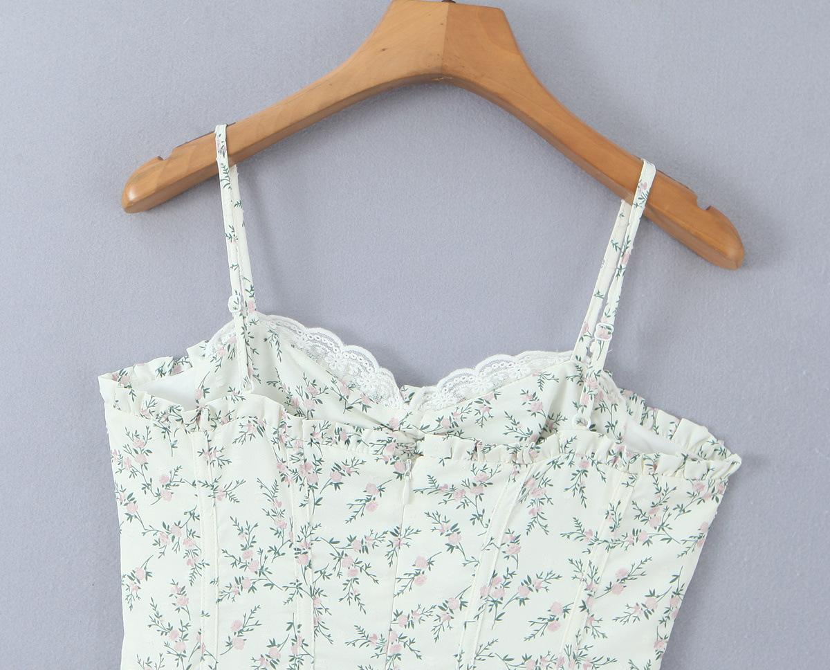 Vestido de tirantes floral vintage estilo francés para mujer 2025 verano nuevo corte ajustado espalda descubierta encaje falda corta