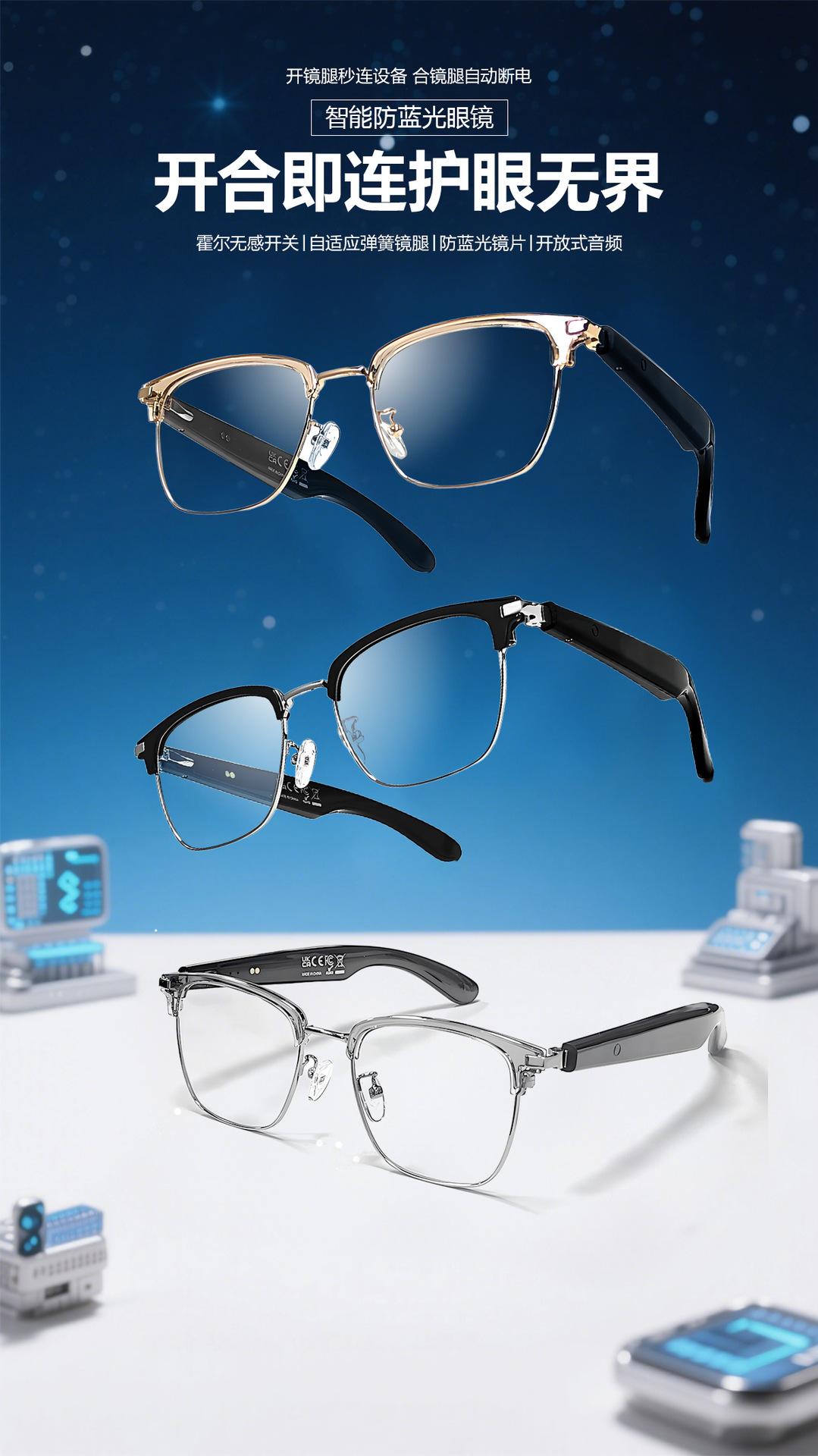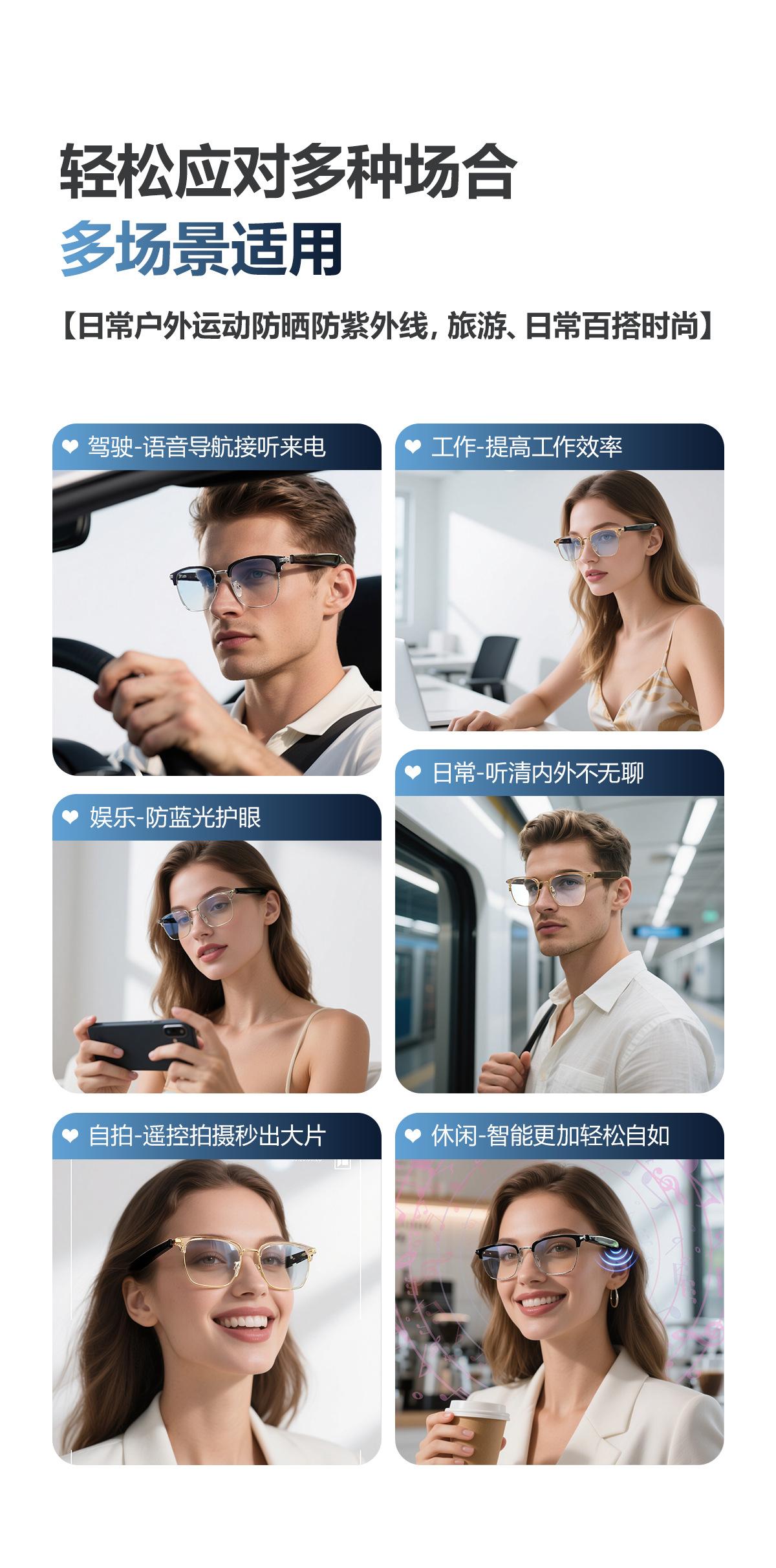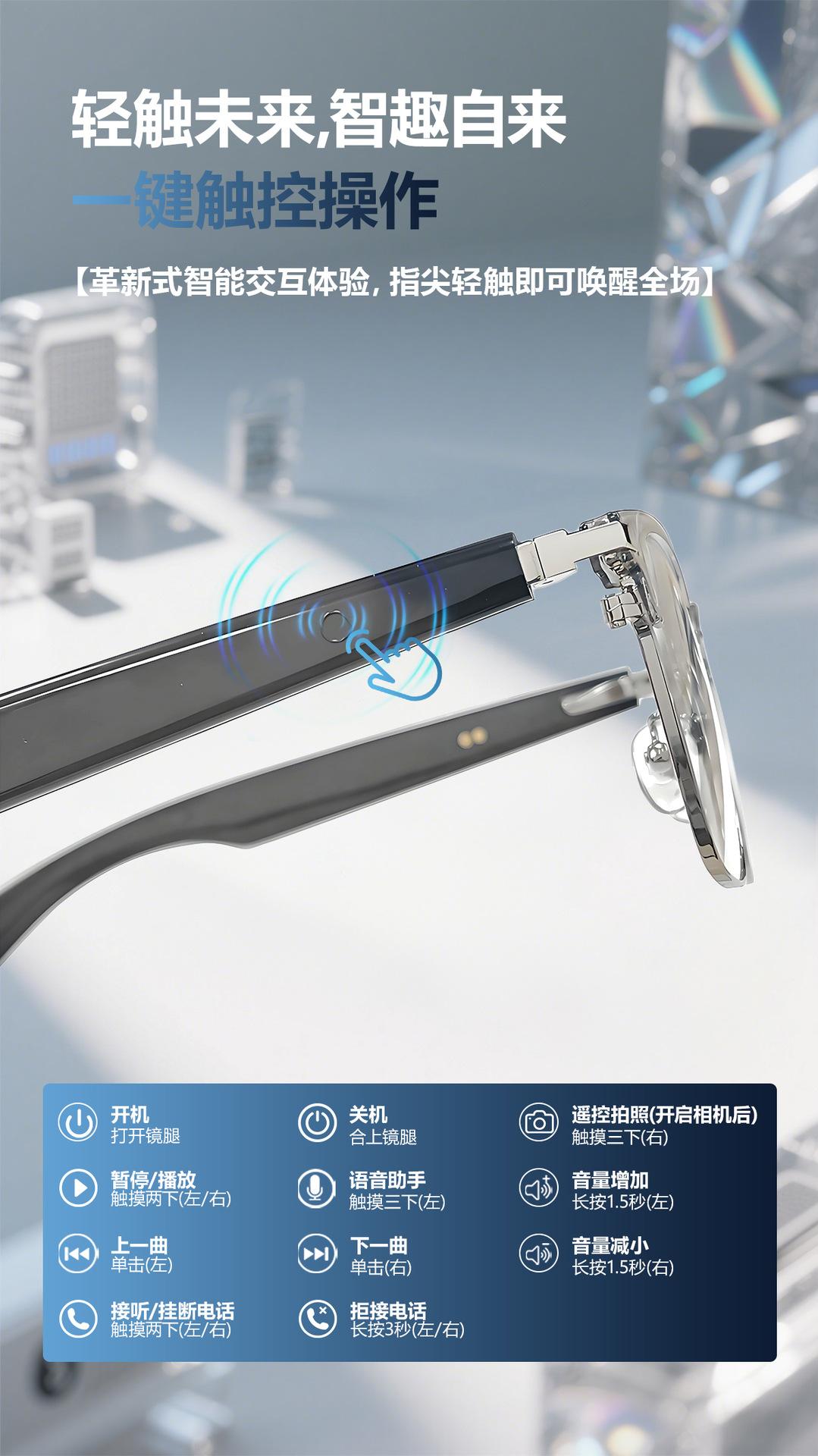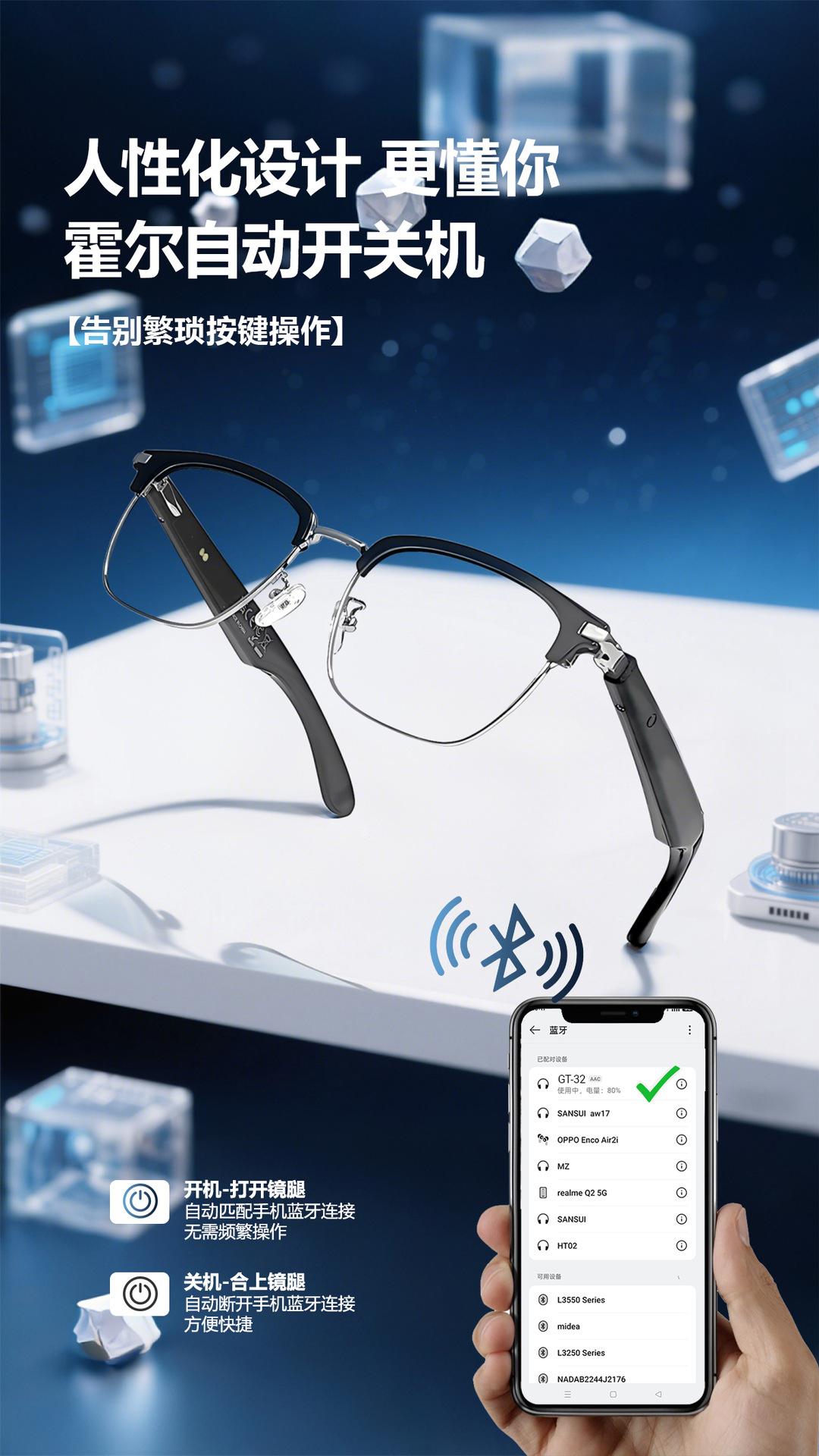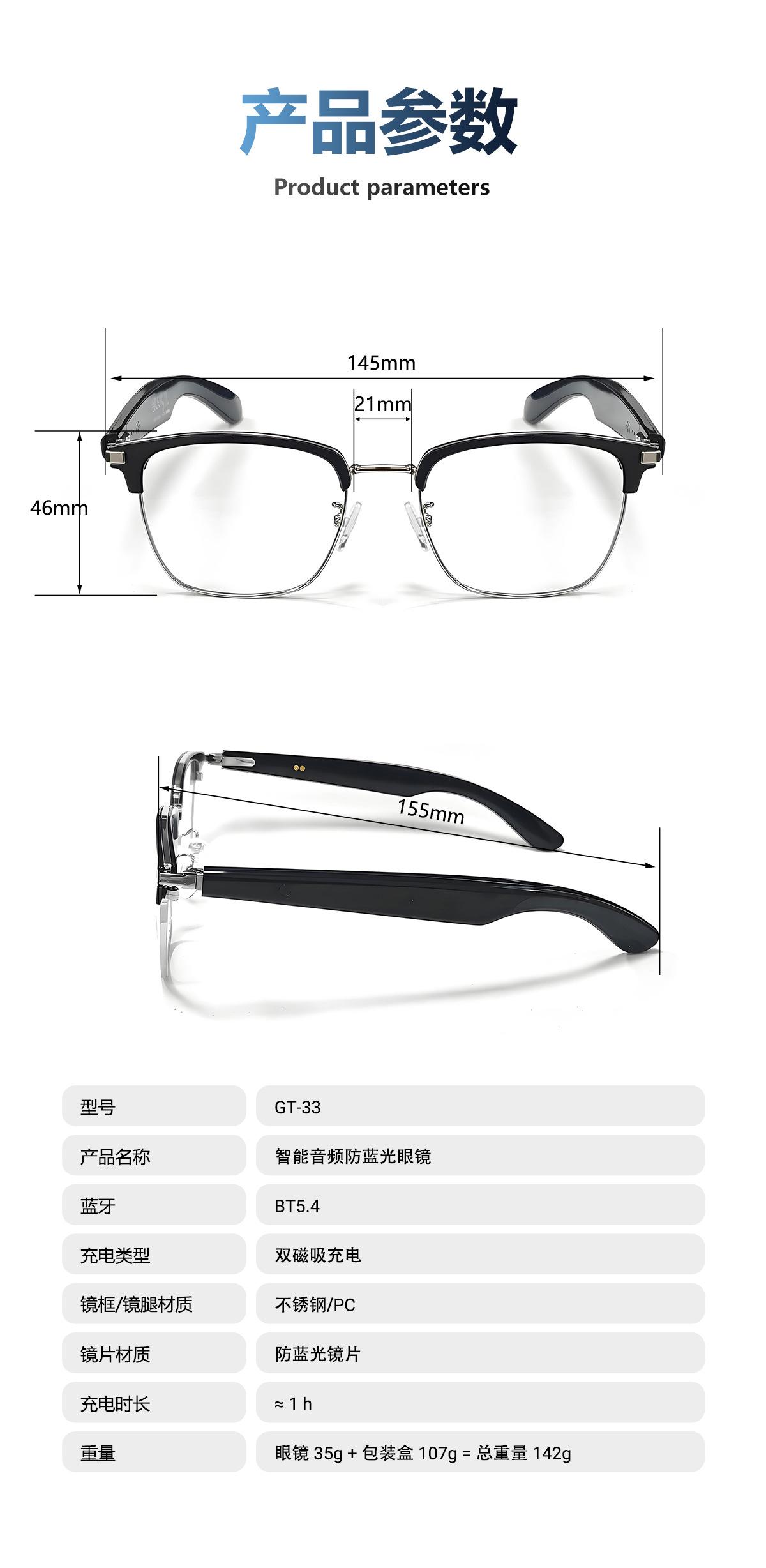 Gafas Bluetooth de Conmutación Automática Gt33 Diseño de Bisagra de Resorte Metálico Gafas Inteligentes Ai Escuchar Canciones y Llamar Gafas