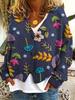 Cárdigan de Punto Grueso con Estampado Digital Independiente Nuevo de Amazon Más Vendido para Mujer con Cuello en V Suéter de Manga Corta Larga