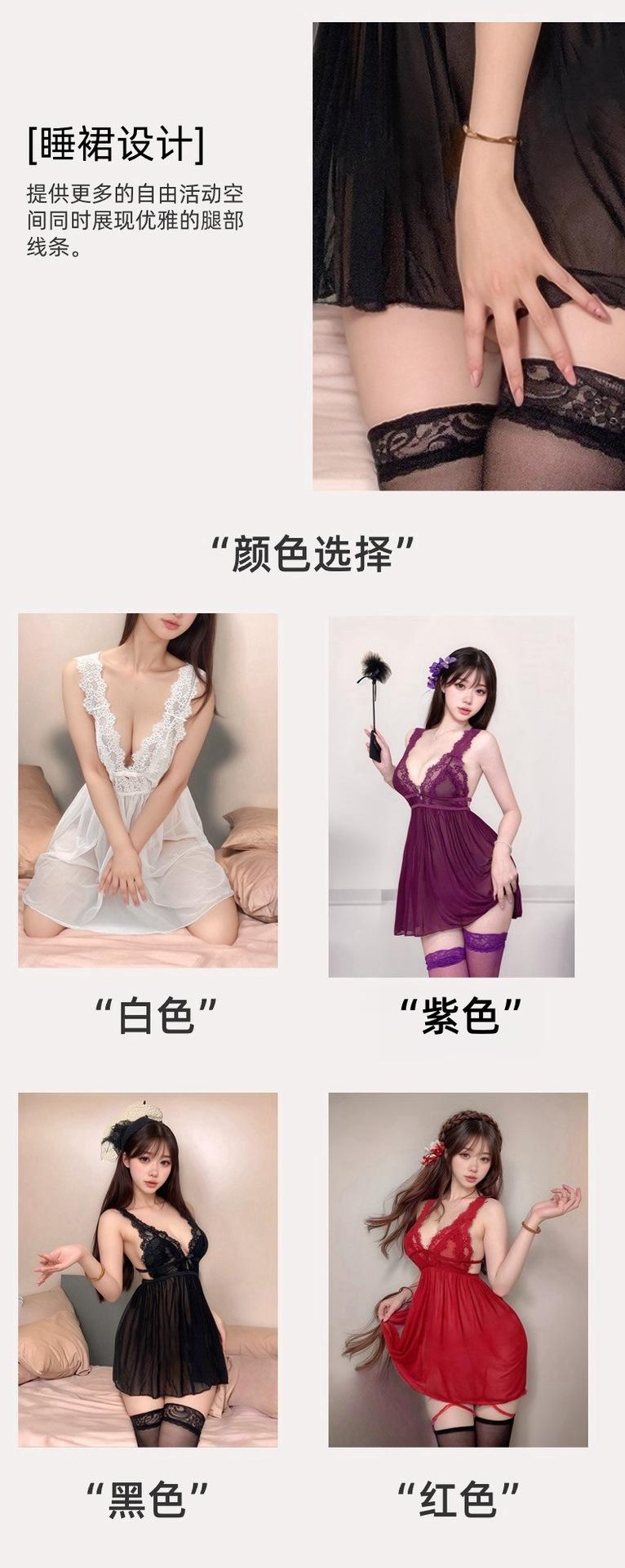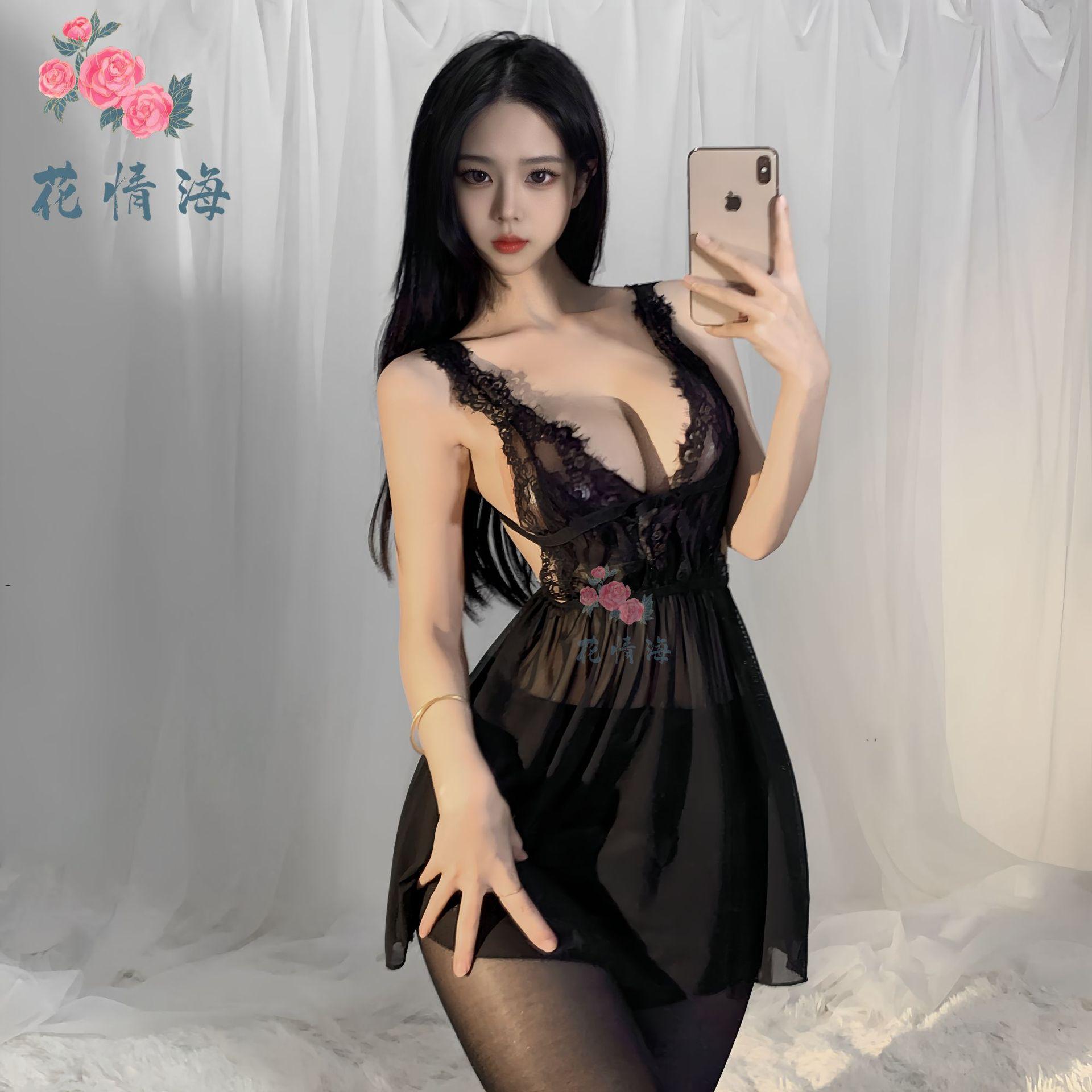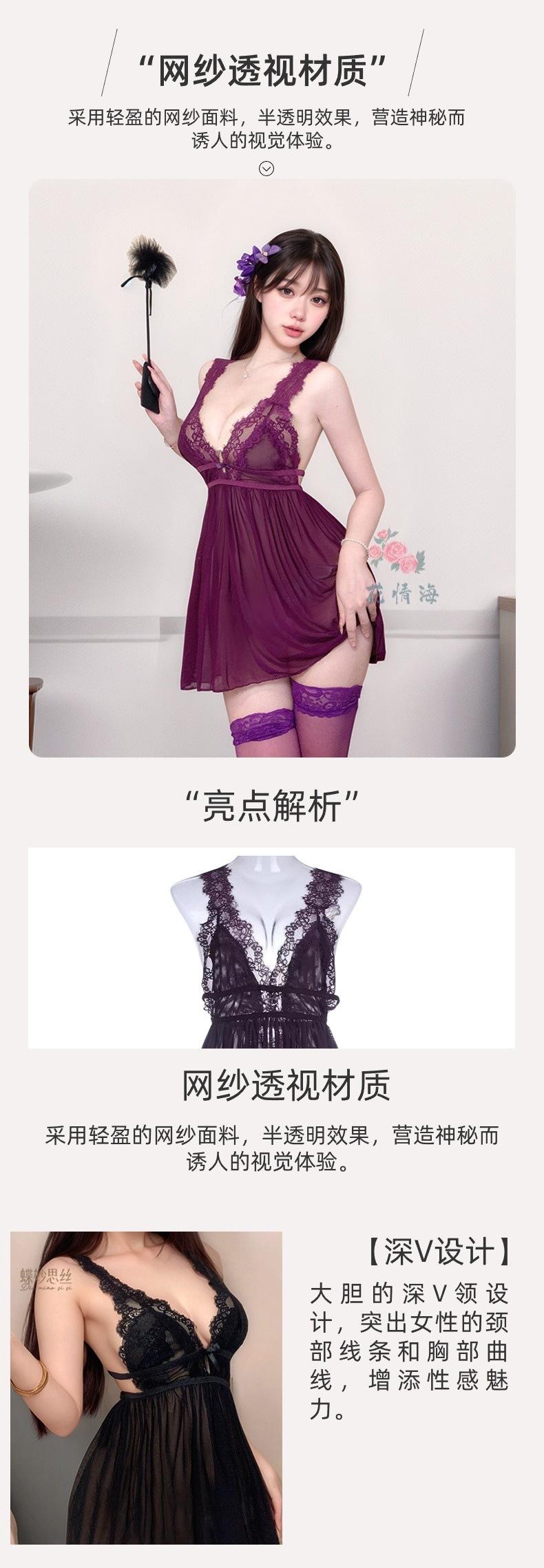 Mar de Flores Ropa Interior Sexy para Mujer Escote en V Profundo Sexy Malla Transparente Tentación Encaje Camisón Fino Encantador A613