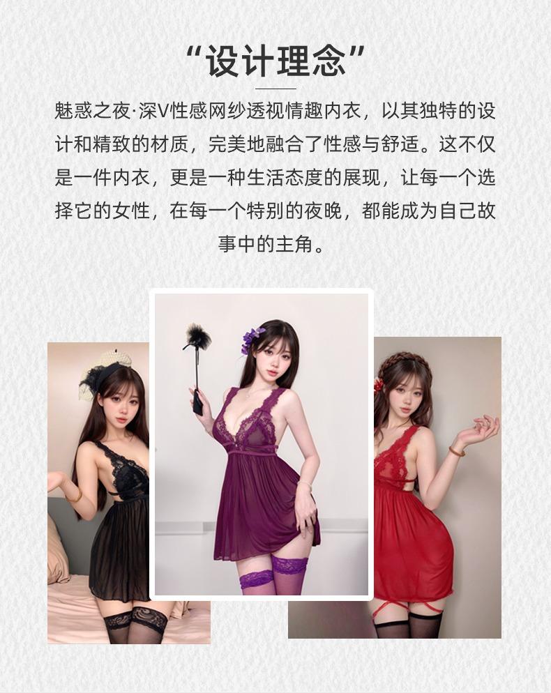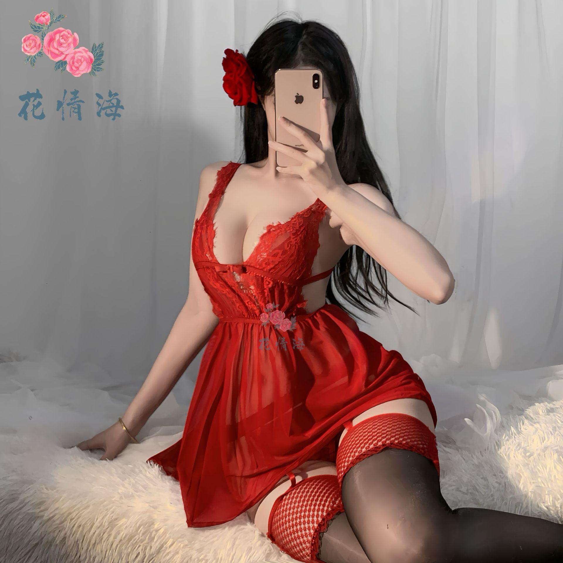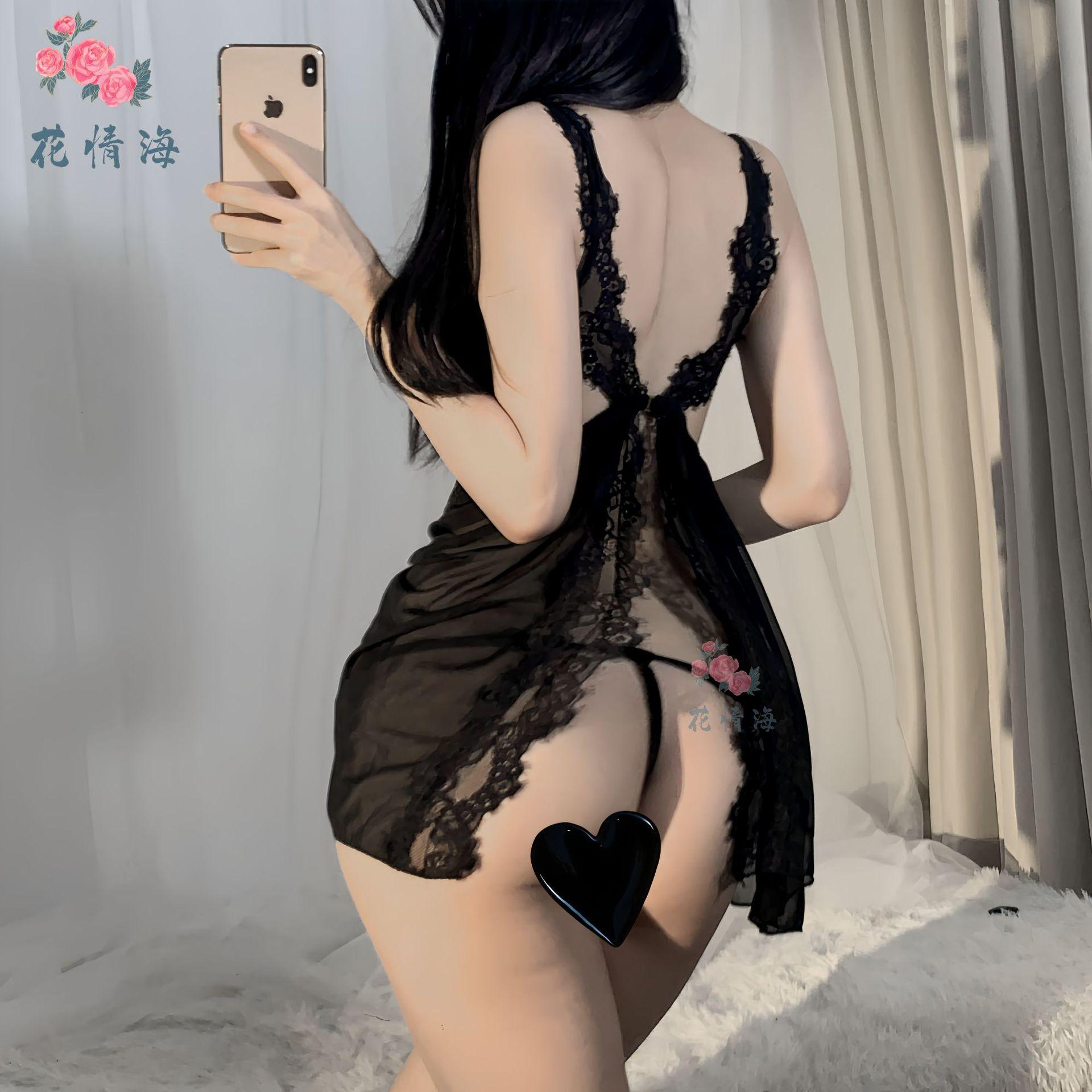 Mar de Flores Ropa Interior Sexy para Mujer Escote en V Profundo Sexy Malla Transparente Tentación Encaje Camisón Fino Encantador A613